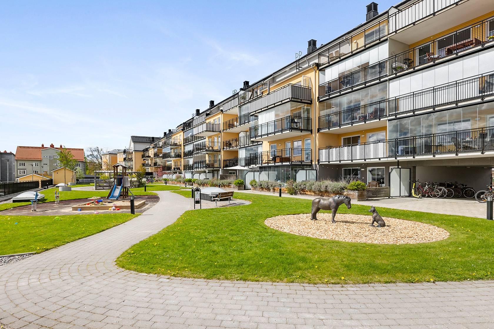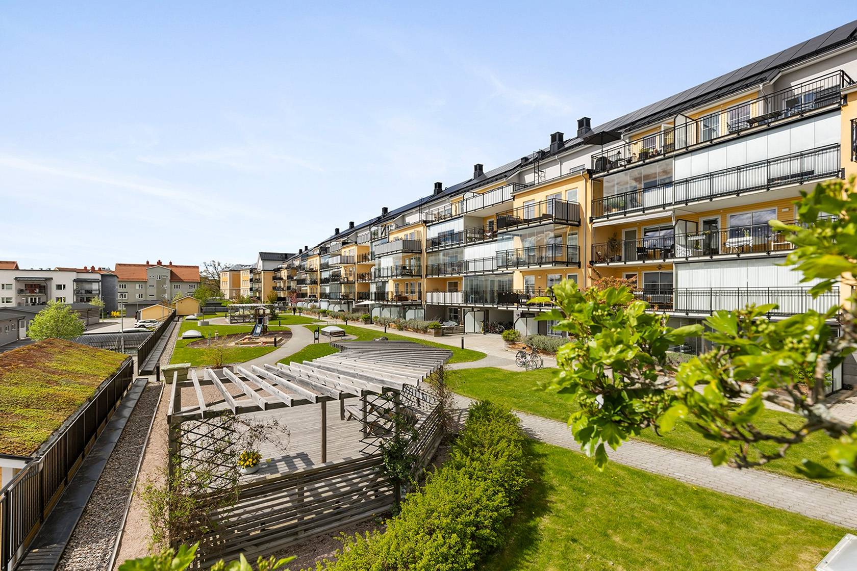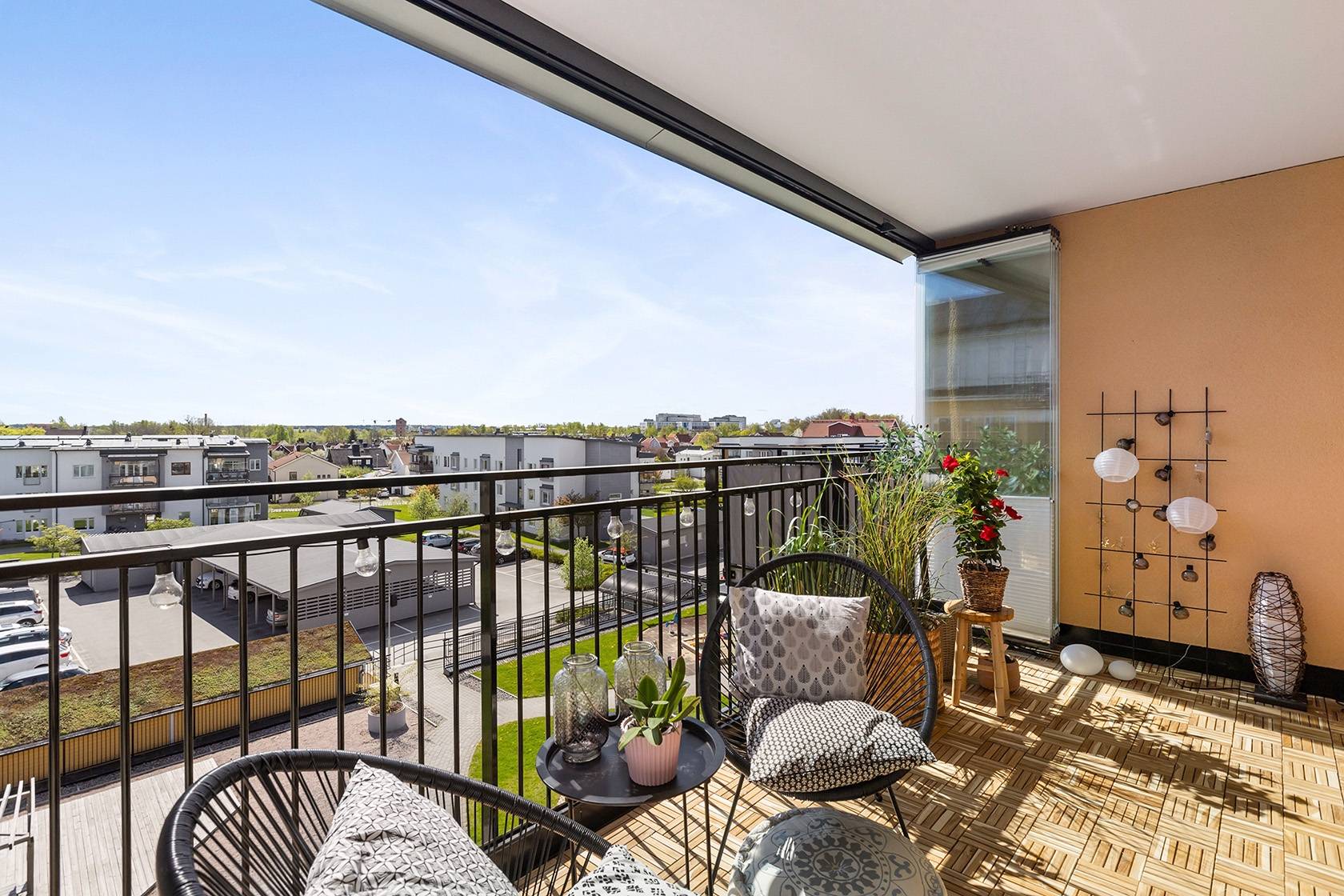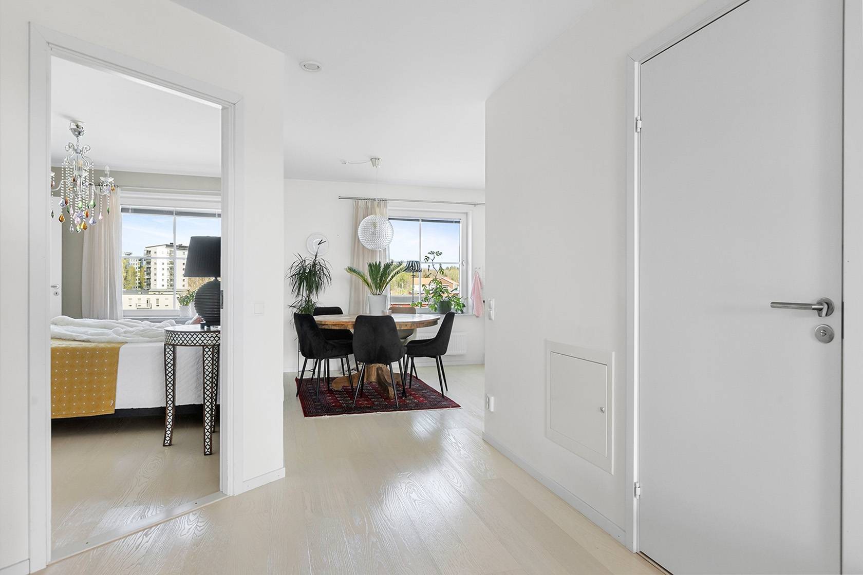 Mycket smakfull tvårummare högt upp i huset med påkostade materialval och ljuvlig inglasad balkong i bästa söderläge! Fritt och insynsskyddat - med ett av bostadsrättsföreningens bästa lägen. Ett attraktivt boende med närhet till sköna grönområden, goda kommunikationer samt en ett stenkast till områdets förskola/skola. Nytänkande BRF med trevliga faciliteter såsom garage i källaren via hiss, gemensamhetslokaler med övernattningsmöjligheter, två tvättstugor och solceller på taket för lägre driftkostnader. Perfekt för den som ställer höga krav på sitt boende. Välkommen med din intresseanmälan!17 images