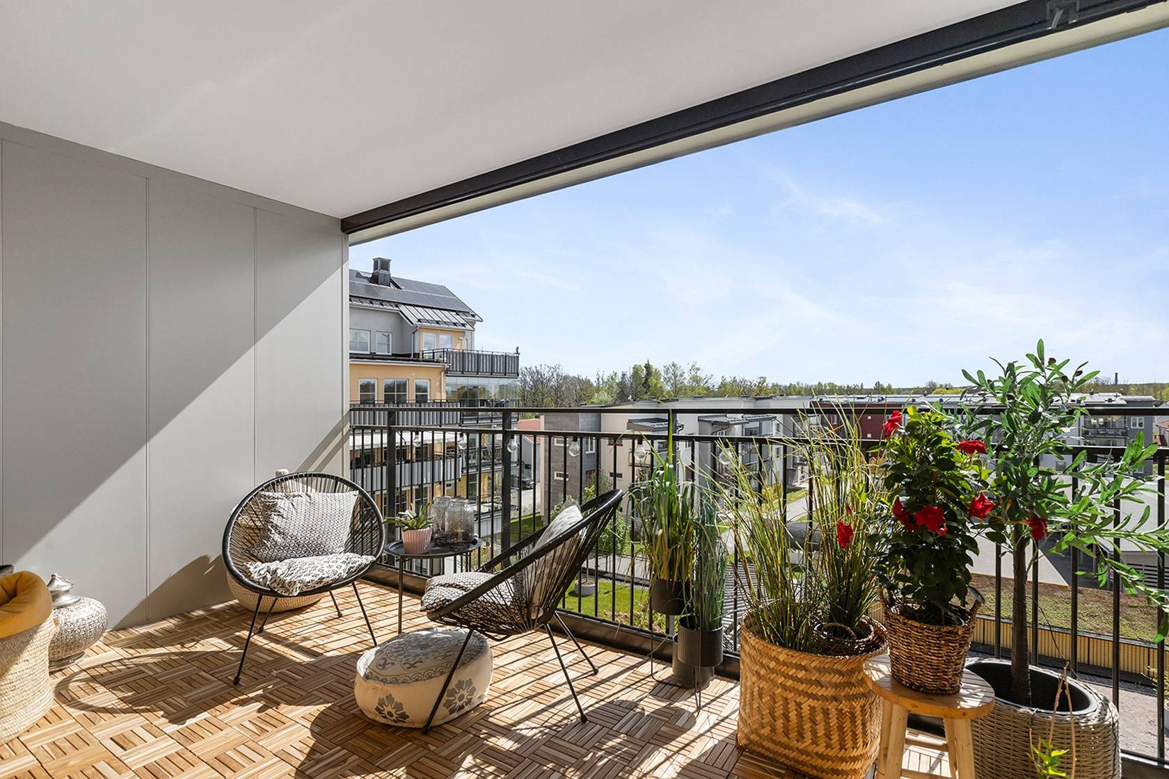 Mycket smakfull tvårummare högt upp i huset med påkostade materialval och ljuvlig inglasad balkong i bästa söderläge! Fritt och insynsskyddat - med ett av bostadsrättsföreningens bästa lägen. Ett attrMore...