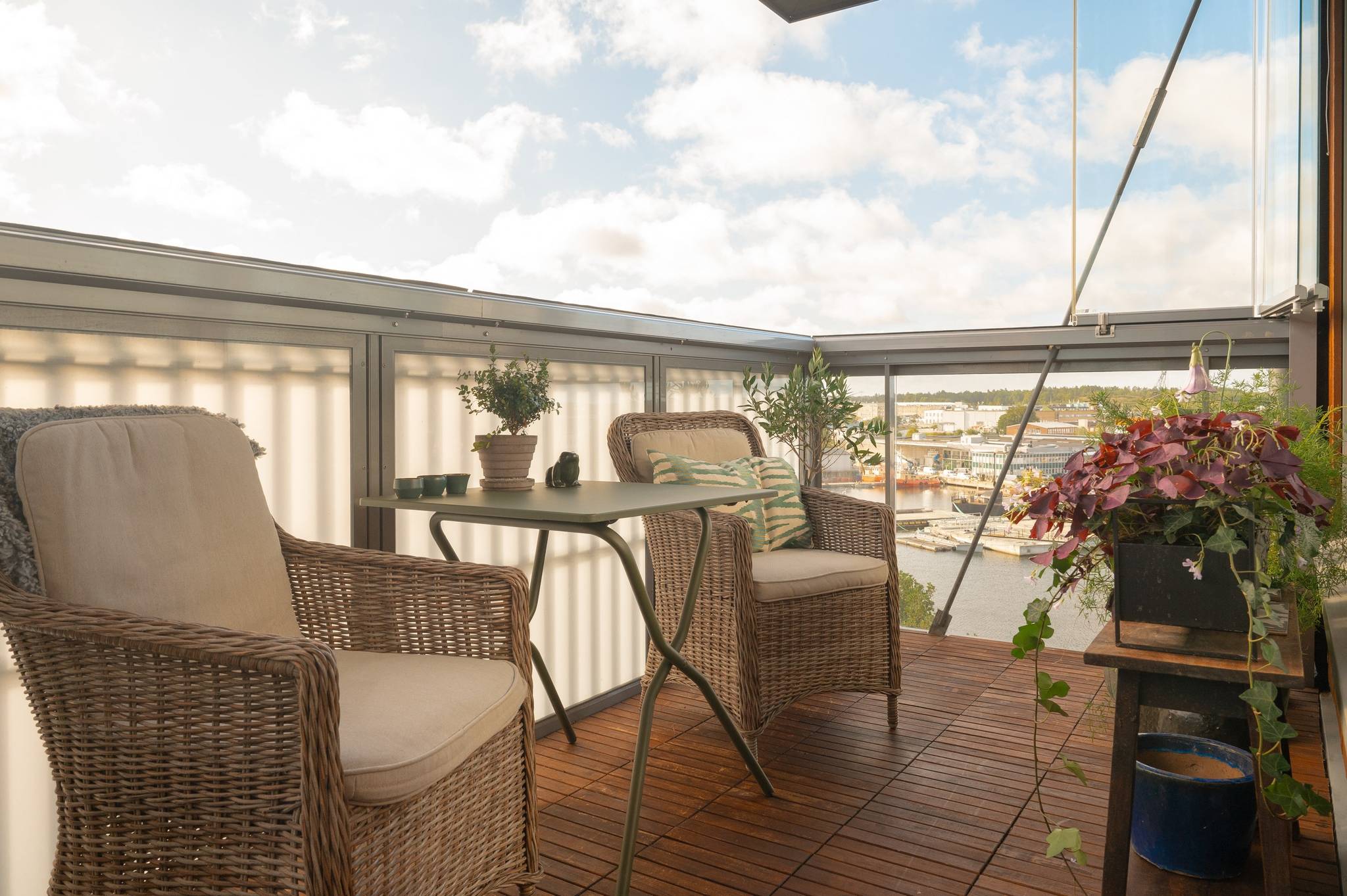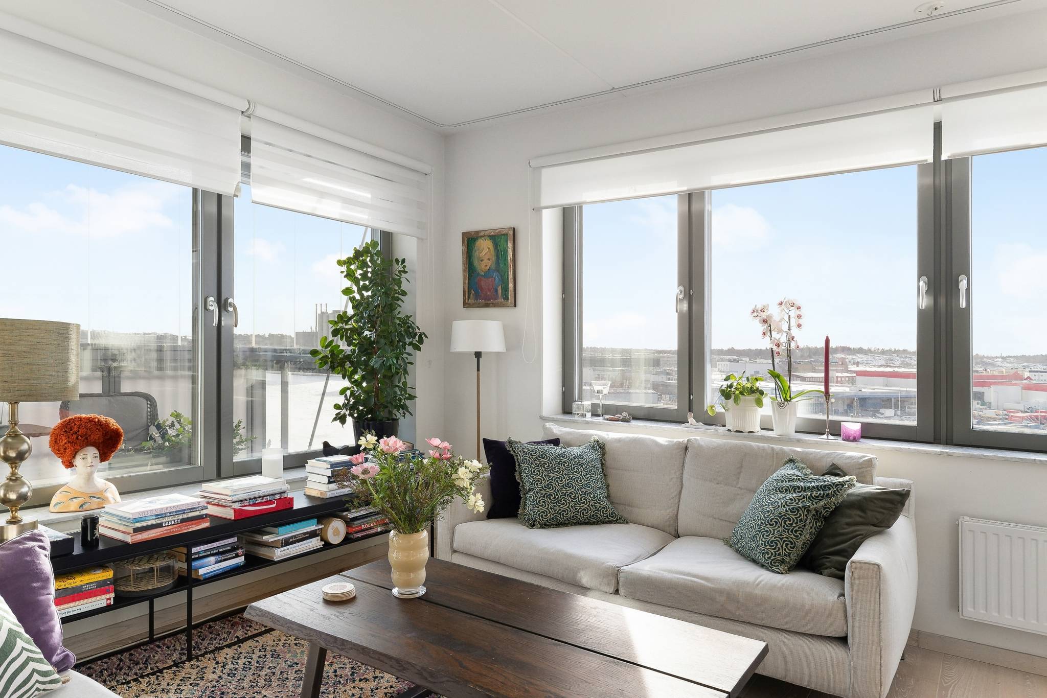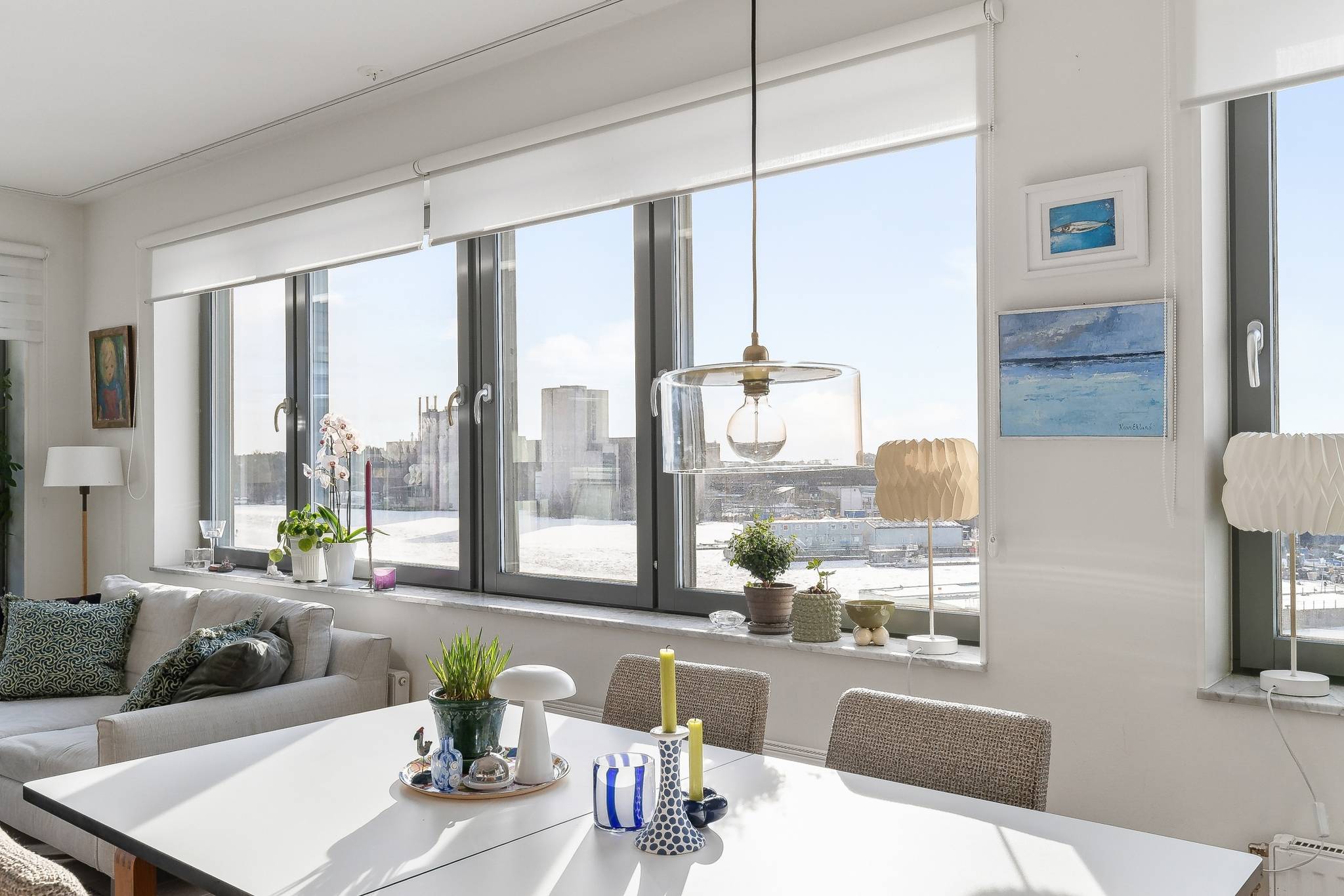 Med ett av Sundbybergs absoluta topplägen, vid Bällstaåns glimrande vatten och trivsamma båtliv, erbjuds nu denna unika trea (registrerad 4:a) utöver det vanliga! Bostaden ligger högt upp i huset på femte våningen med genomgående hög standard i både kök och badrum. Lägenheten nås enkelt med hiss från såväl garage som entrévåning. De sociala ytorna med vardagsrum, kök och balkong ligger i anslutning till varandra och från samtliga fönster i bostadens sociala delar bjuds det på en fin utsikt över vattnet. Fina solnedgångar kan ni blicka ut över från soffgruppen med fri himmelsvid sikt Från vardagsrummet nås också den inglasade balkongen i sydostläge har ni sol från tidig förmiddag till ca 17 tiden. Lyxigt badrum nås från hallen med dusch, städskåp, förvaringsskåp, samt tvättmaskin/torktumlare, under praktisk avlastningsbänk. Ytterligare ett badrum med dusch nås från hallen. Master bedroom är stort med plats för bred säng och diverse sovrumsinredning. Stora garderober med skjutdörrar optimerar klädförvaring. Det andra sovrummet är trivsamt med stort fönster som släpper in gott om ljus. Golvet i hela våningen pryds av ett snyggt ljuspigmenterat plankgolv. Goda förvaringsutrymmen finns i klädkammare, garderober och separat stort källarförråd som praktiskt ligger på entrévåningen bredvid hissen! Lägenheten är från början registrerad som en 4 rok vilket gör att de som önskar med enkla medel kan omdisponera lägenheten till en fyra. Se alternativ planlösning. Här bor du i en stabil HSB förening med bekvämligheter som hiss hela vägen ner till garaget och förråd. Föreningen har också en gemensamhetslokal med övernattningsmöjligheter samt kök och badrum/toalett. Sist men inte minst erbjuds en bastu som kan utnyttjas av medlemmarna. Båtbryggorna och den vackra stilrena fasaden i cederträ inger en idyllisk och inbjudande känsla. Kombinationen av city (med endast 8 minuters pendelavstånd till Stockholms innerstad) och närheten till vattnet ger ett optimalt boende att trivas i. Förutom pendeltåg erbjuder Sundbyberg dessutom tunnelbana, tvärbana och bussar. Härifrån kan man t.o.m. gå till Bromma flygplats. För den som vill ta pendelbåten in till stan finns en hållplats vid Solna strand. Gångavstånd har man även till Bromma Blocks ett av Sveriges modernaste köpcentrum eller varför inte ta en promenad längs vattnet förbi Pampas Marina i Solna och vidare till Vasastan eller Kungsholmen. Bara någon minut bort har man nya Signalfabriken med butiker och restauranger. Sundbyberg är en stad i staden med allt inom räckhåll! Välkommen!46 images