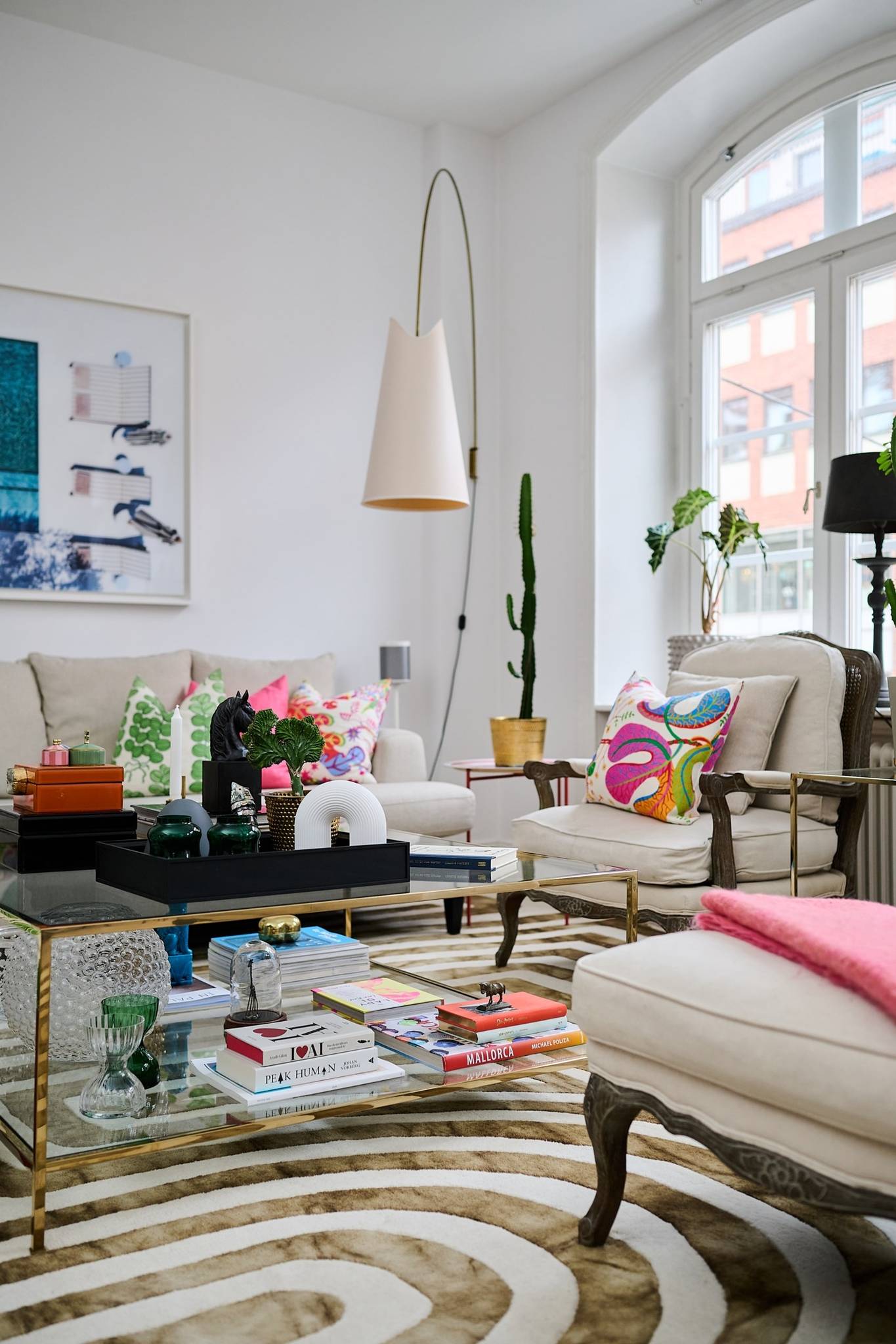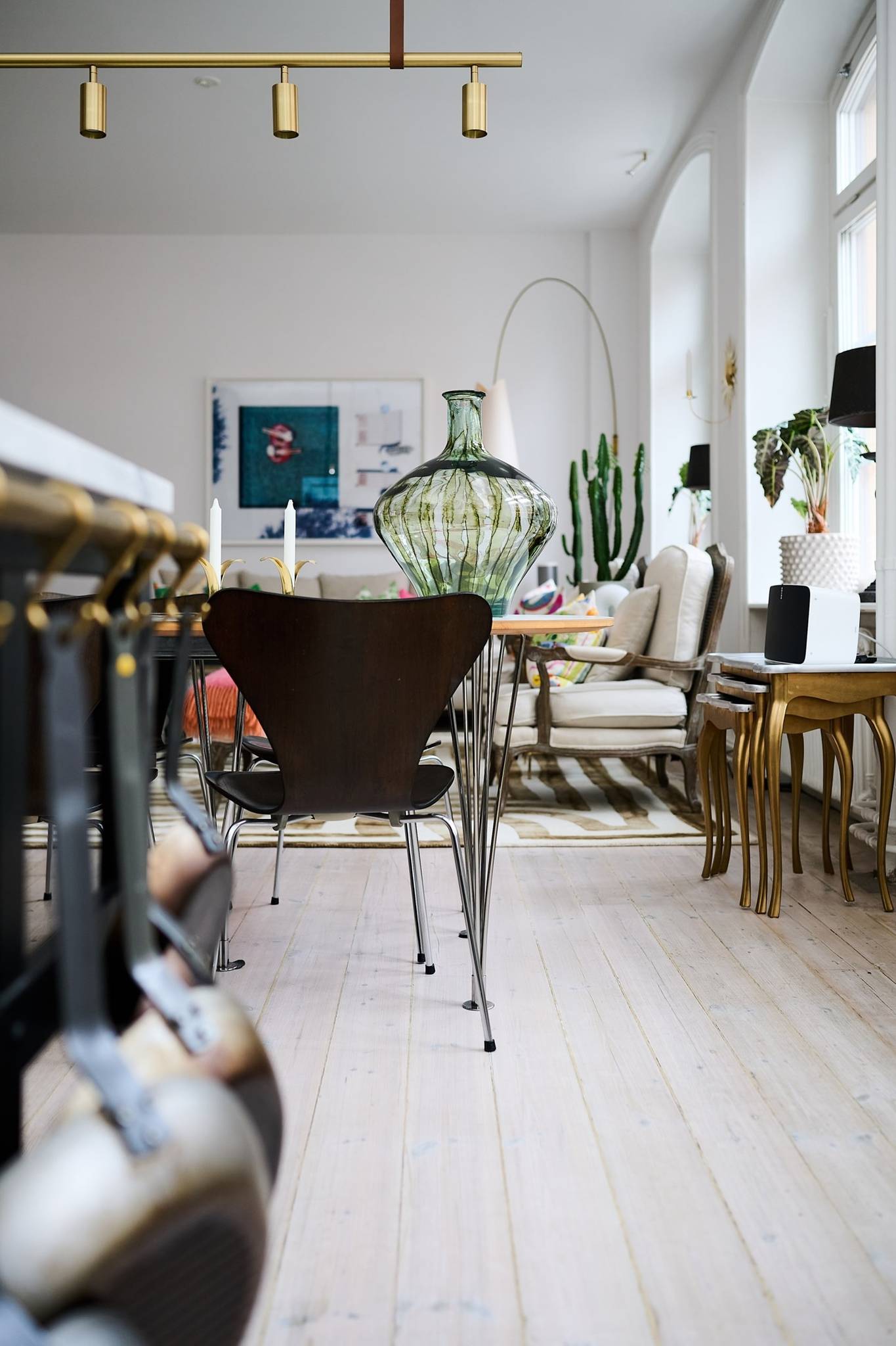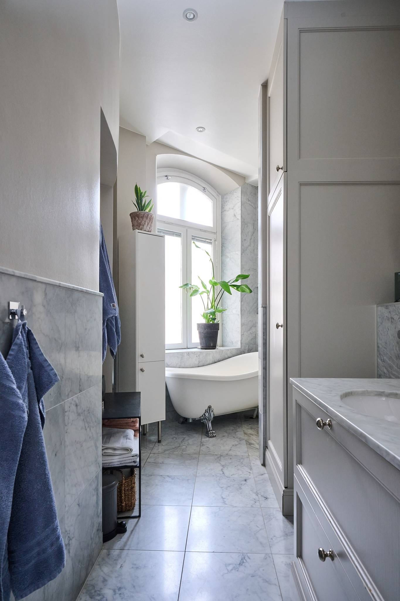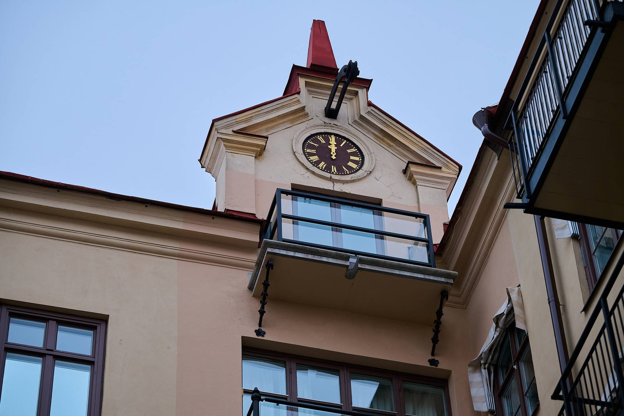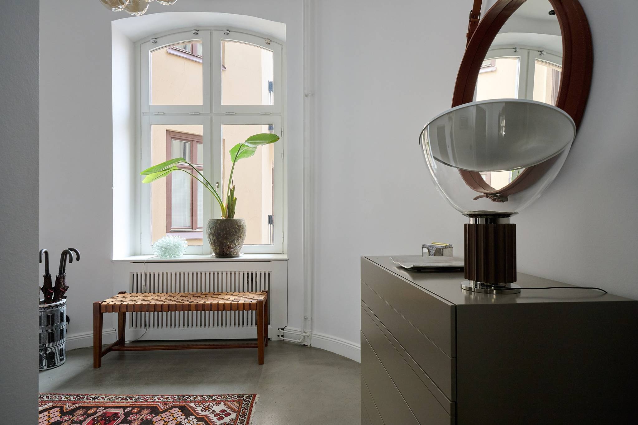 I hörnet av Rådmansgatan och Tulegatan tronar det pampiga sekelskiftespalatset från 1891. Byggnaden spelar en viktig roll för den svenska industrihistorien då den från börja rymde en av LM Ericssons första produktionsanläggningar. Det lika lugna som centrala läget inser du snabbt om du lutar dig ut från ett av sällskapsytornas fyra, takhöga fönsterpartier. Cirka 200 meter till vänster skymtar grönskan borta vid Sveavägen, och knappt 80 meter ner till höger reser sig en kastanj på Birger Jarlsgatan. Den ljusa våningen är smakfullt detaljrenoverad med fokus på tidsperiodens tidlösa formideal och detaljer. Kvar finns rader av nästan takhöga, spröjsade fönsterpartier med rundade överfönster. De grafitsvarta spegeldörrarna har stiltrogna beslag i gulmetall, listverken är detaljskurna och den till stor del öppna planlösningen släpper iväg patinerade furugolv över fria ytor under en ansenlig takhöjd. Byggnadens industrihistoria följs stilsäkert upp av samtida design som flera inslag av takhöga glaspartier i svart industriglas samt entréhallens oljade betonggolv. Våningens huvudnummer är de mycket stora sällskapsytorna i öppen planlösning med kök. Raden av takhöga fönsterpartier med överfönster och djupa nischer skapar en mycket speciell atmosfär. Härinne finns plats för både sällskapsdel framför den mysiga kaminen och ett stort matsalsbord. Köket delas av med en fristående köksö med barhäng i ljus Carraramarmor som även återfinns på de långa arbetsytorna. Designlinjens grafitsvarta fronter med speglar och beslag i mässing kommer igen i kökets inredning. På samma sätt återkommer den ljusa marmorn på golv och väggar i våningens gäst-WC och sobra badrum i sekelskiftesstil. Våningen har även tre sovrum mot innergården, balkong, glasat vinrum, tvättavdelning, walk-in-closet, rymlig garderobsvägg mm. Det lika lugna som centrala läget behöver troligen ingen djupare förklaring, med bara ett några minuters promenad till citykärnan eller områdets många parker.26 images