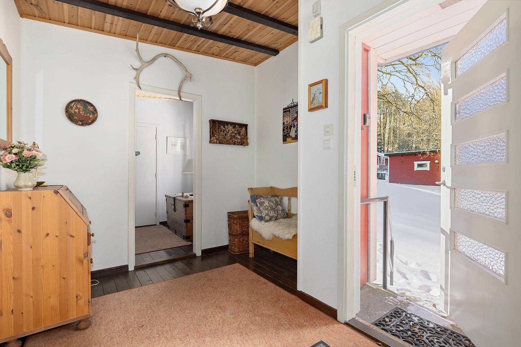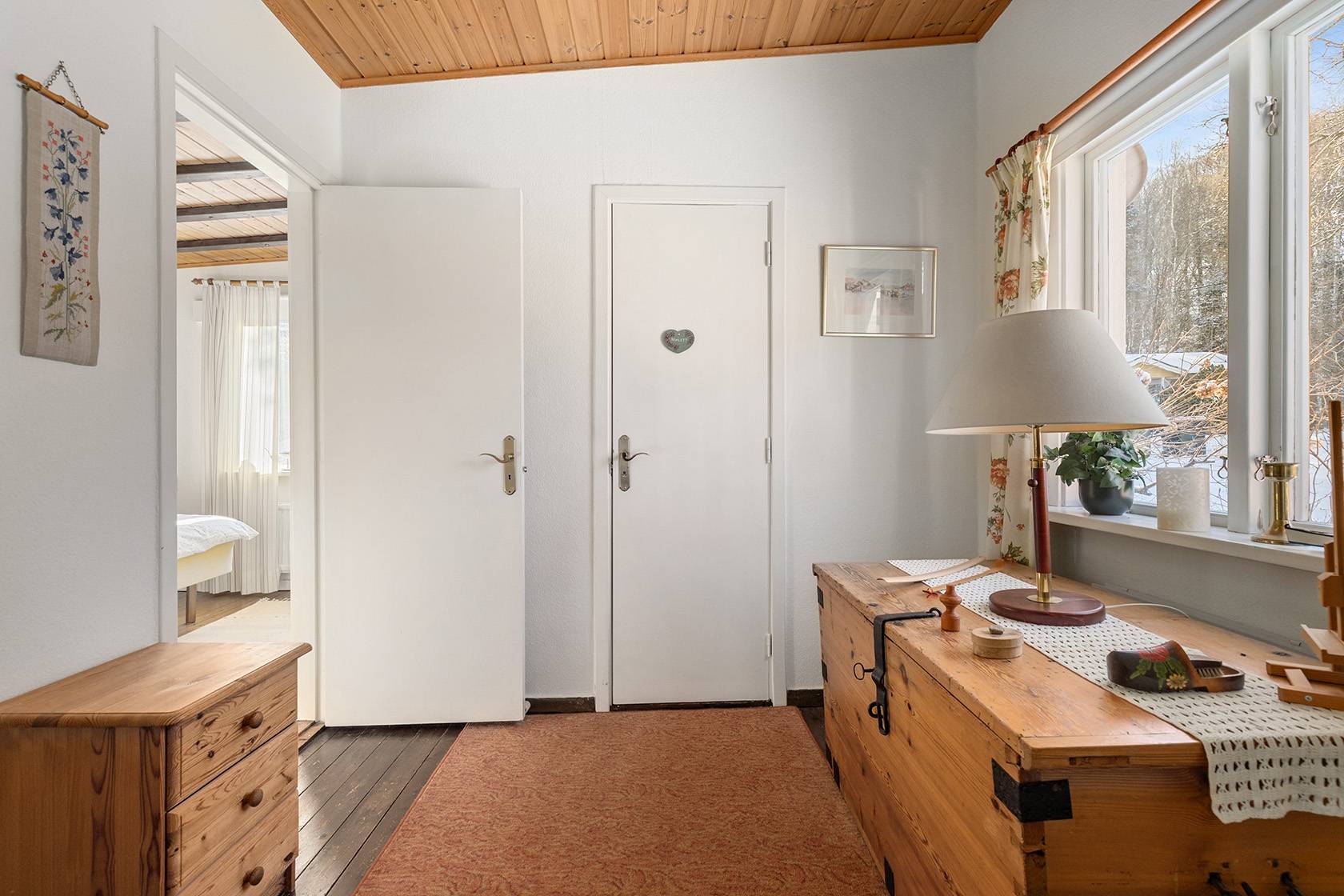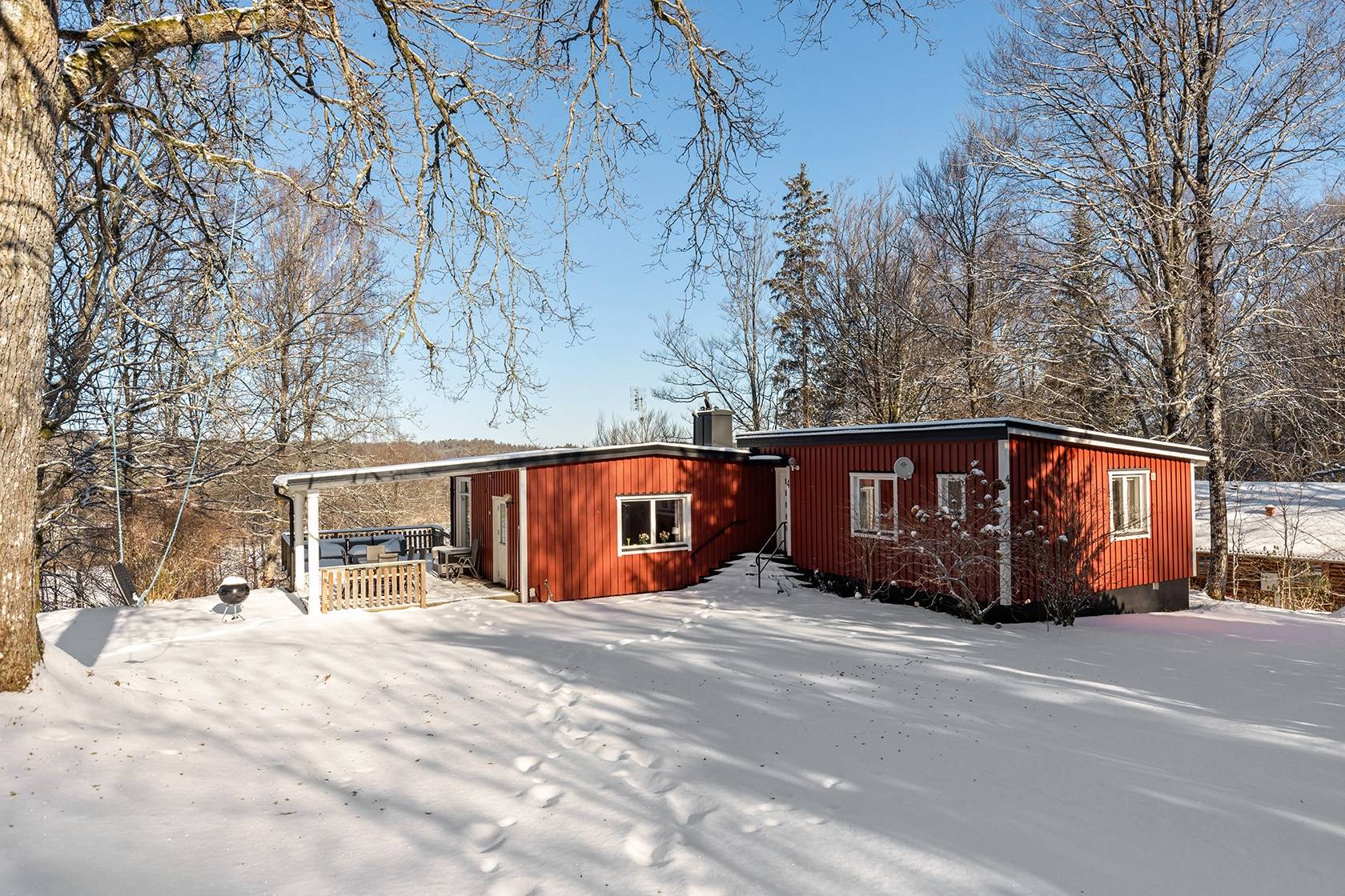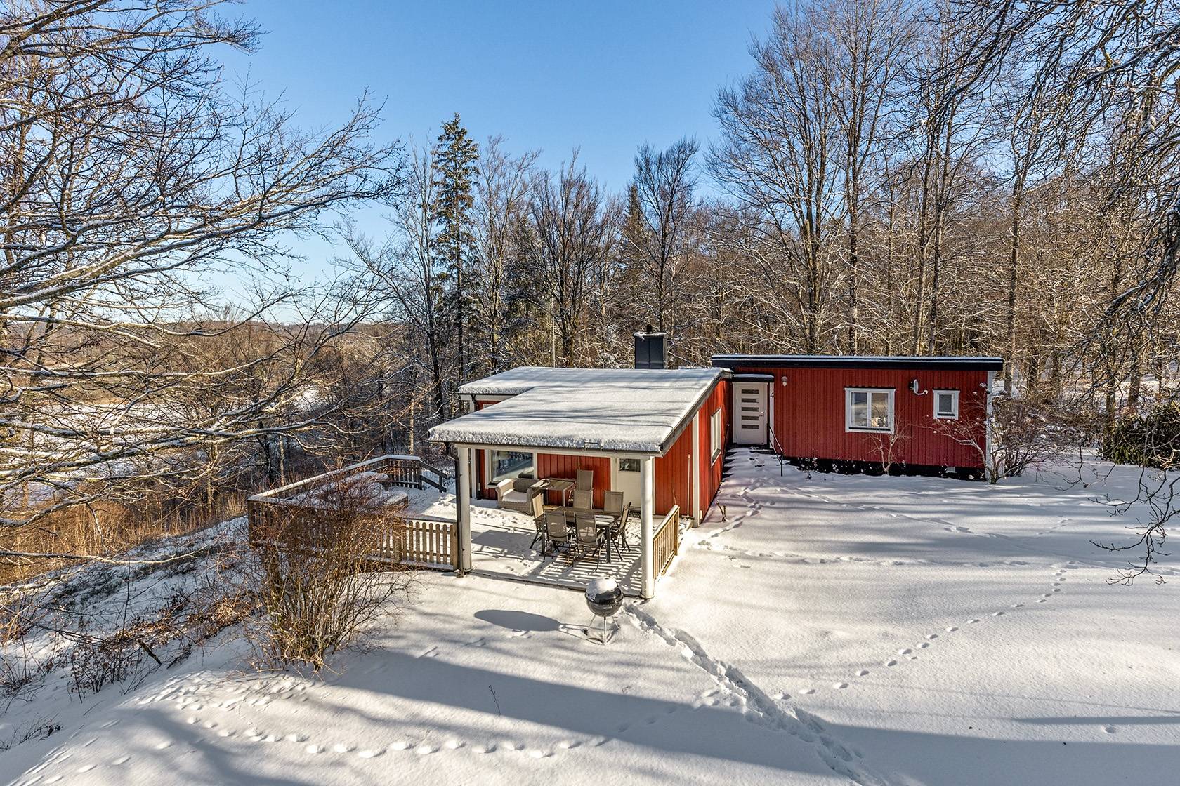 Detta fritidshus erbjuder en hänförande utsikt över Åsljunga-sjön från både sällskapsrummet, köket och den delvis överbyggda terrassen. I sällskapsrummet har man ett fantastiskt ljusinsläpp som skapar en inbjudande atmosfär tillsammans med den öppna spisen, och rummet har gott om plats för både avkoppling och sociala tillställningar. Terrassen, med utsikt över sjön, är en perfekt plats för att avnjuta morgonkaffet eller långa sommarkvällar. Garage finns och ger bekväm parkering och extra förvaringsmöjligheter!21 images