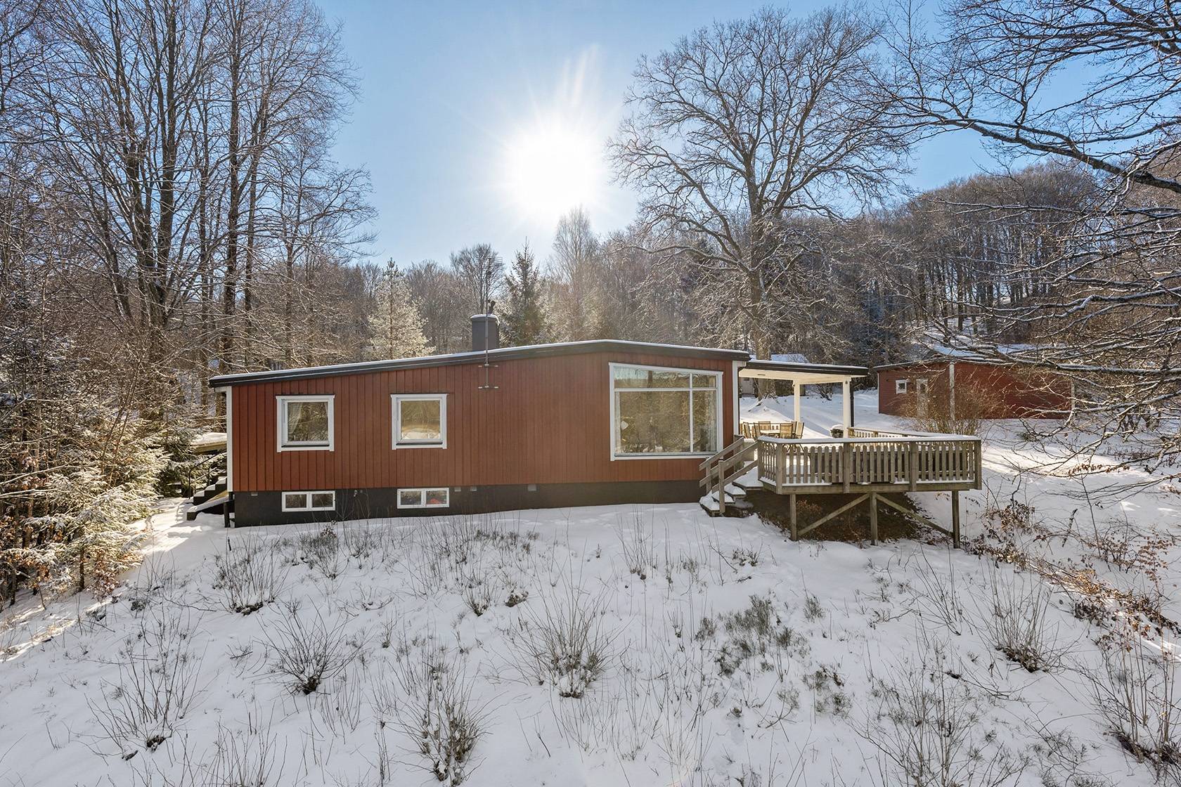 Detta fritidshus erbjuder en hänförande utsikt över Åsljunga-sjön från både sällskapsrummet, köket och den delvis överbyggda terrassen. I sällskapsrummet har man ett fantastiskt ljusinsläpp som skaparMore...