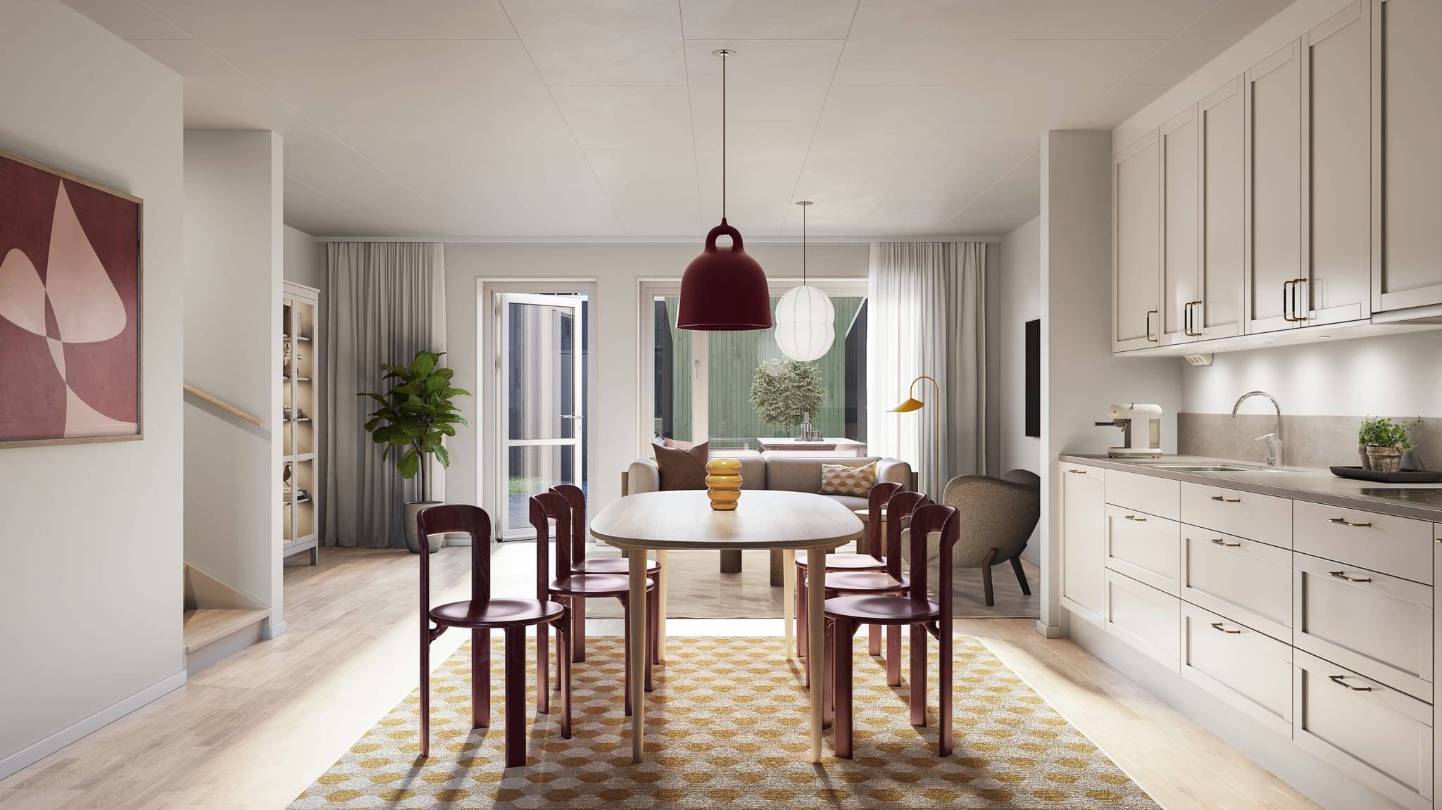 Här har du chansen att bli den allra första som flyttar in i ett modernt och välplanerat radhus om 130 kvm — ett hem där varje detalj är skapad för ett bekvämt och trivsamt familjeliv. Beräknad inflyttning i mars 2027. Entrévåningen bjuder på generösa sociala ytor i öppen planlösning, stora fönster som släpper in rikligt med ljus och direkt utgång till den egna trädgården i eftertraktat söderläge. Det stilrena köket erbjuder gott om både arbetsyta och förvaring och ligger i naturlig kontakt med vardagsrummet — perfekt för såväl vardagsliv som middagar med familj och vänner. På ovanvåningen väntar hemmets mer privata del med flera sovrum, varav ett större sovrum med klädkammare som ger utmärkta förvaringsmöjligheter. Här finns även ett generöst allrum som passar lika bra som tv-rum, lekhörna eller tonårshäng. Bostaden har två badrum som förenklar vardagen — det ena utrustat med badkar för avkopplande stunder. Utomhus väntar trädgård i soligt läge förberedd för uteplats och sådd gräsmatta — en perfekt plats för sommarens måltider, lek och avkoppling. På tomten finns även ett praktiskt förråd som ger extra utrymme. Detta är ett hem för dig som vill kombinera bekvämligheten i ett nybyggt boende med känslan av att få skapa något helt eget — utan renoveringsbehov och med modern standard från första dagen. Kontakta mäklaren för mer information och ta första steget mot ditt nya hem.19 images