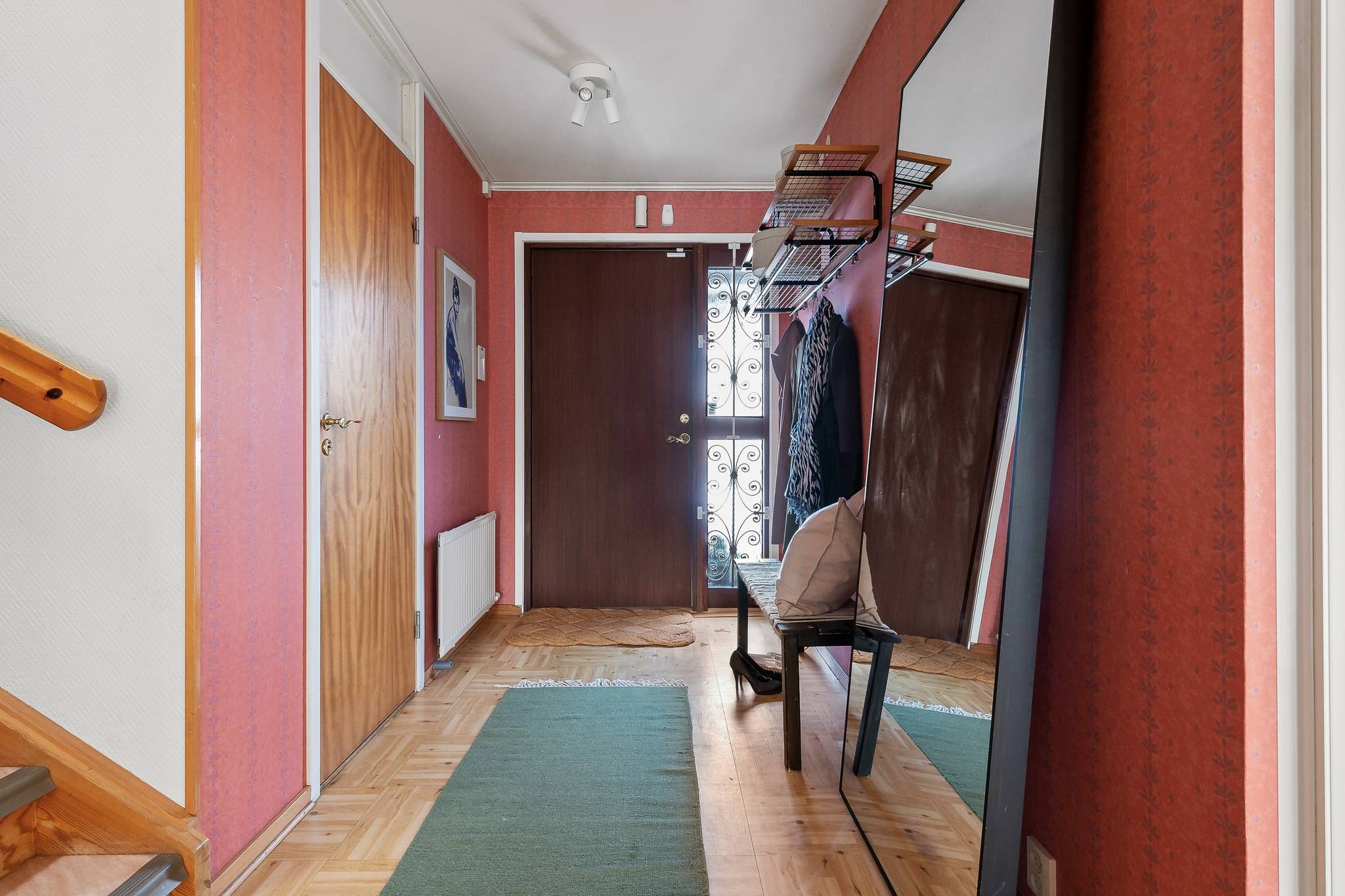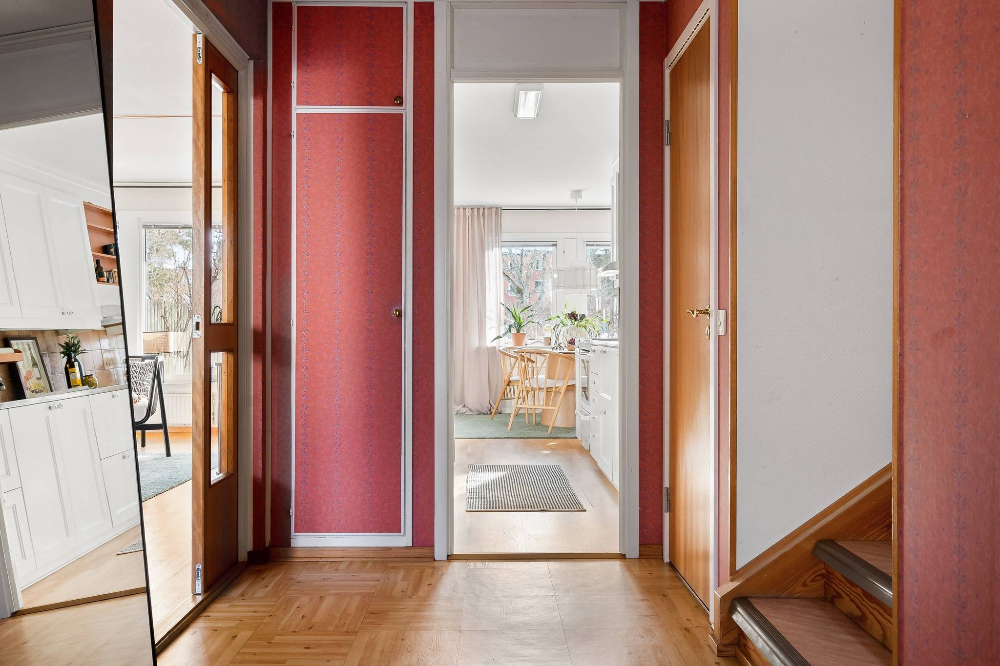 Välkommen till Mickel Bagares gränd 75 – ett hem där vardagen får ta plats, där barnens skratt kan studsa mellan husen och där grönskan i trädgården skapar ett lugn. Här bor du längst in och skyddat i området, med en baksida i söderläge som vetter mot allmänning och parkleken Semlan. Det är den där sortens läge som gör skillnad – där kaffet på altanen smakar lite bättre och där du enkelt kan följa livet som pågår i kvarteret. Entréplanet rymmer sociala ytor med utgång till trädgård, kök med matplats, duschrum samt praktiska funktioner som underlättar vardagen. På övre plan finns fyra sovrum, klädkammare och badrum. Huset har ett visst moderniseringsbehov – vilket ger en utmärkt möjlighet att skapa ett hem helt efter egen smak och standard. Två garage ger extra komfort och utanför entrén finns förråd med gott om förvaring. Ett tryggt, grönt och barnvänligt kvarter med närhet till natur, skolor, service och goda kommunikationer. Att bo i Sköndal är att få det bästa av två världar. Här bor du i ett lugnt och uppvuxet område med naturen ständigt närvarande – samtidigt som du har närhet till stadens puls. Vid sjön breder grönområdena ut sig, med promenad- och löpspår som slingrar sig genom skogspartier och öppna ängar. På kort avstånd väntar bad och friluftsliv vid Drevviken, där sommarkvällar kan avslutas med ett dopp från bryggan och vinterdagar bjuder in till skridskoåkning när isen lagt sig. För den aktiva finns närhet till Flatenbadet och naturreservatet kring Flatens naturreservat, perfekt för bad, picknick, mountainbike eller långa söndagspromenader med termos i ryggsäcken. I närområdet finns välsorterade matbutiker, café, restauranger och service som gör vardagen smidig. Flera förskolor och skolor finns inom bekvämt avstånd, vilket gör området särskilt uppskattat bland barnfamiljer. Kommunikationerna är goda med bussar som tar dig vidare mot Farsta/Hökarängen och Stockholm – oavsett om du pendlar till city eller andra delar av söderort. Välkommen hem!48 images
