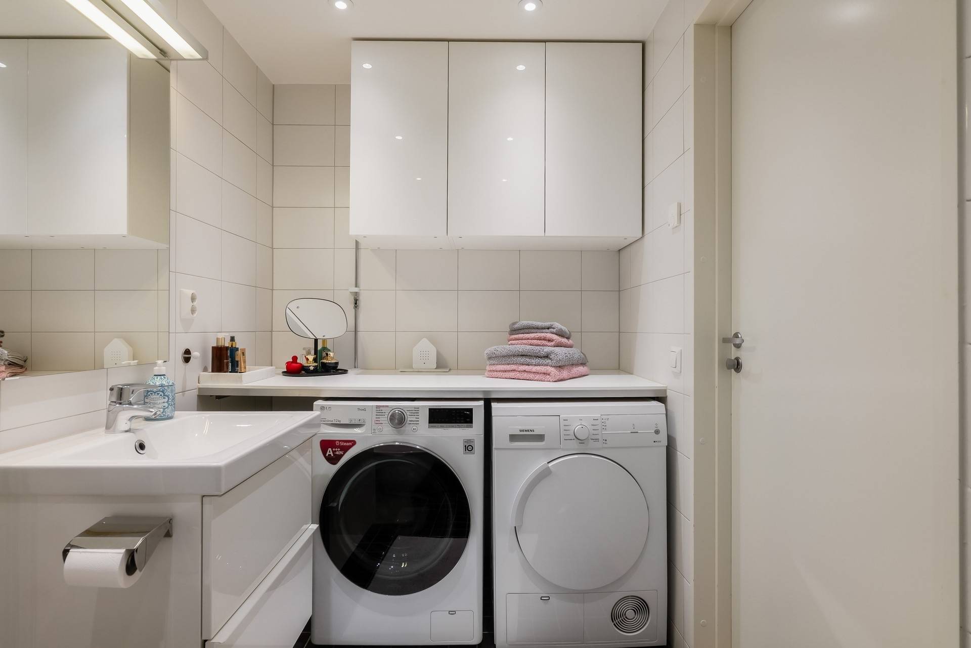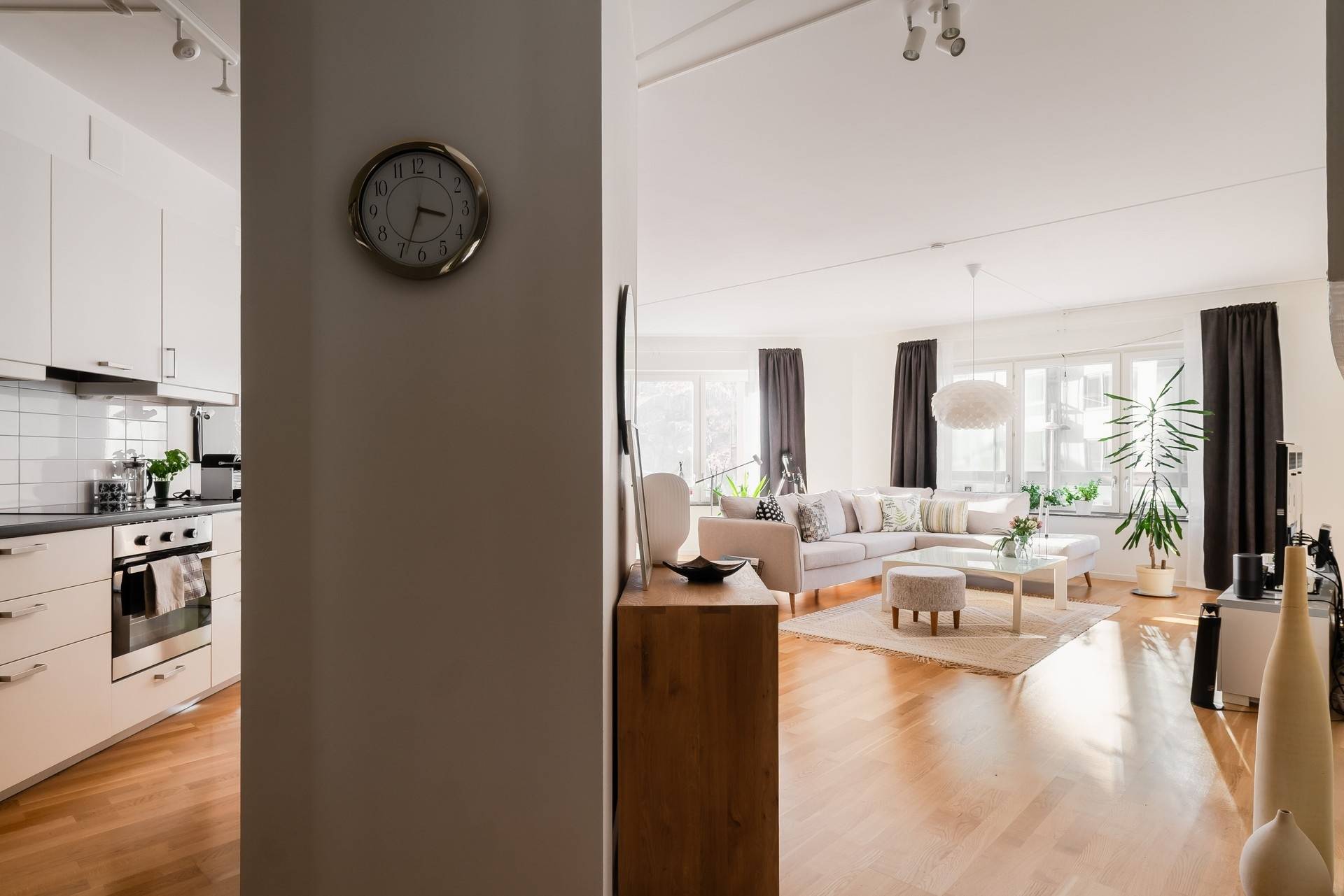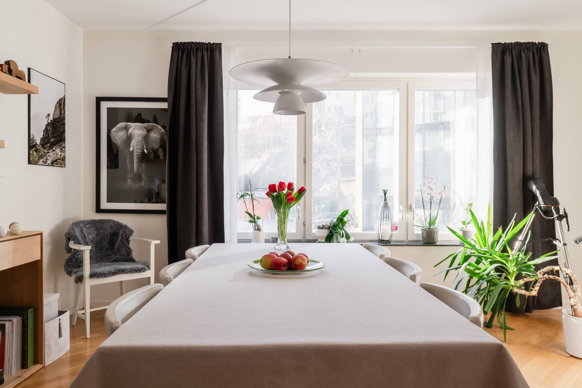 Säljaren berättar: "Det bästa med vårt hem" ”Det vi har uppskattat mest som familj är den totala smidigheten. Att bo i en ljus trea med golvvärme där barnen kan leka barfota året om har varit fantastiskt. Logistiken är oslagbar – vi tar hissen direkt ner till garaget med vagnen, och har flera topprankade förskolor och lekplatser bara ett stenkast bort. Att ha en lägenhet på första våningen ger oss också möjlighet att ha bra koll på barnen om de befinner sig på torget utanför. Helgerna spenderas ofta längs de bilfria strandpromenaderna eller med en utflykt till närliggande Sickla. Att dessutom ha en inglasad balkong fungerar som ett extra rum där barnen kan sitta och pyssla medan vi ser båtarna glida förbi. Det är ett lugnt och tryggt område där barnen får växa upp nära naturen och vattnet, men där vi föräldrar ändå har city inom räckhåll. Vi kommer verkligen att sakna de där svala sommarmorgnarna när man ser ljuset speglas i vattnet, eller att få glida in mot Nybroplan med pendelbåten och en kopp kaffe i handen – det är verkligen livskvalitet på riktigt." Välkommen till Finnboda Varvsväg 10B, en bostad för dig som inte vill välja mellan lugnet vid havet och stadens tempo. Här kliver du in i en ljus och rymlig trea på 88 kvm där varje kvadratmeter andas kvalitet och genomtänkt design. Med stora fönsterpartier i två väderstreck badar hemmet i ljus från morgon till kväll, och den sköna golvvärmen, som ingår i månadskostnaden, under fötterna ger en direkt känsla av vardagslyx. Hemmet där ljuset och de generösa ytorna spelar huvudrollen Hjärtat i lägenheten är det generösa vardagsrummet. Med hela sex stora fönster suddas gränsen mellan ute och inne ut. Härifrån når du den inglasade balkongen i nordväst – din framtida favoritplats för långa middagar i eftermiddags- och kvällssolen, med en glimt av Stockholms inlopp som fond. Köket är gjort för både vardagsbestyr och stora bjudningar, med rejäla arbetsytor och en naturlig matplats. De två sovrummen ligger privat placerade, varav det större erbjuder generös förvaring. Badrummet är komplett utrustat med egen tvättstation för att göra livspusslet så smidigt som möjligt. Detta är en lägenhet som passar lika bra för barnfamiljen med närhet till lekplats och förskolor och de som vill ha nära till storstadens puls och samtidigt njuta av en lugn närmiljö med skärgårdskänsla. Bekvämlighet på hög nivå. Extra fördelar med just denna lägenhet är bla: • Golvvärme i hela lägenheten som ingår i månadsavgiften för just denna lägenhet. • Inglasad balkong som funkar som ett extrarum stora delar av året. • Verisure- utrustning finns och kommer att lämnas kvar (utan kostnad) för den som enkelt vill koppla på deras tjänster. I den här föreningen är det enkelt att trivas: • Gemensam takterrass: Ta hissen upp till våning 7 och njut av utsikt över Saltsjön. Här finns grill, bord och stolar för att kunna njuta ensam eller umgås tillsammans med nära och kära. Hit kan man också ta med sig datorn när man jobbar hemifrån. • Smidig parkering: Garage med elbilsladdning nås direkt via hissen – slut på letandet efter parkeringsplats och släpande på matkassar i ur och skur. • Gästlägenhet: Perfekt när nära och kära kommer på besök eller för festen när man har lite större sällskap. • Surfa snabbt: Med 1000 Mbit/s bredband är hemmet redo för både gaming och hemarbete utan avbrott. Livet i Finnboda Hamn Att bo här är en livsstil. Börja dagen med en kaffe vid vattenbrynet eller en pro31 images