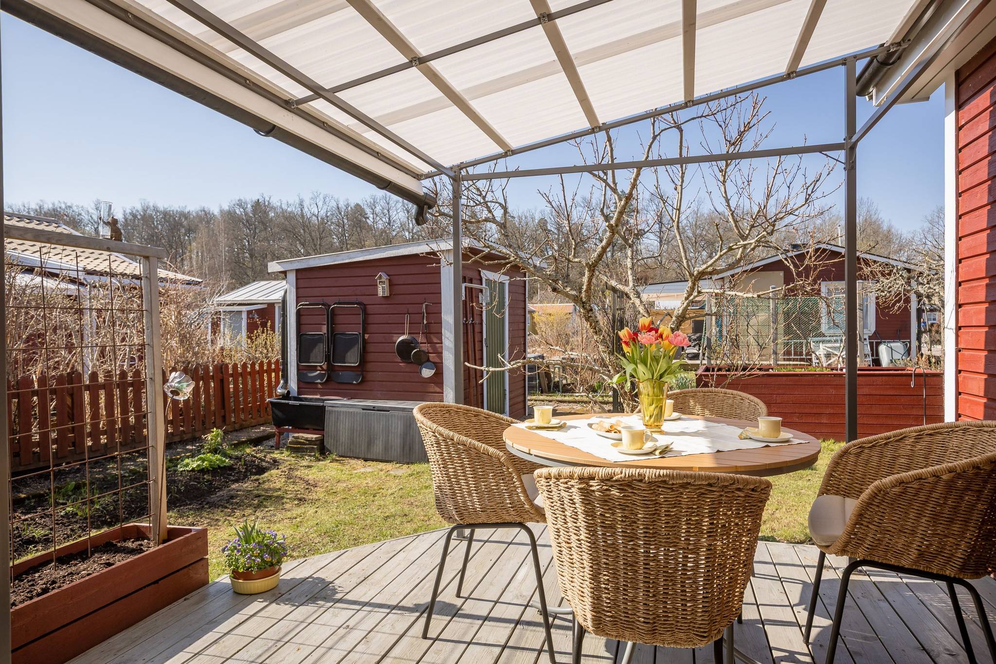 Varmt välkomna till Dillvägen 21 i Ådala koloniområde. Stugan är i toppskick och välskött, med ett lugnt och grönt läge precis intill Stångån, där inget hindrar utsikten mot vattnet. Planlösningen är öppen mellan kök och vardagsrum och kompletteras av en trivsam eldstad samt ett separat sovrum. Stugan har även en luftvärmepump för extra komfort. Det inglasade uterummet ger extra yta under sommarhalvåret och fungerar utmärkt för middagar, umgänge och avkoppling. Tomten är välskött och ombonad med blommor, fruktträd och ett förråd för redskap. Här finns även ett persikoträd som gett rikligt med frukt de senaste åren. Både dusch och wc samt parkering ligger näst intill inpå knuten, vilket gör vardagen på lotten smidig och bekväm. En båt med elmotor ingår dessutom. Här är det bara att flytta in och njuta av sommaren. En möjlighet för dig som vill ha en välskött kolonilott med fri vy mot Stångån – i ett av områdets allra bästa lägen. Bäst av allt, det är snabbt tillträde så här kan ni njuta redan till sommaren Varmt välkommen på visning!40 images