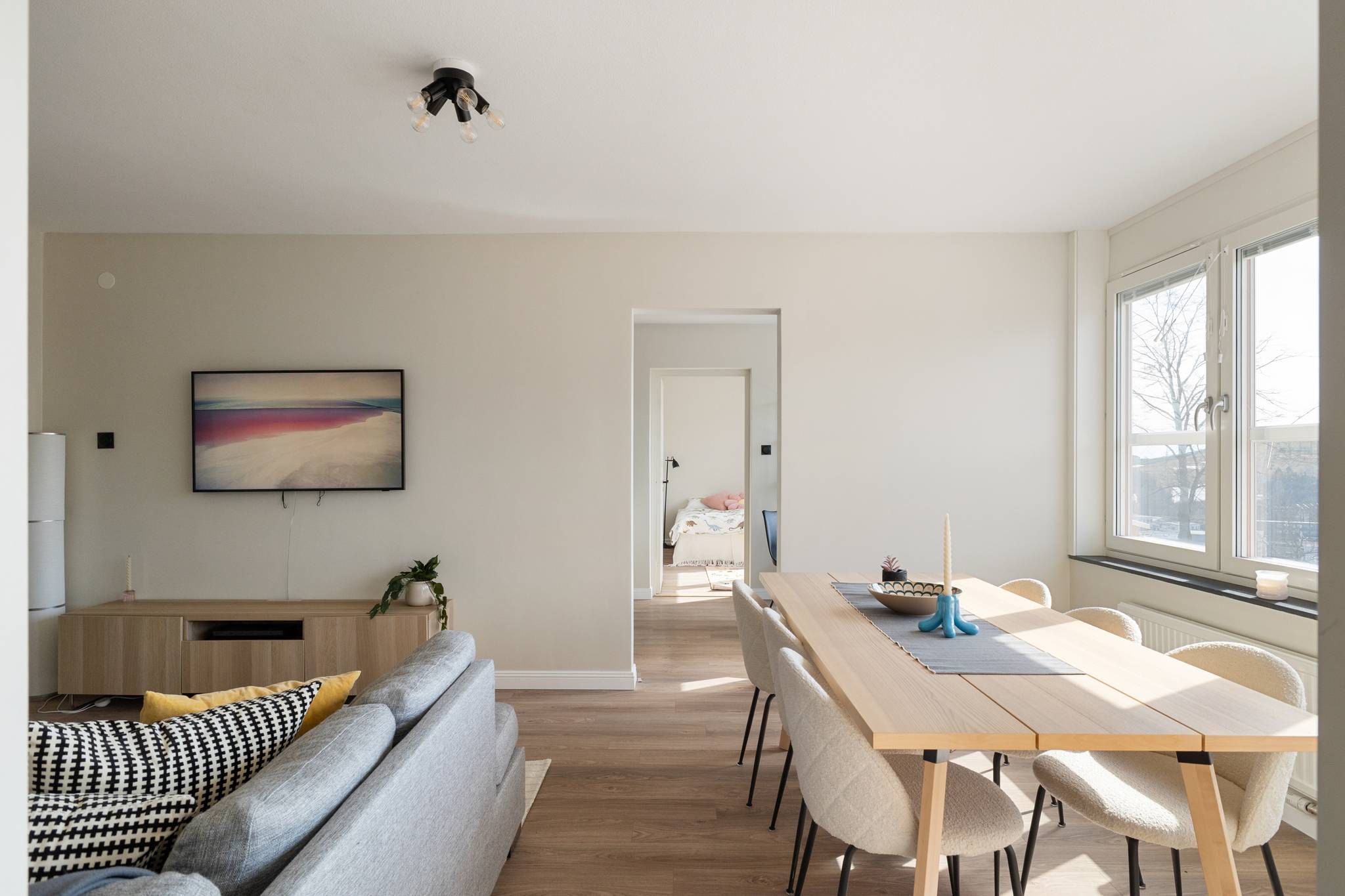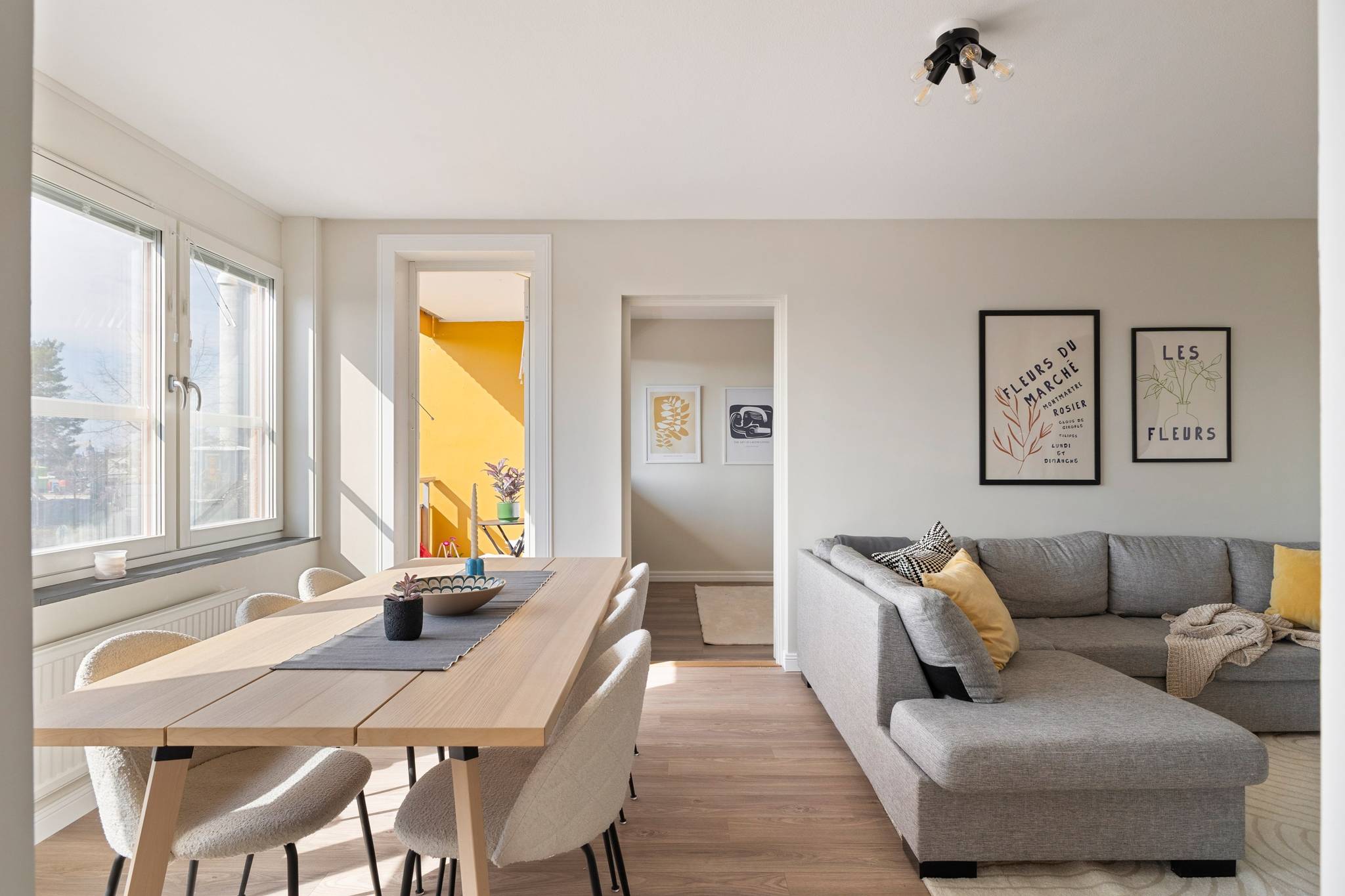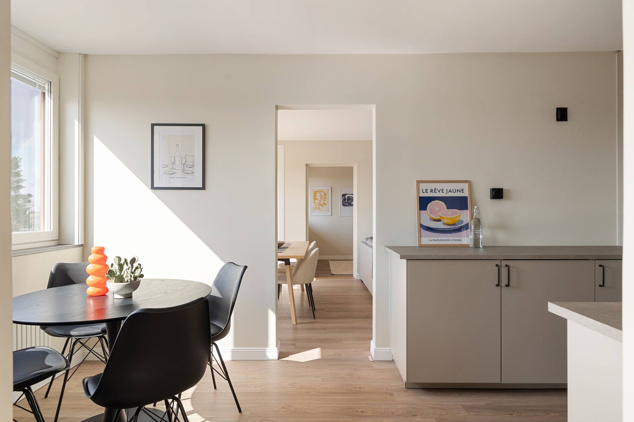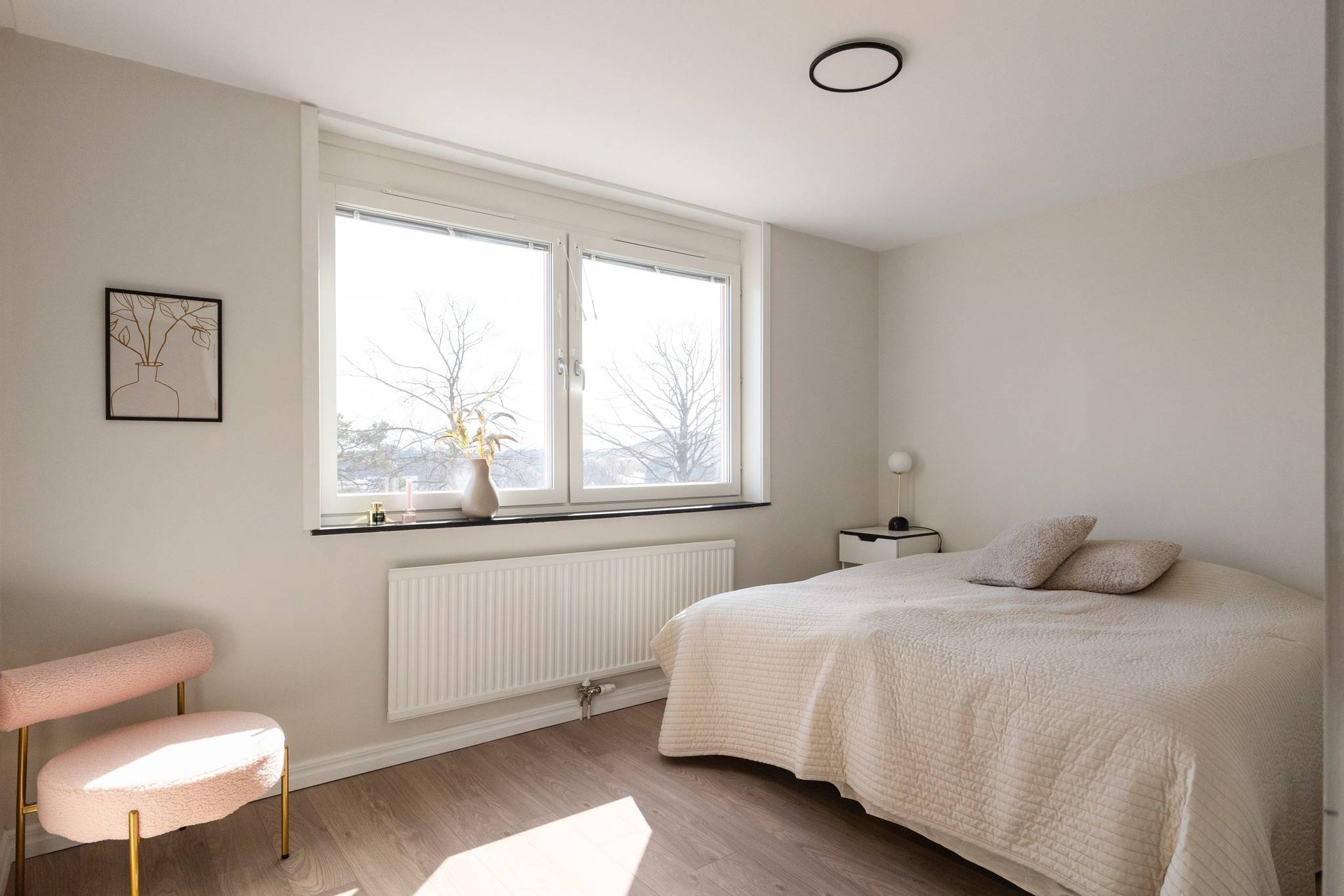 Stilren och välplanerad fyra om 92 kvm med generösa ytor, stora fönsterpartier och balkong med öppen utsikt. En omsorgsfullt renoverad bostad i högre standard där materialval och utförande håller en genomgående hög nivå. Planlösningen präglas av fyra rum i fil där ett sovrum, kök, vardagsrum och master bedroom binds samman via en öppnad passage, vilket skapar ett unikt flöde och en luftig känsla samtidigt som varje rum behåller sin tydliga funktion. Köket är modernt utformat med bra arbetsytor, full maskinell utrustning och god förvaring. Vardagsrummet rymmer enkelt både soffgrupp och matsalsdel och har, tillsammans med master bedroom, direkt access till balkongen. Ytterligare ett rogivande sovrum i bra storlek ger flexibilitet för familj, hemmakontor eller gästrum. Master bedroom i lugnt läge med god förvaring och utgång till balkongen. Bostaden erbjuder även ett stilrent badrum samt separat gäst-wc. Genomgående ljusa ytskikt, enhetliga golv och väl genomtänkta detaljer förstärker det harmoniska helhetsintrycket och gör bostaden inflyttningsklar. Brf Henriksdalshöjden är en stabil och välskött förening med ett aktivt underhållsarbete och tydligt fokus på energieffektivisering. Belåningen uppgår till cirka 14 700 kr/kvm och soliditeten ligger runt 44 %, vilket tillsammans med genomförda investeringar och kontrollerad kostnadsbild skapar en trygg och långsiktigt hållbar ekonomi .25 images