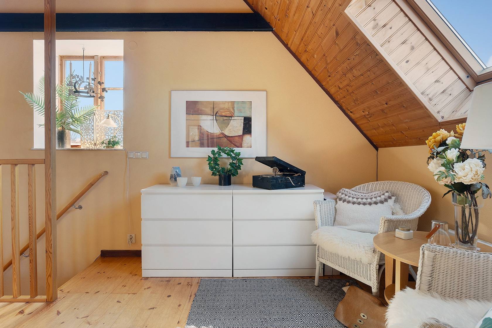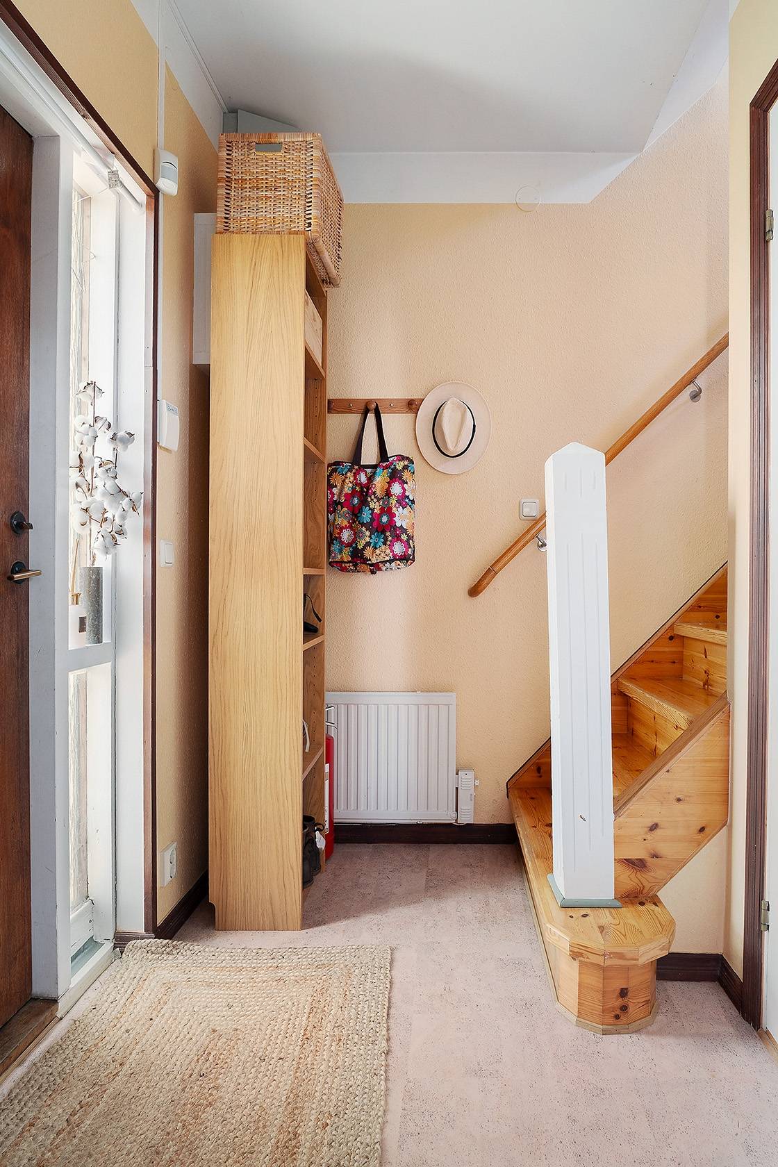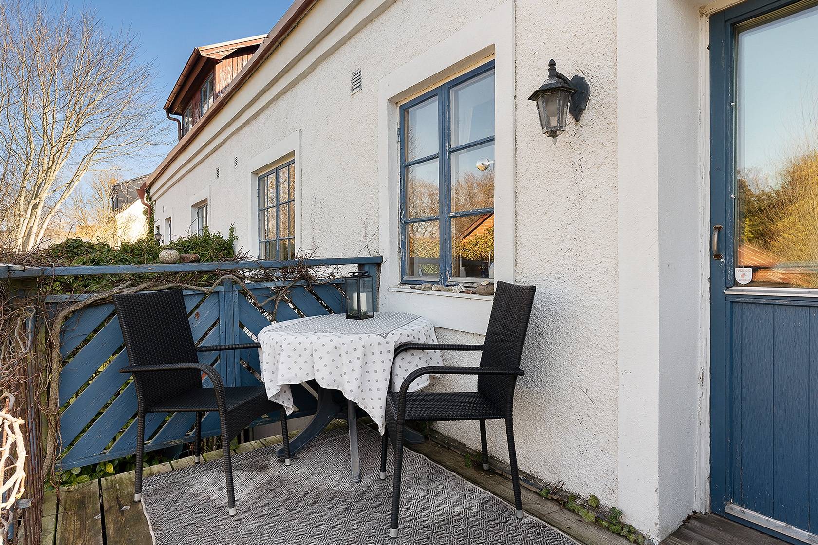 Charmigt vitputsat parhus från 1909 om 73 kvm i 1½ plan med centralt läge och lummig trädgård. Entréplan med öppen planlösning mellan kök, matrum och vardagsrum, brädgolv, takbjälkar och vackra spegeldörrar. Badrum med dusch. Ovanvåning med två sovrum och toalett samt trappa till mysigt sovloft. Ett hemtrevligt boende med karaktär och sociala ytor.33 images