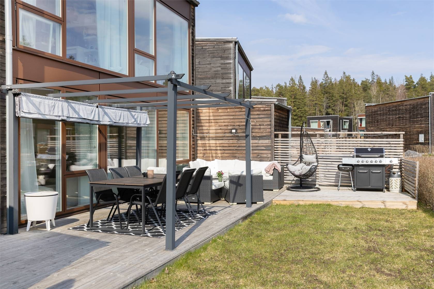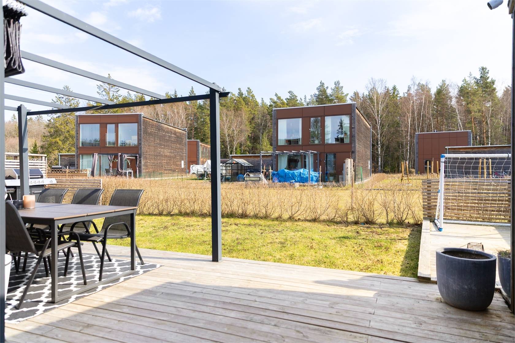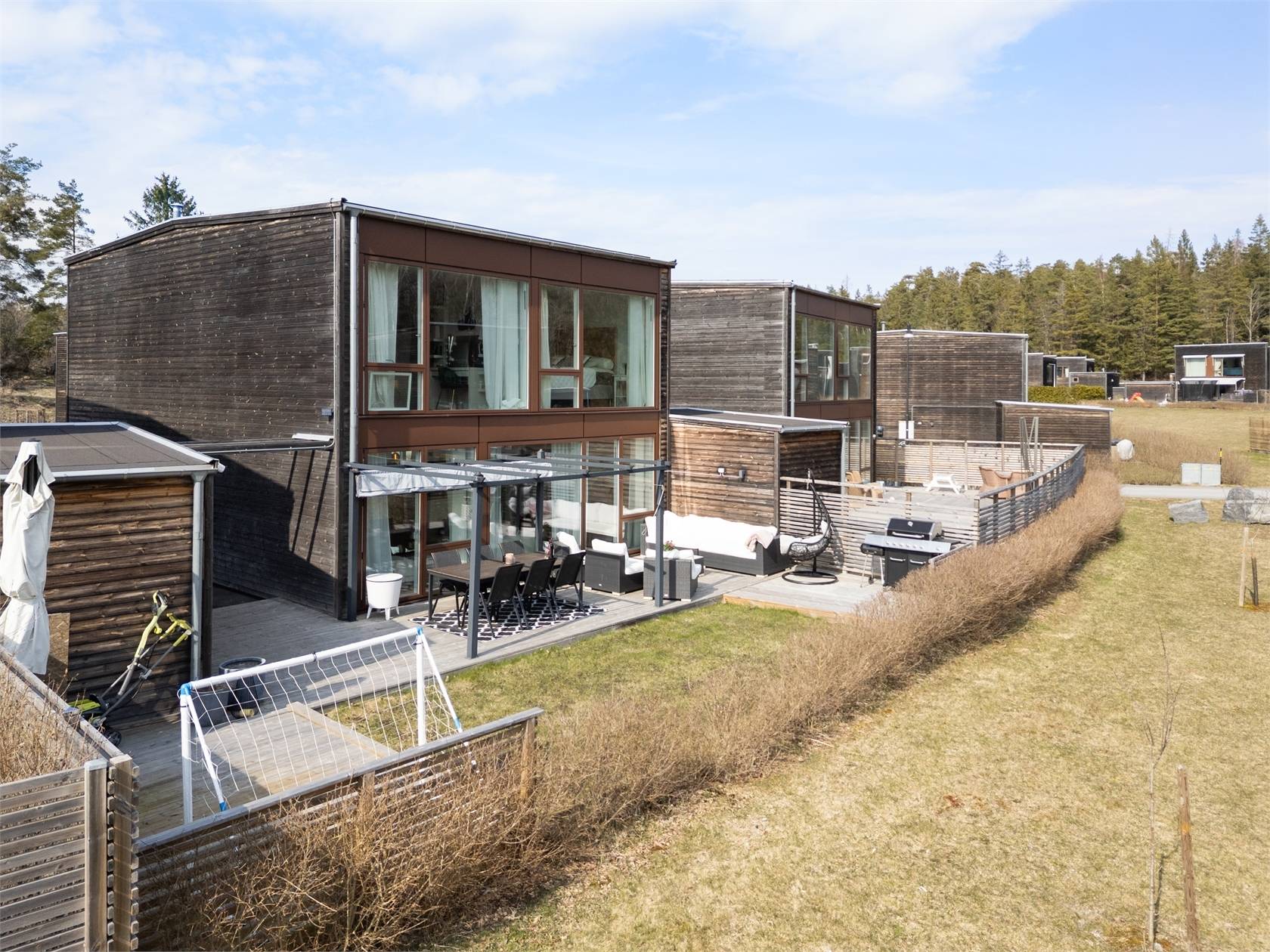 På Bråta Allé 29 ges nu chansen att förvärva ett mycket stilfullt hus i modern design som karaktäriseras av generös takhöjd, fönsterpartier från golv till tak för maximalt ljusinsläpp och ljusa boningsytor. Entréplanet erbjuder öppen planlösning som lämpar sig utmärkt för umgänge och middagsbjudningar. Två stora uteplatser ger ytterligare utrymme under årets varma månader. På promenadavstånd nås mataffär, skola och allmänna kommunikationer och i området finns förskola.39 images