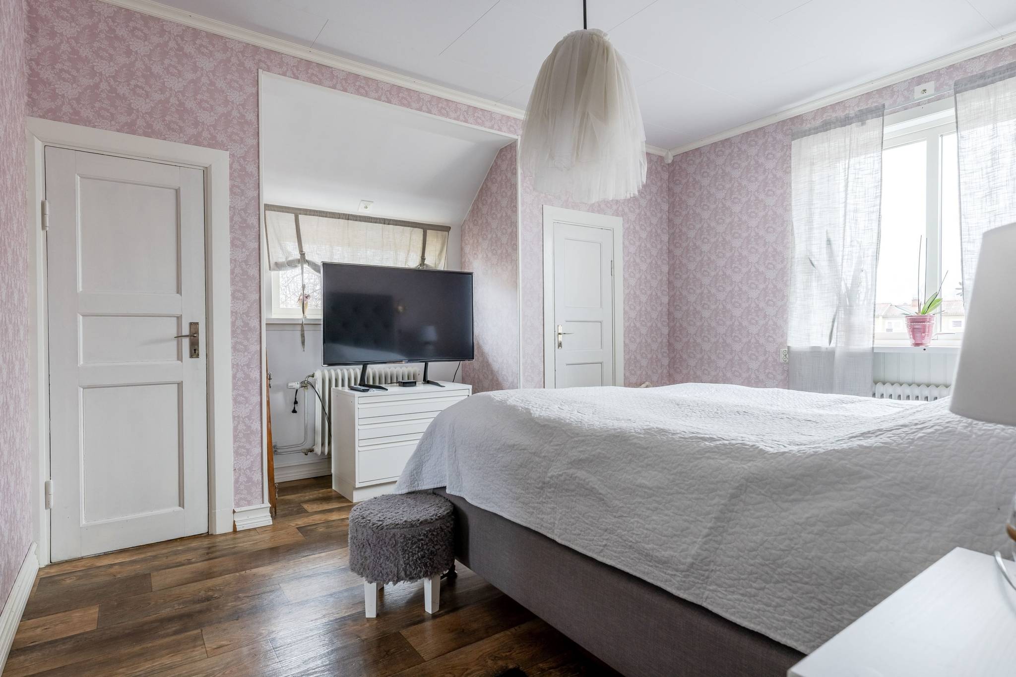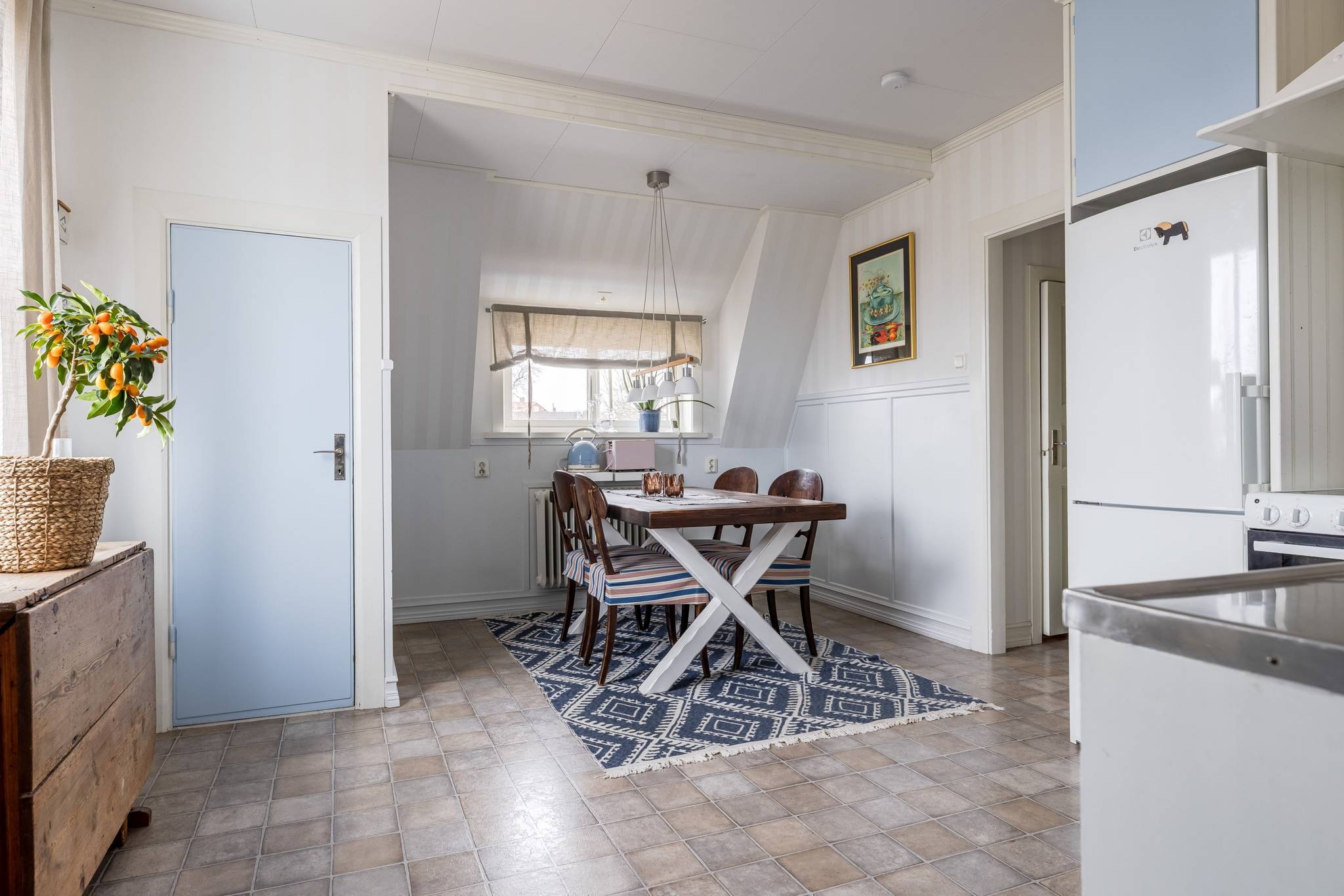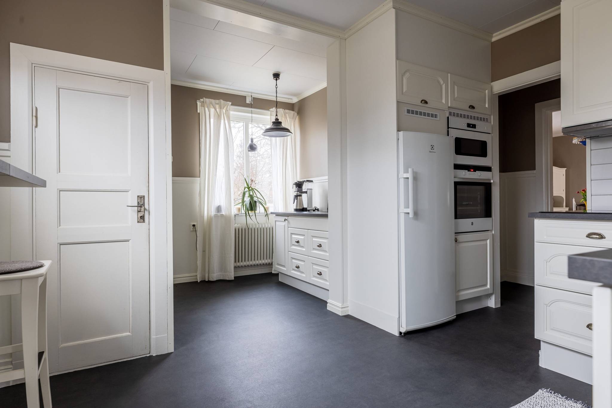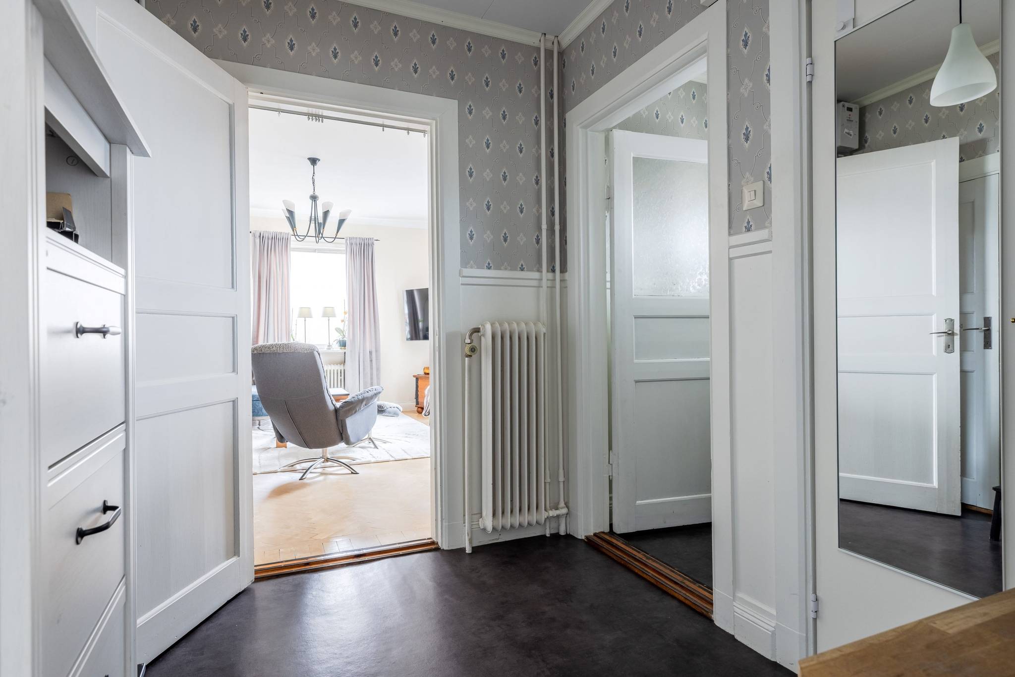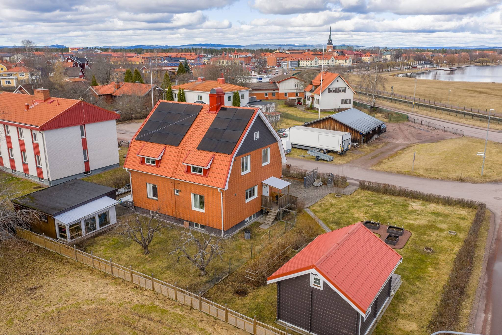 Med ett utmärkt läge i centrala Mora, ett stenkast från Siljan och med närhet till naturen, finner ni denna påkostade renoverade villa där modern elegans möter fint bevarade detaljer. En boyta på hela 185 kvm där det bara är att flytta in och börja trivas! Villorna som uppfördes på 1930-talet har rena och minimalistiska uttryck vilket verkligen är något som gör sig uttryck här. Huset har en genomtänkt planlösning med de sociala ytorna på entréplan med ett renoverat kök där stil möter funktion, ett intilliggande rymligt matrum, vardagsrum samt badrum. En trappa upp välkomnas du av en inredningsbar hall med balkong. Här sitter man gärna och njuter av morgonkaffet och blickar ner mot Siljan. Här finner ni husets två rymliga sovrum, samt ett badrum med dusch. Här finns även ett till kök som med enkelhet antingen kan göras om till ytterligare ett sovrum eller varför inte behålla som det är då med möjlighet för generationsboende. Genomgående vackra golv varav i vissa rum fiskbensparkett och ljusa fina ytskikt. Tack vare flera stora fönsterpartier nås bostaden av vackert ljusinsläpp och erbjuder en fin utsikt över trädgården och Siljan. Husets fina källare är även den helrenoverad och erbjuder en rymlig tvättstuga med bastu, ett renoverat badrum med dusch och golvvärme, förrådsutrymmen, matkällare samt ett extra sovrum. Huset värms effektivt med fjärrvärme och vattenburet system och har dessutom solceller på taket. I samband med renoveringen av källaren byttes alla VA rör ut. På tomten finns en nybyggd gäststuga med goda uthyrnings möjligheter. Mysig uppväxt trädgård med bärbuskar och äppelträd och med sjö glimt ner till Siljan. Garage och litet växthus. Här bor du med närhet till både skola och förskola med fina grönområden för barnen. På några minuter når du centrum som erbjuder mysiga restauranger, caféer, matbutiker, shopping och bio. Välkommen till ditt nya hem!65 images