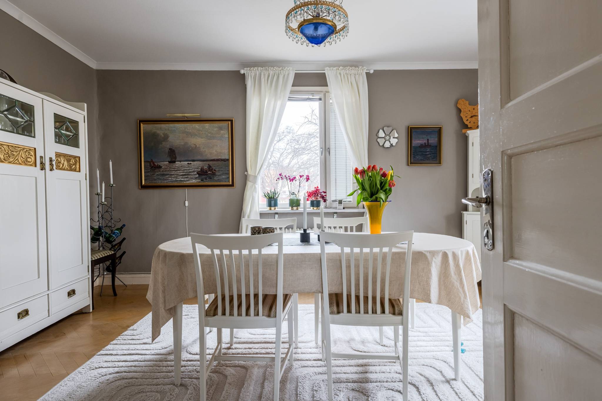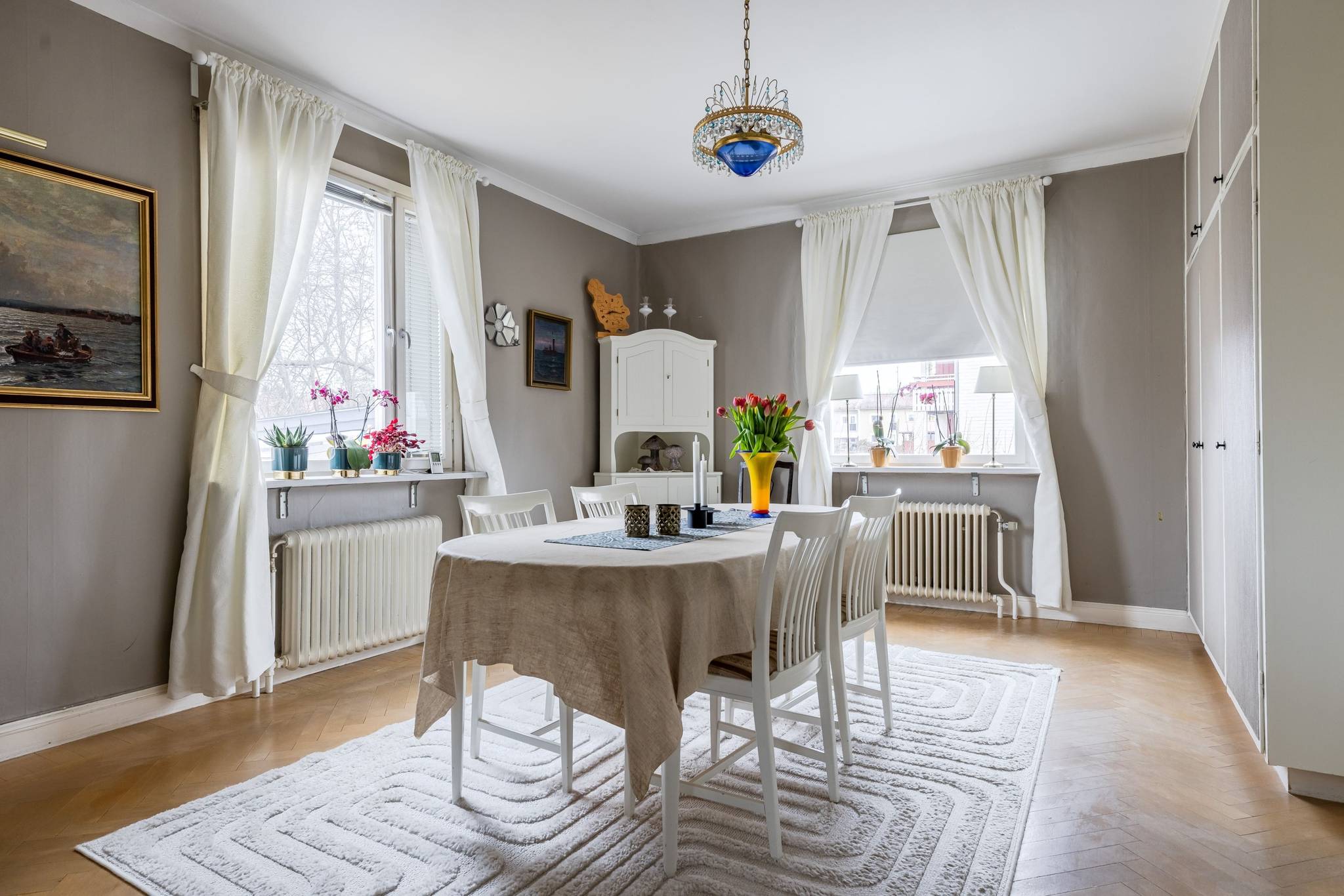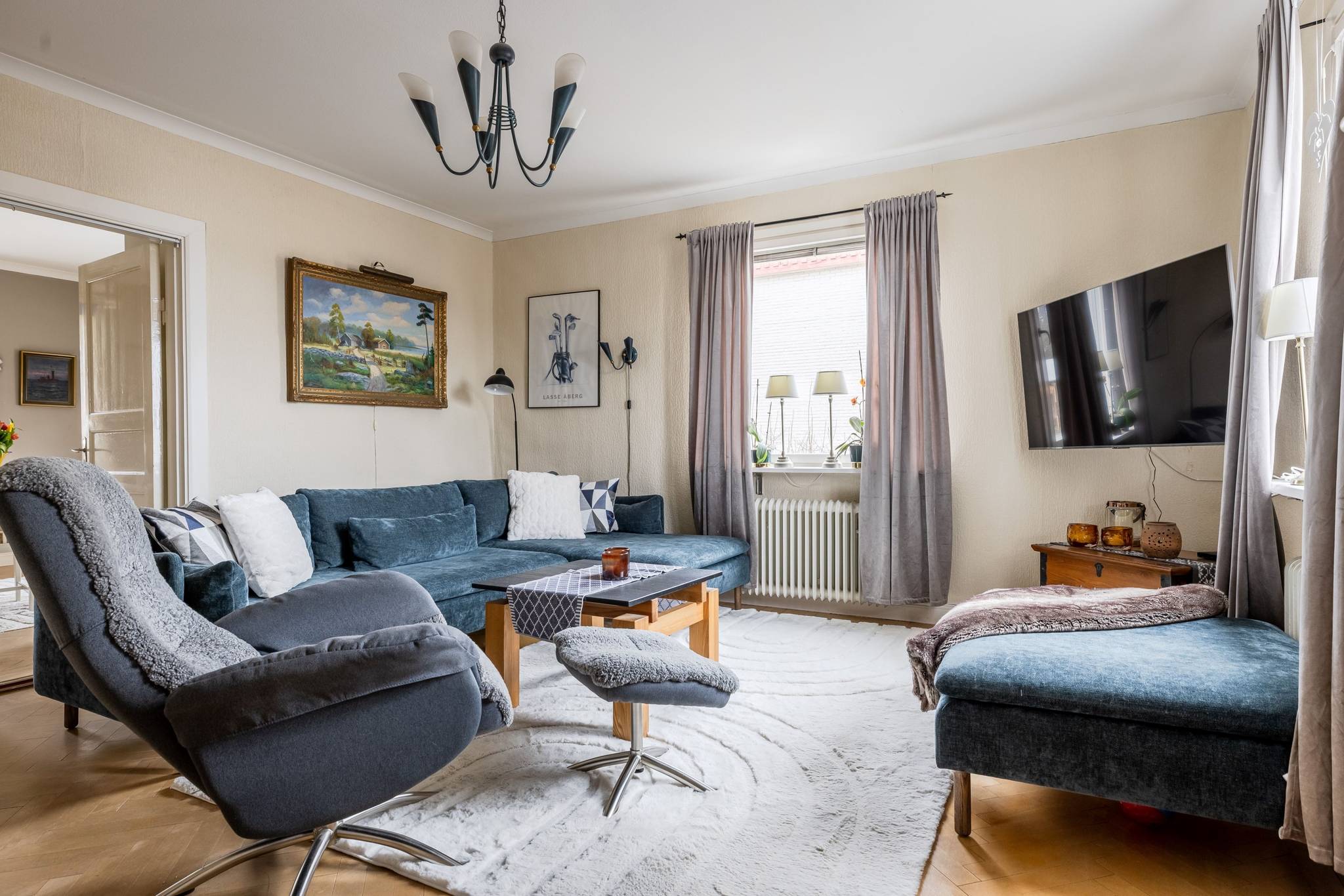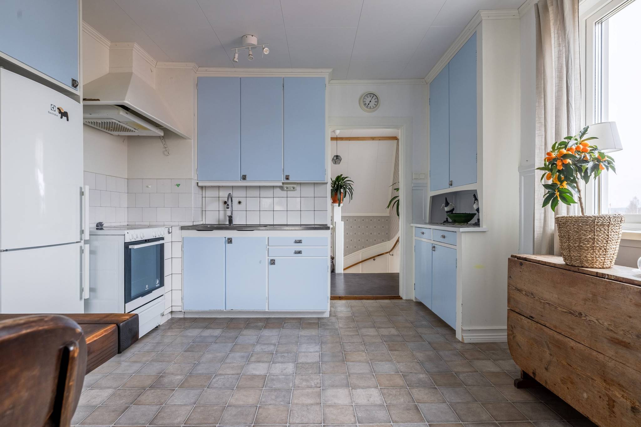 Med ett utmärkt läge i centrala Mora, ett stenkast från Siljan och med närhet till naturen, finner ni denna påkostade renoverade villa där modern elegans möter fint bevarade detaljer. En boyta på hela 185 kvm där det bara är att flytta in och börja trivas! Villorna som uppfördes på 1930-talet har rena och minimalistiska uttryck vilket verkligen är något som gör sig uttryck här. Huset har en genomtänkt planlösning med de sociala ytorna på entréplan med ett renoverat kök där stil möter funktion, ett intilliggande rymligt matrum, vardagsrum samt badrum. En trappa upp välkomnas du av en inredningsbar hall med balkong. Här sitter man gärna och njuter av morgonkaffet och blickar ner mot Siljan. Här finner ni husets två rymliga sovrum, samt ett badrum med dusch. Här finns även ett till kök som med enkelhet antingen kan göras om till ytterligare ett sovrum eller varför inte behålla som det är då med möjlighet för generationsboende. Genomgående vackra golv varav i vissa rum fiskbensparkett och ljusa fina ytskikt. Tack vare flera stora fönsterpartier nås bostaden av vackert ljusinsläpp och erbjuder en fin utsikt över trädgården och Siljan. Husets fina källare är även den helrenoverad och erbjuder en rymlig tvättstuga med bastu, ett renoverat badrum med dusch och golvvärme, förrådsutrymmen, matkällare samt ett extra sovrum. Huset värms effektivt med fjärrvärme och vattenburet system och har dessutom solceller på taket. I samband med renoveringen av källaren byttes alla VA rör ut. På tomten finns en nybyggd gäststuga med goda uthyrnings möjligheter. Mysig uppväxt trädgård med bärbuskar och äppelträd och med sjö glimt ner till Siljan. Garage och litet växthus. Här bor du med närhet till både skola och förskola med fina grönområden för barnen. På några minuter når du centrum som erbjuder mysiga restauranger, caféer, matbutiker, shopping och bio. Välkommen till ditt nya hem!65 images