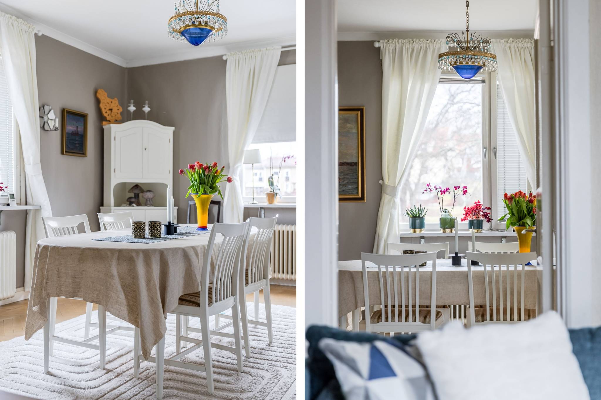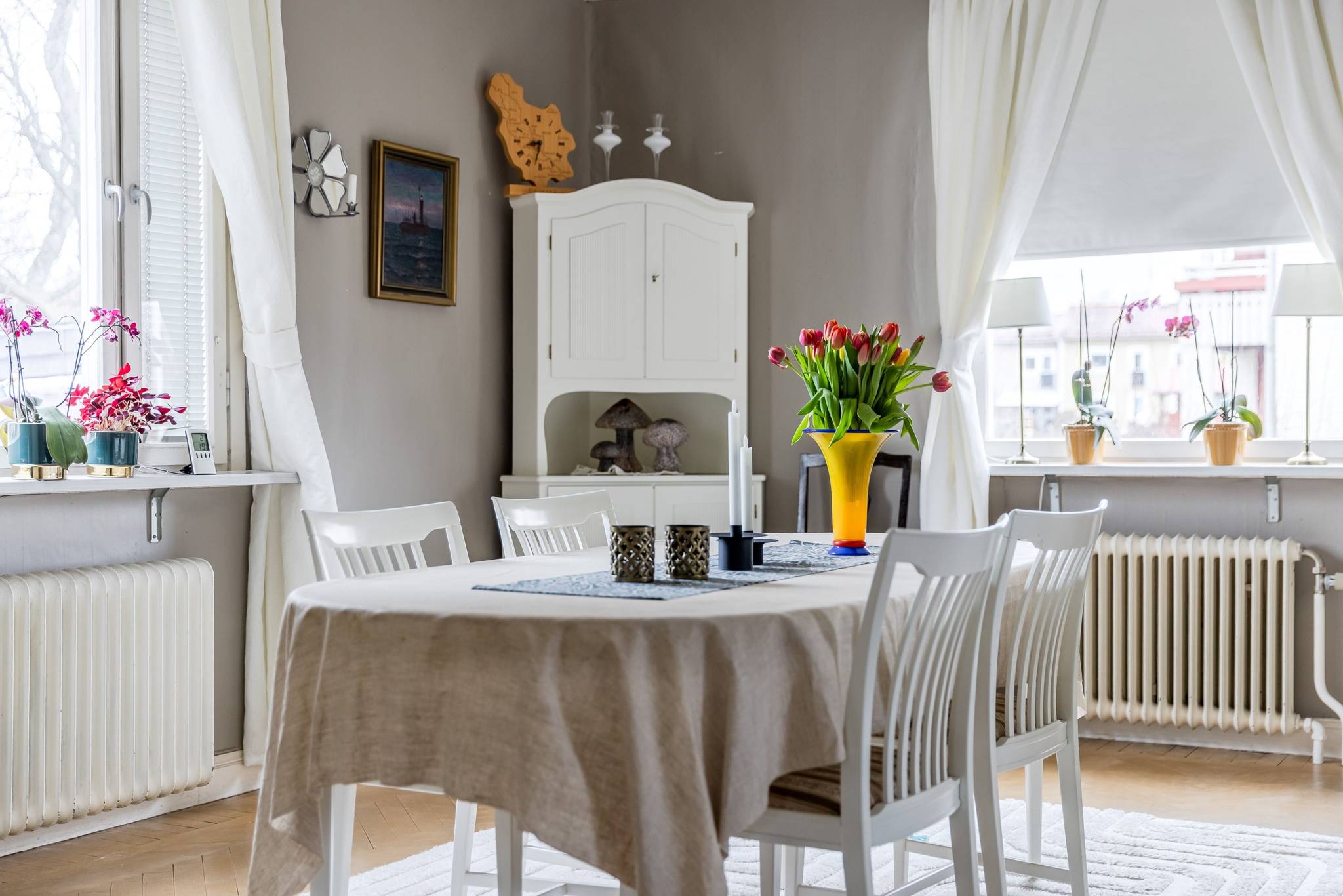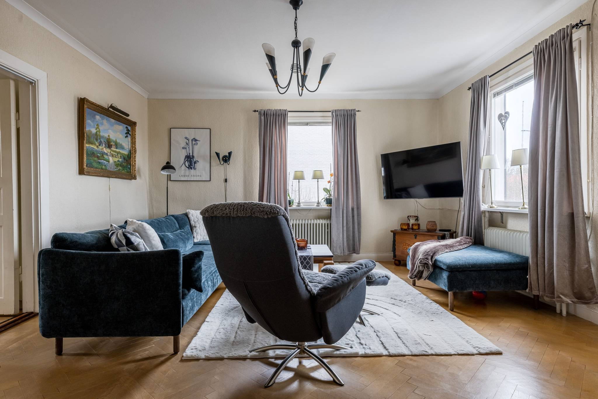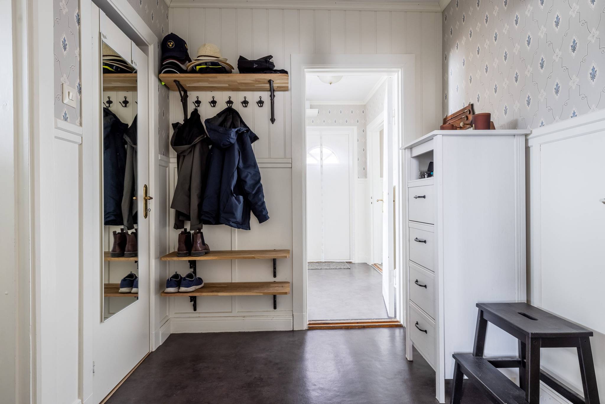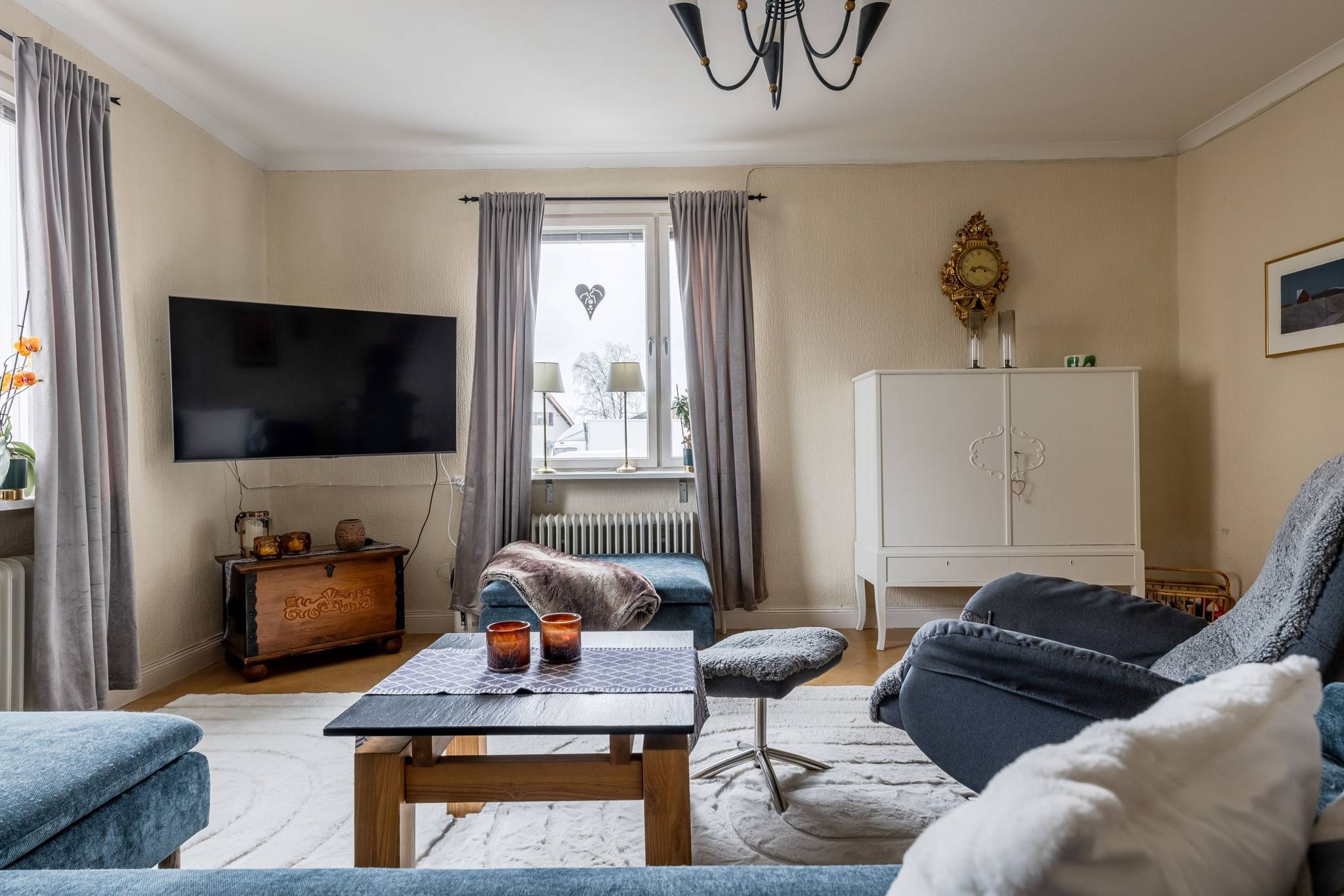 Med ett utmärkt läge i centrala Mora, ett stenkast från Siljan och med närhet till naturen, finner ni denna påkostade renoverade villa där modern elegans möter fint bevarade detaljer. En boyta på hela 185 kvm där det bara är att flytta in och börja trivas! Villorna som uppfördes på 1930-talet har rena och minimalistiska uttryck vilket verkligen är något som gör sig uttryck här. Huset har en genomtänkt planlösning med de sociala ytorna på entréplan med ett renoverat kök där stil möter funktion, ett intilliggande rymligt matrum, vardagsrum samt badrum. En trappa upp välkomnas du av en inredningsbar hall med balkong. Här sitter man gärna och njuter av morgonkaffet och blickar ner mot Siljan. Här finner ni husets två rymliga sovrum, samt ett badrum med dusch. Här finns även ett till kök som med enkelhet antingen kan göras om till ytterligare ett sovrum eller varför inte behålla som det är då med möjlighet för generationsboende. Genomgående vackra golv varav i vissa rum fiskbensparkett och ljusa fina ytskikt. Tack vare flera stora fönsterpartier nås bostaden av vackert ljusinsläpp och erbjuder en fin utsikt över trädgården och Siljan. Husets fina källare är även den helrenoverad och erbjuder en rymlig tvättstuga med bastu, ett renoverat badrum med dusch och golvvärme, förrådsutrymmen, matkällare samt ett extra sovrum. Huset värms effektivt med fjärrvärme och vattenburet system och har dessutom solceller på taket. I samband med renoveringen av källaren byttes alla VA rör ut. På tomten finns en nybyggd gäststuga med goda uthyrnings möjligheter. Mysig uppväxt trädgård med bärbuskar och äppelträd och med sjö glimt ner till Siljan. Garage och litet växthus. Här bor du med närhet till både skola och förskola med fina grönområden för barnen. På några minuter når du centrum som erbjuder mysiga restauranger, caféer, matbutiker, shopping och bio. Välkommen till ditt nya hem!65 images