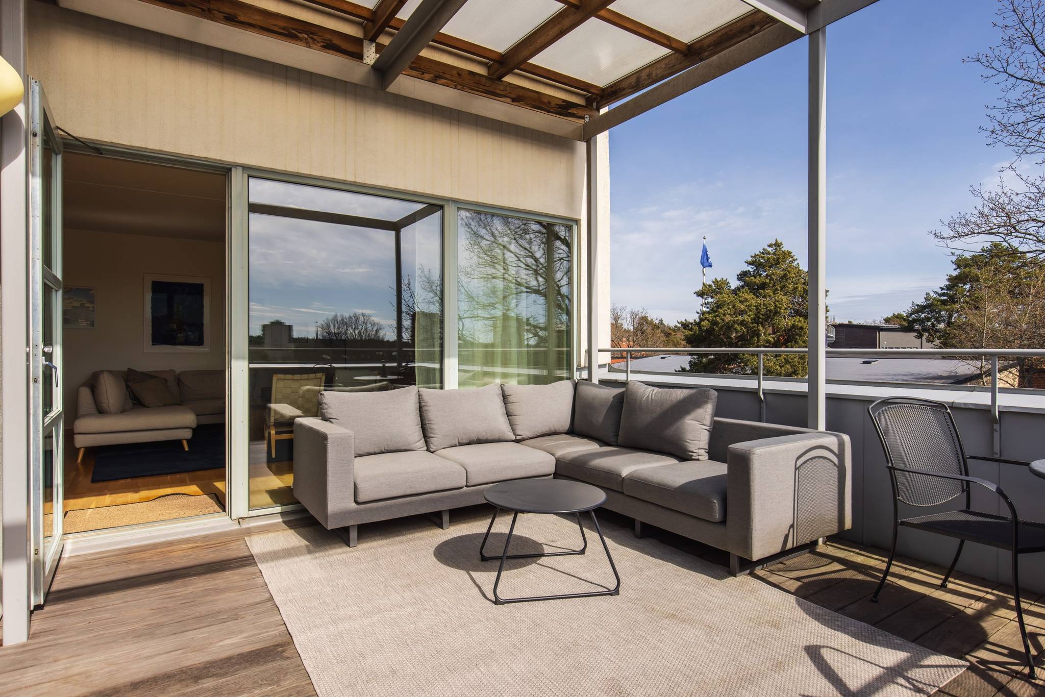 Exklusiv tvåa högst upp i arkitektritat hus med fantastisk takterrass och vy över takåsarna! Varmt välkommen till denna fantastiskt fina 2a högst upp i det arkitektritade huset av Kristian GullichsMore...