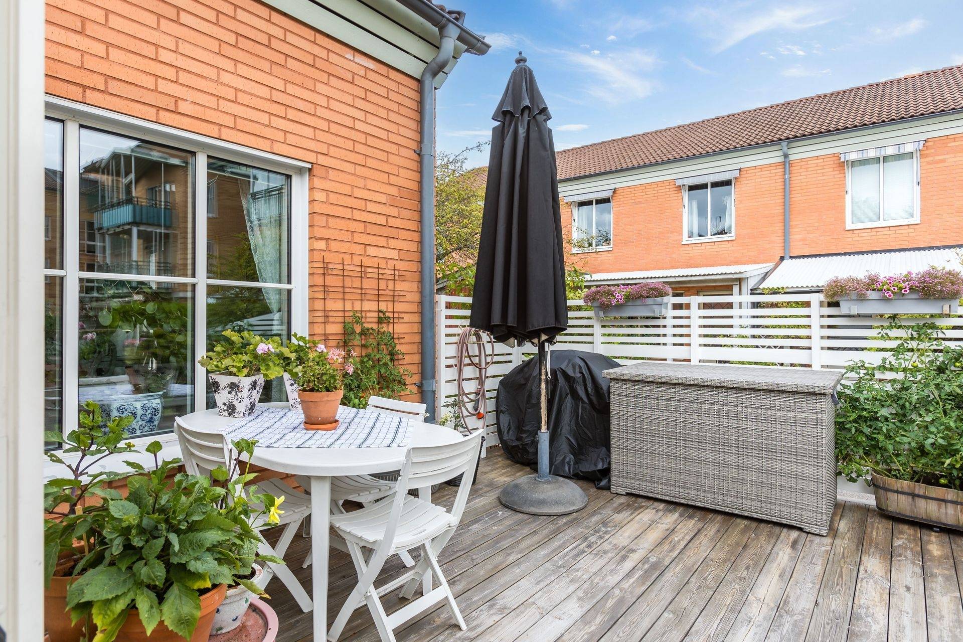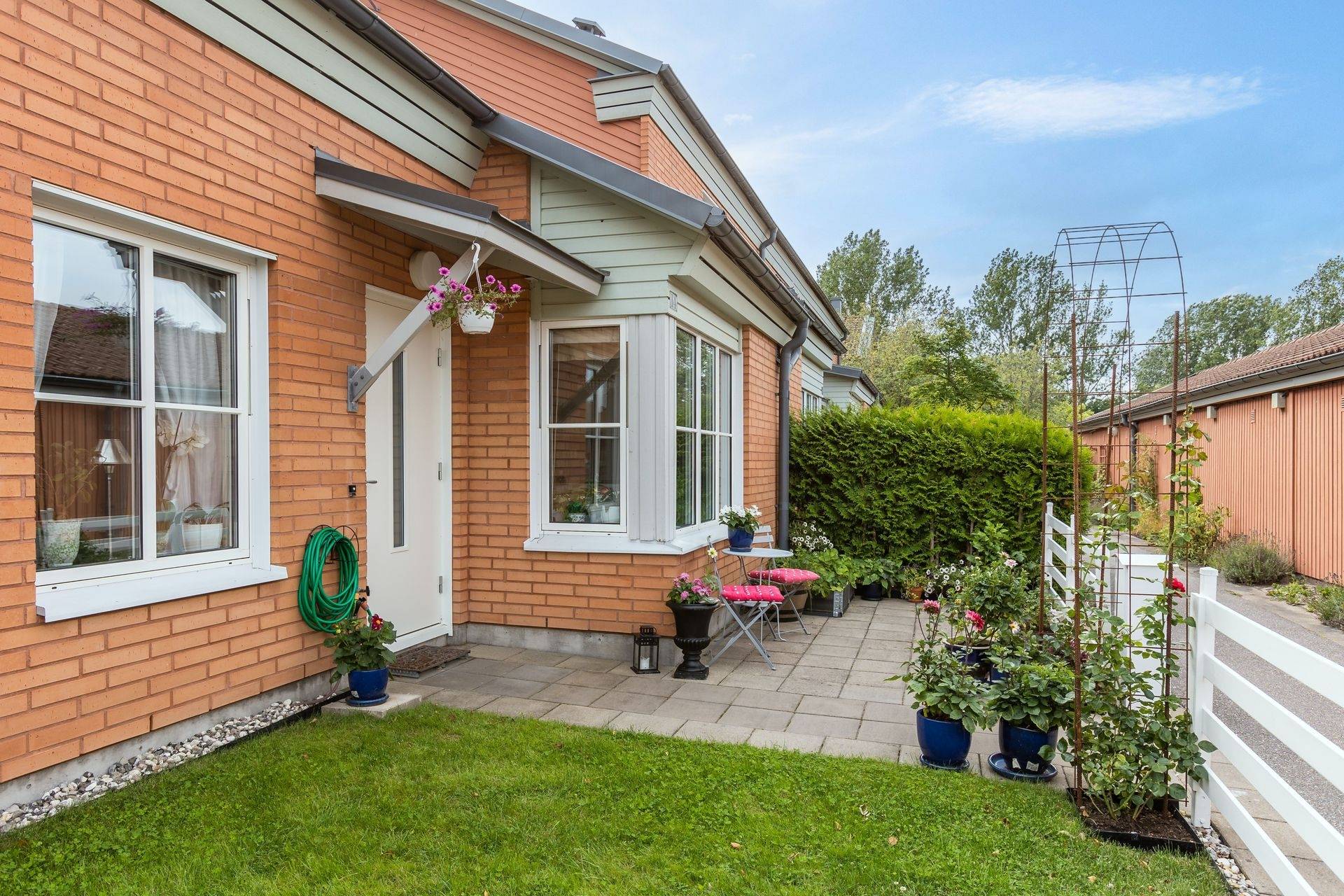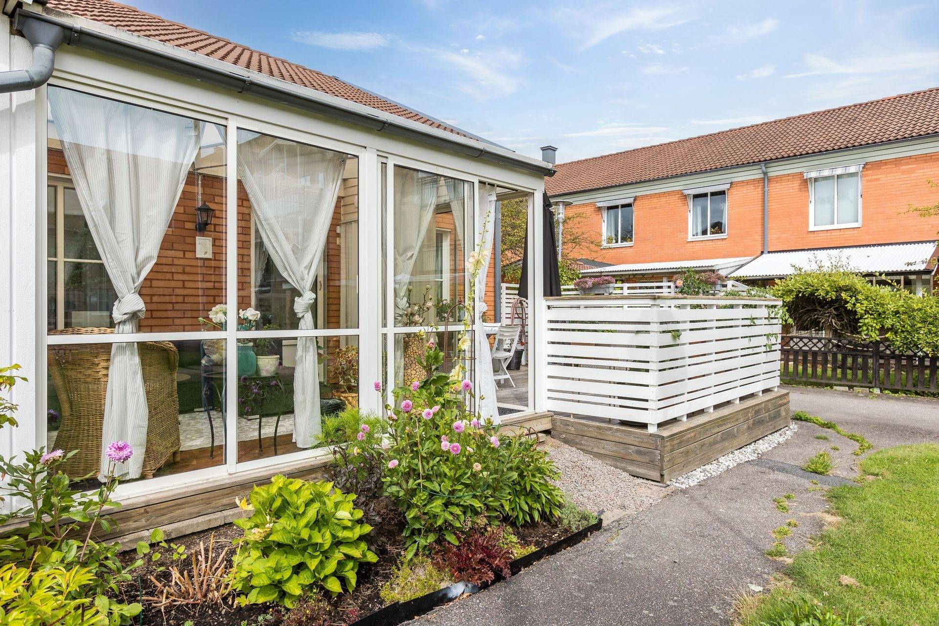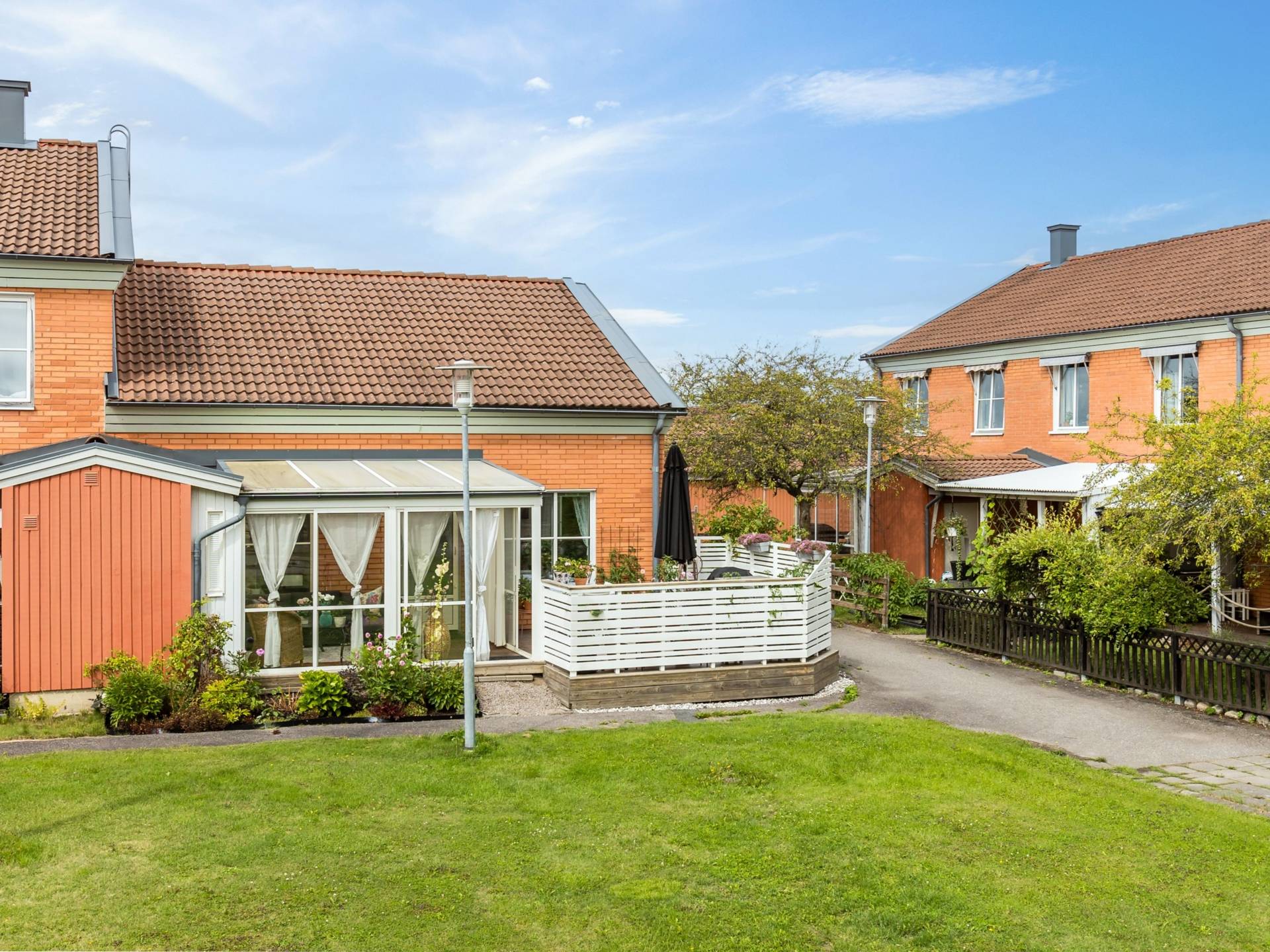 Välkommen till detta härliga radhus i hörnläge på populära Fönvindsvägen 14! Här bor du bekvämt på ett plan med hela 71,5 kvm fördelat på två sovrum, kök, totalrenoverat duschrum och tvättstuga som är separerade från varandra, samt ett inglasat uterum och ett generöst trädäck på baksidan. En av de stora fördelarna med detta hem är möjligheten att gå runt hela bostaden, vilket ger en härlig känsla av rymd och frihet. Här finns flera sköna oaser att njuta av, på baksidan erbjuds två trivsamma uteplatser, perfekta för både avkoppling och socialt umgänge. På framsidan finns dessutom en grönskande gräsmatta som inbjuder till lek, odling eller lugna stunder i solen. Köket är ljust och praktiskt med vita köksluckor, mörkt kaklat stänkskydd och rostfria vitvaror. Här finns också kyl och frys i fullhöjd med inbyggd isfunktion, samt gott om plats för matbord och stolar, perfekt för familjemiddagar eller fika med vänner. Den upprustade och fräscha tvättstugan ligger smidigt intill köket och är utrustad med tvättmaskin, torktumlare, arbetsbänk och hyllor för enkel vardagshantering. Det totalrenoverade duschrummet är helkaklat med exklusiva tillval som takdusch, handduksvärmare och vägghängd toalett, en modern och stilren oas. De två rymliga sovrummen erbjuder bra förvaringsmöjligheter, och vardagsrummet är socialt och ljust med utgång till det inglasade uterummet. Från uterummet når du även ett praktiskt uteförråd, som ger extra förvaringsutrymme. Här möts du av ett hem som vårdats och uppdaterats med både stil och funktion i åtanke. Genomtänkta renoveringar och förbättringar gör att du kan flytta in och trivas från första dagen. Den unika möjligheten att kunna röra sig fritt runt bostaden och njuta av flera uteplatser ger en härlig känsla av frihet och ett trivsamt utomhusliv. Här bor du i en stabil och välskött förening, Riksbyggen Linköpingshus nr 37, som bland annat erbjuder parkeringsplatser, garage med laddbox (ingår i avgiften) samt återvinningsrum. Tallboda är ett barnvänligt och uppskattat område med närhet till både natur och service, såsom skola och förskola. Området har också utmärkta kommunikationer med både bussförbindelser och cykelvägar som gör det enkelt och smidigt att ta sig in till stadskärnan och centrala Linköping på bara några minuter. Tillträde enligt överenskommelse, varmt välkommen på visning!28 images