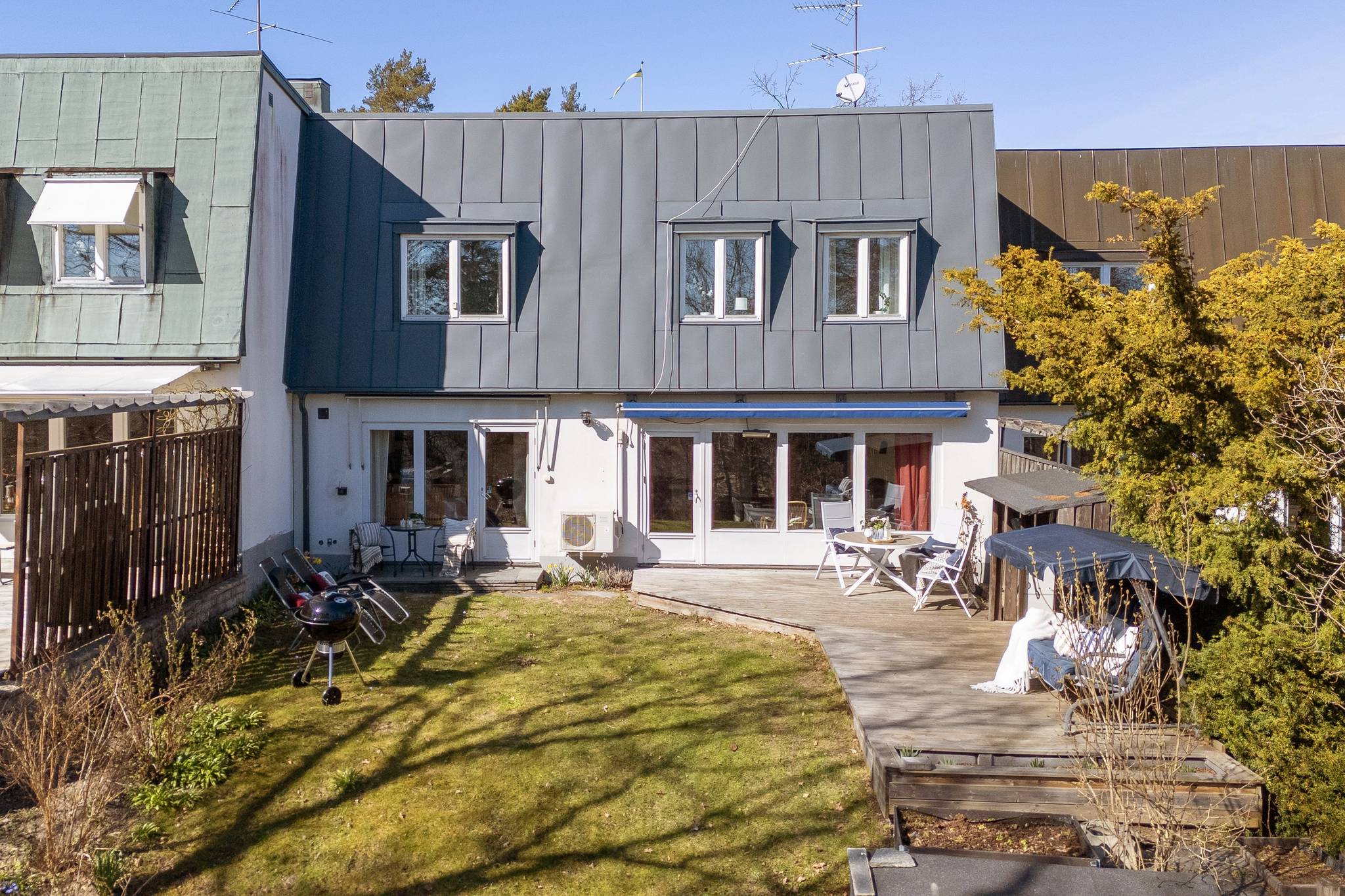 På en lugn återvändsgata på Solsidan finns detta charmiga 60-tals radhus i fint skick. Ljusa stilrena färger, stora fönsterpartier, många sovrum och härliga sociala ytor. Trivsam och privat insynsskydMore...