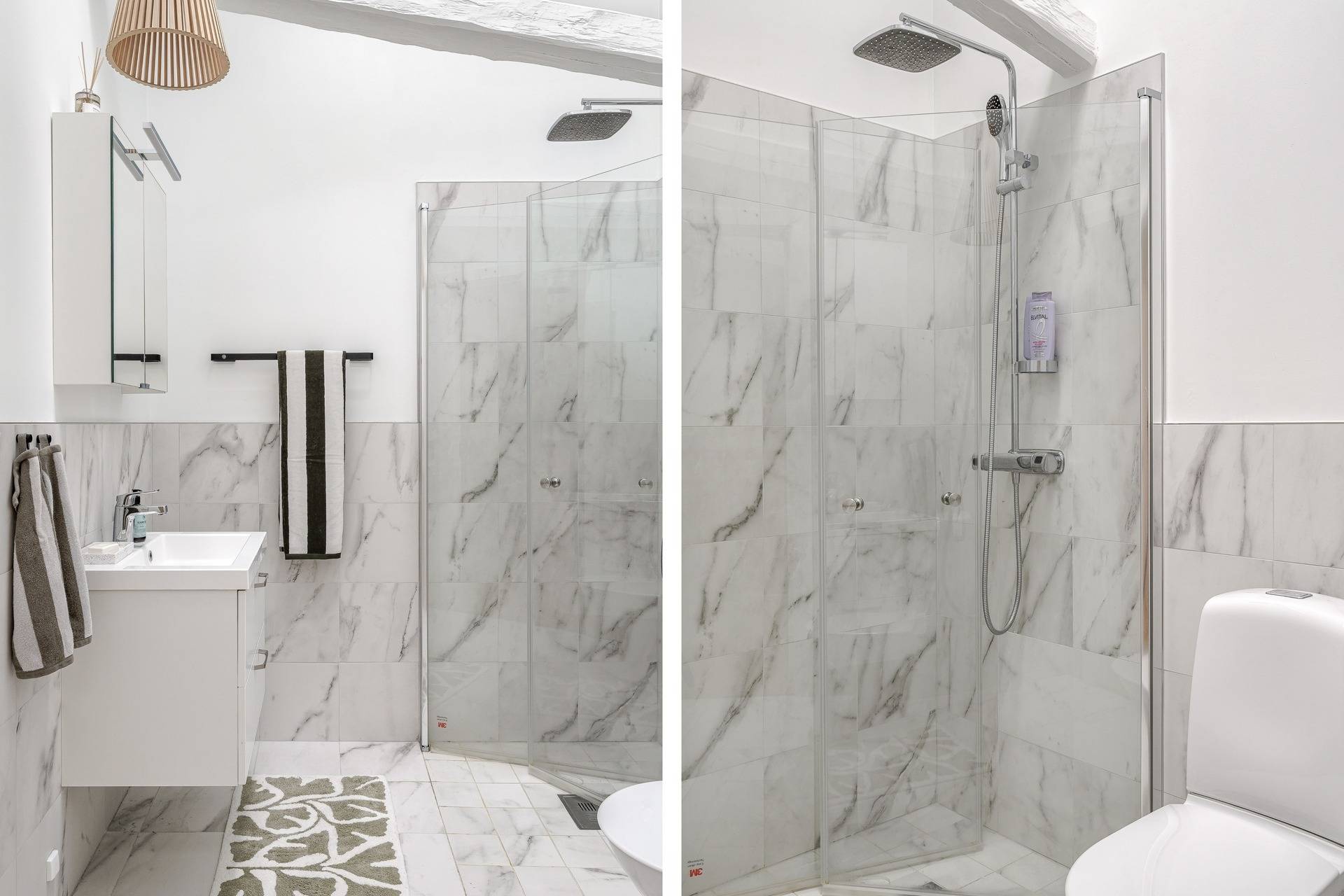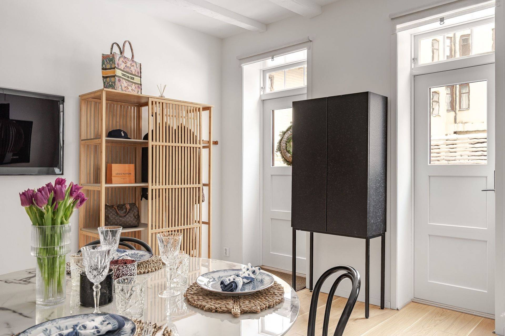 Stilfullt etageboende i eget gårdsboende! Topprenoverad trea i gömd äldre fastighet ett stenkast från Trädgårdstorget med påkostad interiör, dubbla badrum, generös uteplats och bevarad karaktär. Bo unikt med Linköpings centrumutbud precis utanför dörren! Söker du ett hem som du vill vara ensam om? Då har du hittat rätt! En dröm där allting är genomtänkt in i minsta detalj. Här samsas bland annat synliga takbjälkar, härliga sällskapsytor, enhetlig inredning med material såsom vitlaserat ekgolv och carraramarmor. Stilistiskt kök med detaljer såsom rostfria vitvaror samt bänkskiva i komposit. Inbjudande duschrum samt badrum som noggrant har renoverats i enlighet med övrig inredning. Här finns allt som den sparsmakade efterfrågar - dusch, badkar, tvättpelare, spotlights till elektriskt golvvärme är endast några få kvaliteter som kan nämnas. Sovrummen utmärker sig, gott om förvaring likväl såsom fina fönsterpartier. Ett boende som måste upplevas på plats! Här bor ni granne med vad allt Linköpings city har att erbjuda. På bara några sekunder finns torgets utbud av butiker, affärer, restauranger, sommaröppna uteserveringar samt caféer. Runt hörnet finns även kultur och nöje, såsom Saab Arena, konserthallar, nybyggt badhus, träningscenter och biosalonger. Likväl som ni kan ta en promenad eller åka båt på det glittrande vattnet vid Kinda Kanal eller Stångån. Vackra parker finns i den underbara Trädgårdsföreningen samt Sankt Larsparken. Härifrån nås Centralstationen på 8 minuters promenad och utanför bostaden finns det gott om bussförbindelser via Trädgårdstorget.24 images