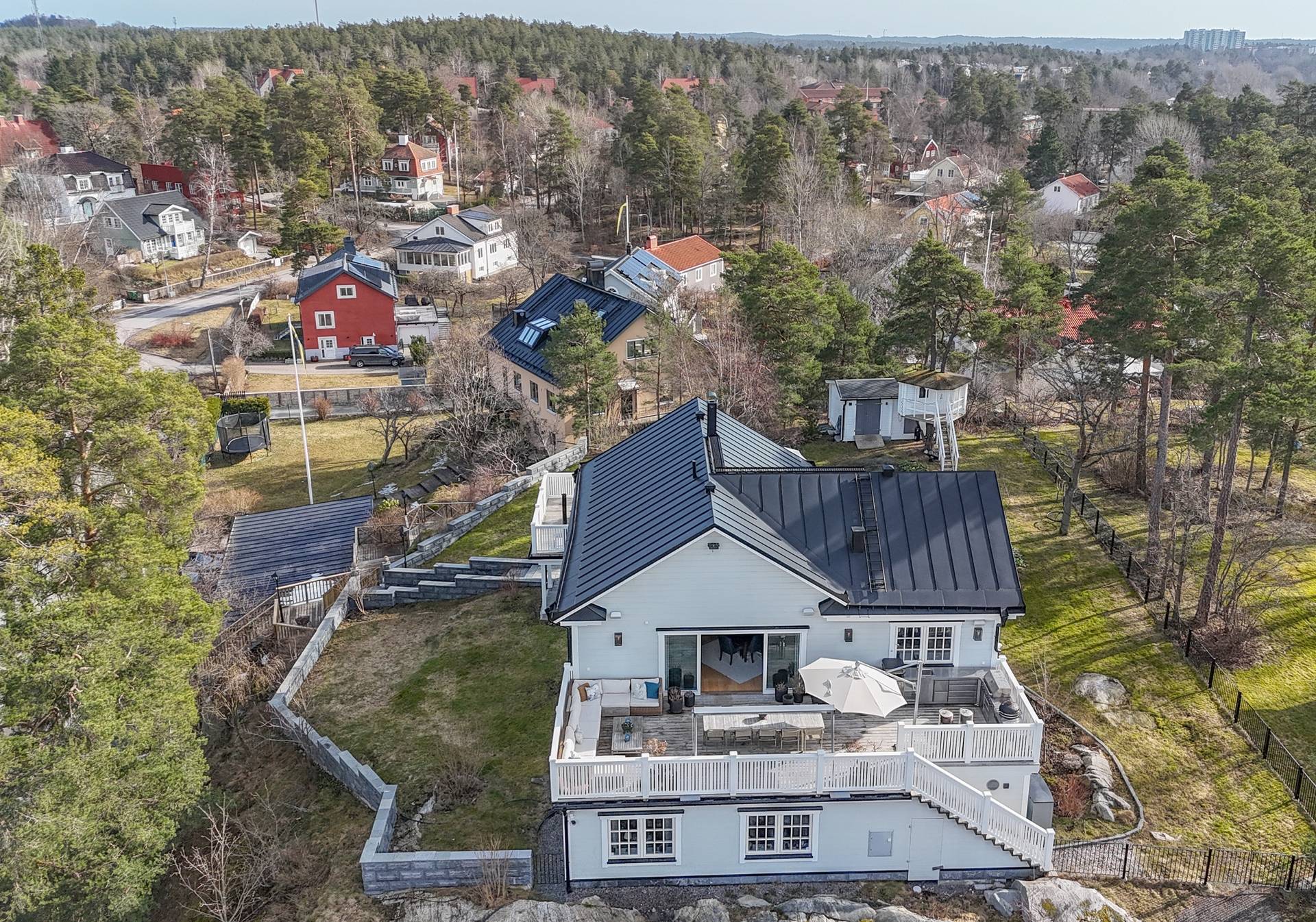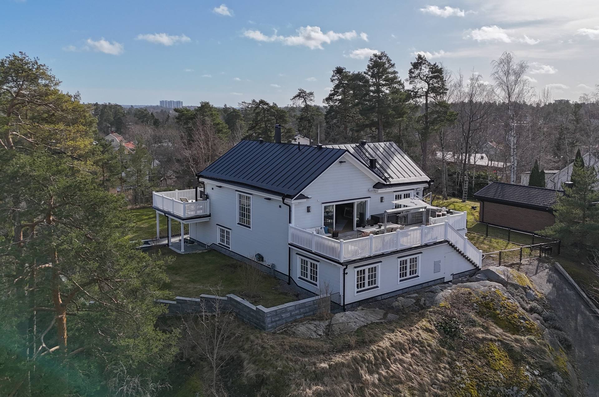 I ett av Lidingös mest attraktiva och högt belägna områden i Hersby, på en av områdets mest eftertraktade gator, presenteras nu en exklusiv villa i ett ostört och privat läge med sol från morgon till kväll. Villan omfattar cirka 318 kvm och erbjuder ett stort och exklusivt kök med köksö, 4–5 sovrum, ett elegant vardagsrum med braskamin, separat tv-rum samt ett generöst vinrum. Övre plan är öppet upp till nock, vilket skapar en imponerande rymd och en luftig känsla över hela våningsplanet. Bostaden präglas av generösa sociala ytor som lämpar sig perfekt både för den stora familjen och för att ta emot gäster. Genomgående exklusiva materialval och noggrant utvalda detaljer bidrar till ett stilrent och högkvalitativt boende. Från huset nås flera terrasser på båda sidor, varav en är utrustad med ett påkostat utekök – idealiskt för sommarens middagar och sociala tillställningar. På tomten finns även dubbelgarage, förråd samt en charmig trädkoja. Här bor du i ett högklassigt hem i ett lugnt och privat läge, samtidigt som du har bekväm närhet till allt som förenklar vardagen. Med gångavstånd till Lidingö centrum finns ett brett utbud av service, restauranger och butiker, och i närområdet finns både skolor, mataffär och goda kommunikationer. En sällsynt möjlighet – varmt välkommen på visning42 images