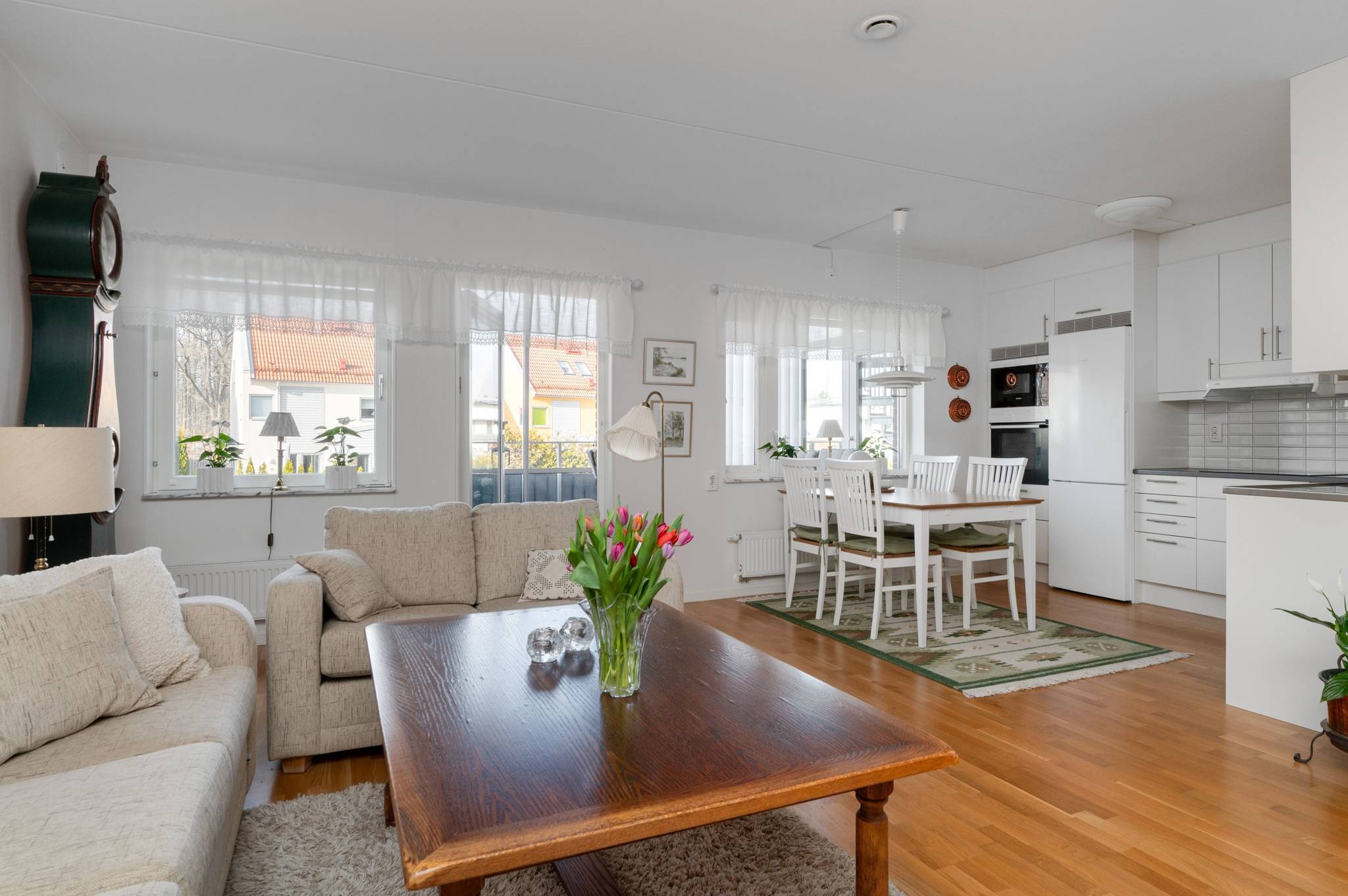 Välkommen till denna ljusa och välplanerade 2-rumslägenhet på andra våningen i Brf Bovieran – Linköpings mest unika seniorboende! Lägenheten erbjuder ett praktiskt väl tilltaget kök med matplats och delvis öppen planlösning mot vardagsrummet. Härifrån når du den inglasade balkongen i härligt västerläge, perfekt för eftermiddagssol och avkoppling året runt. Det helkaklade våtrummet är utrustat med både tvättmaskin och torktumlare, vilket ger hög bekvämlighet i vardagen. Hallen är smart planerad med gott om förvaring och gör att man alltid kan vara torrskodd redan innanför huvudentrén. Sovrummet rymmer en dubbelsäng och erbjuder även här mycket förvaringsmöjligheter. Bovieran erbjuder ett unikt boendekoncept och räknas som Sveriges grönaste seniorboende. Den inglasade vinterträdgården utgör en naturlig mötesplats för både avkoppling och social samvaro, där grönska och ljus kan njutas året runt i en trivsam och lättillgänglig miljö. I Brf Bovieran finns även en aktiv trivselförening som bidrar till en levande gemenskap genom återkommande aktiviteter såsom gemensamma promenader, pubkvällar i innerträdgården, bussresor, traditionsenligt luciafirande samt golf- och bouleturneringar. Läget är perfekt för den som vill kombinera lugn och natur med närhet till aktiviteter. Här bor du nära Landeryds Golfklubb, Friskis & Svettis, Harvestads handelsområde, och har bra bussförbindelser till Linköpings innerstad. En idealisk lägenhet för dig som vill ha komfort, gemenskap och grönska nära till hands – och samtidigt ett hem där varje dag kan njutas i egen takt.17 images