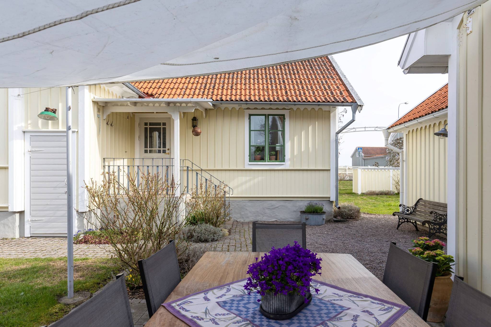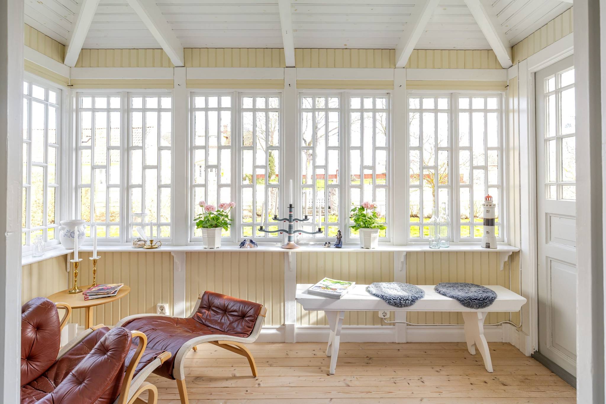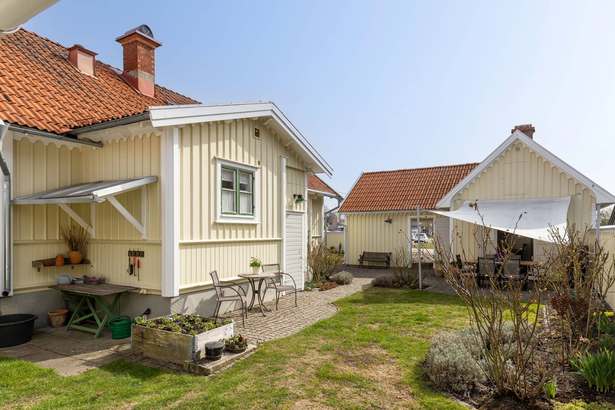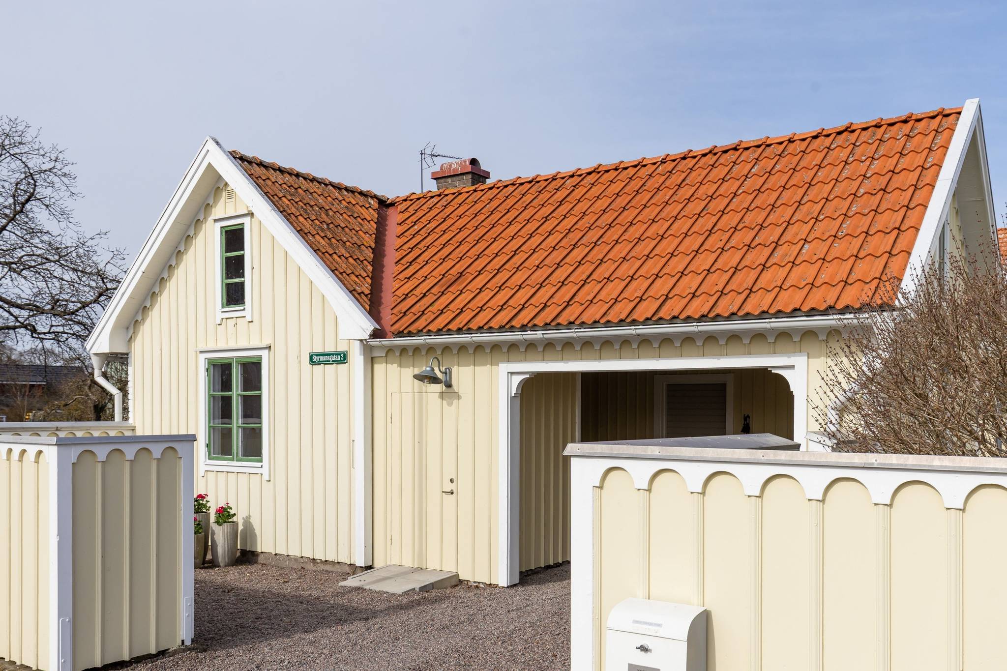 Ett hem där omtanke och hantverk får tala för sig själva. Ett vackert och välskött hus som varsamt tagits om hand under många år med fokus på det genuina, hållbara och hjärtliga. Sedan 2001 har huset steg för steg renoverats med stor respekt för dess ursprung. Här har inget lämnats åt slumpen. Med bakgrund som snickare och byggnadsingenjör har tidigare ägare med säker hand och känsla återskapat detaljer i byggnadsvårdsmässig anda. Fasaden med sin snickarglädje följer traditionen i Bergkvara, och snickerier samt golv är framtagna i samarbete med lokalt sågverk efter äldre förlagor. Redan vid första anblick förstår man att detta är något särskilt. Och känslan förstärks när du kliver in genom trädgården, en varm och inbjudande plats där huset bär spår av omsorg och kärlek. Entréplanet bjuder på ett trivsamt kök med närhet till en mysig matsal där kakelugnen blir hemmets naturliga samlingspunkt. Den återskapade glasverandan ger ett mjukt ljus och en stillsam plats att slå sig ner på. Här finns också ett ombonat vardagsrum, ett sovrum och ett badrum, allt med samma genomgående känsla av hemtrevnad. En trappa upp möts du av ett ljust allrum med plats för både vila och umgänge. Från balkongen skymtar havet och södra Öland i horisonten, en vy som skiftar med årstiderna. Här finns även två sovrum, varav det ena med havsutsikt. Trädgården är en historia för sig, en prunkande rosenträdgård med mjuka, svängda singelgångar som leder dig mellan olika rum och platser. På innergården väntar en skyddad uteplats under segel, där planket skärmar av från havsvindarna. När kvällen blir sval finns det charmiga grillhuset att dra sig tillbaka till, en plats som förlänger sommarens alla stunder. På tomten finns också ett gårdshus om cirka 25 kvm med både verkstad och grillhus, liksom ett fristående uthus med gästrum, redskapsbod och vedförråd. Här finns gott om utrymme för både praktiska behov och egna idéer. Läget är rofyllt med närhet till havet. Badmöjligheter finns i Dalskär, och många i trakten söker sig till Badudden, en uppskattad plats längst ut på udden, bara en kort promenad bort. Det här är inte ett perfekt tillrättalagt hem, det är något bättre. Ett hus som levts i, vårdats och älskats. Ett hem att trivas i, växa i och tycka om, år efter år.72 images