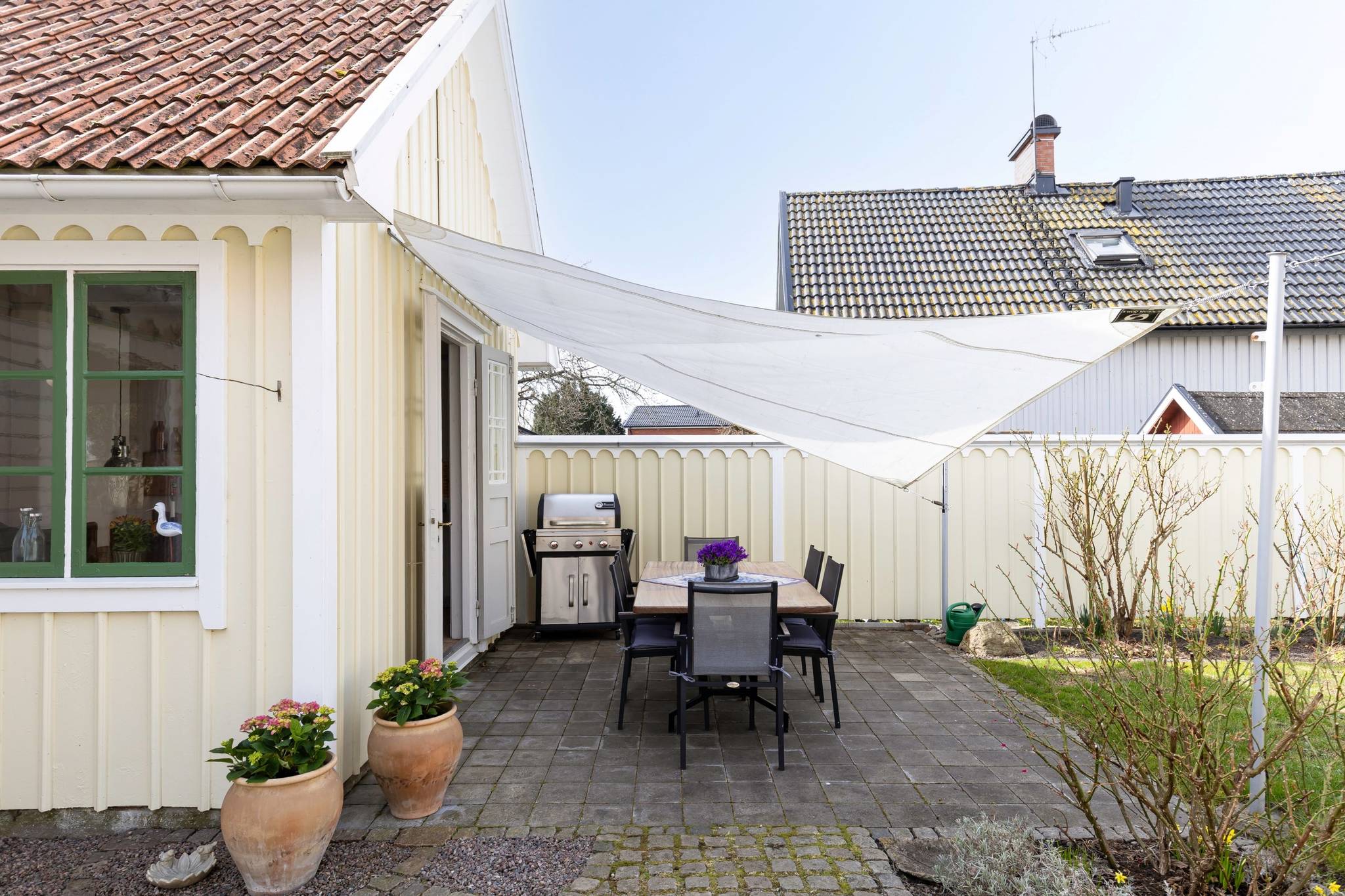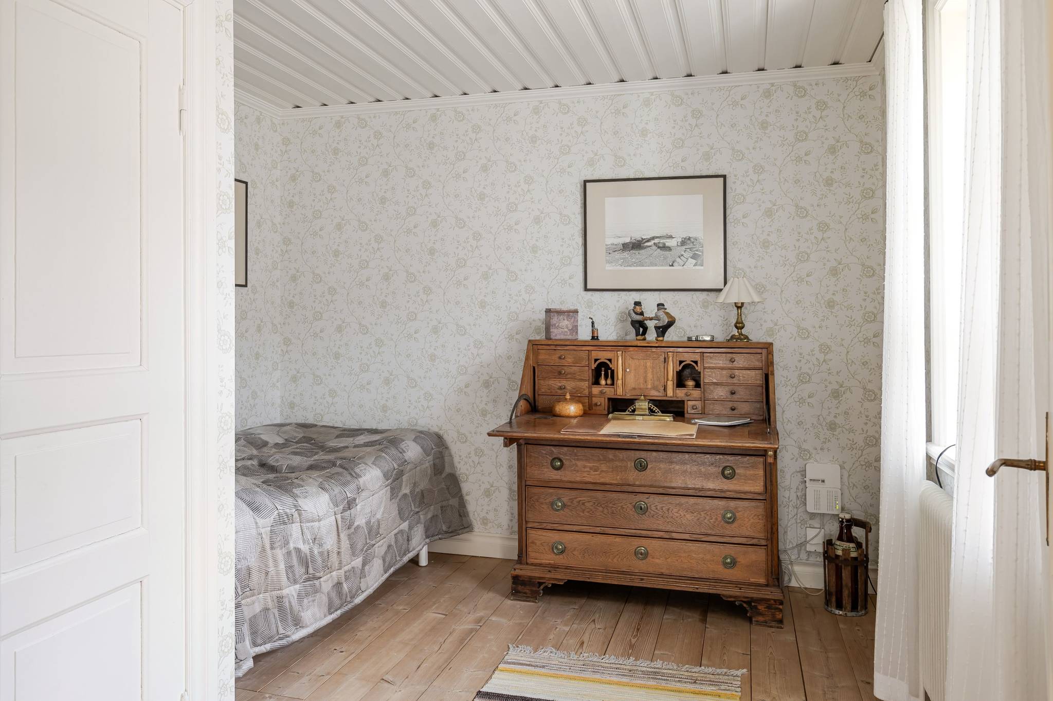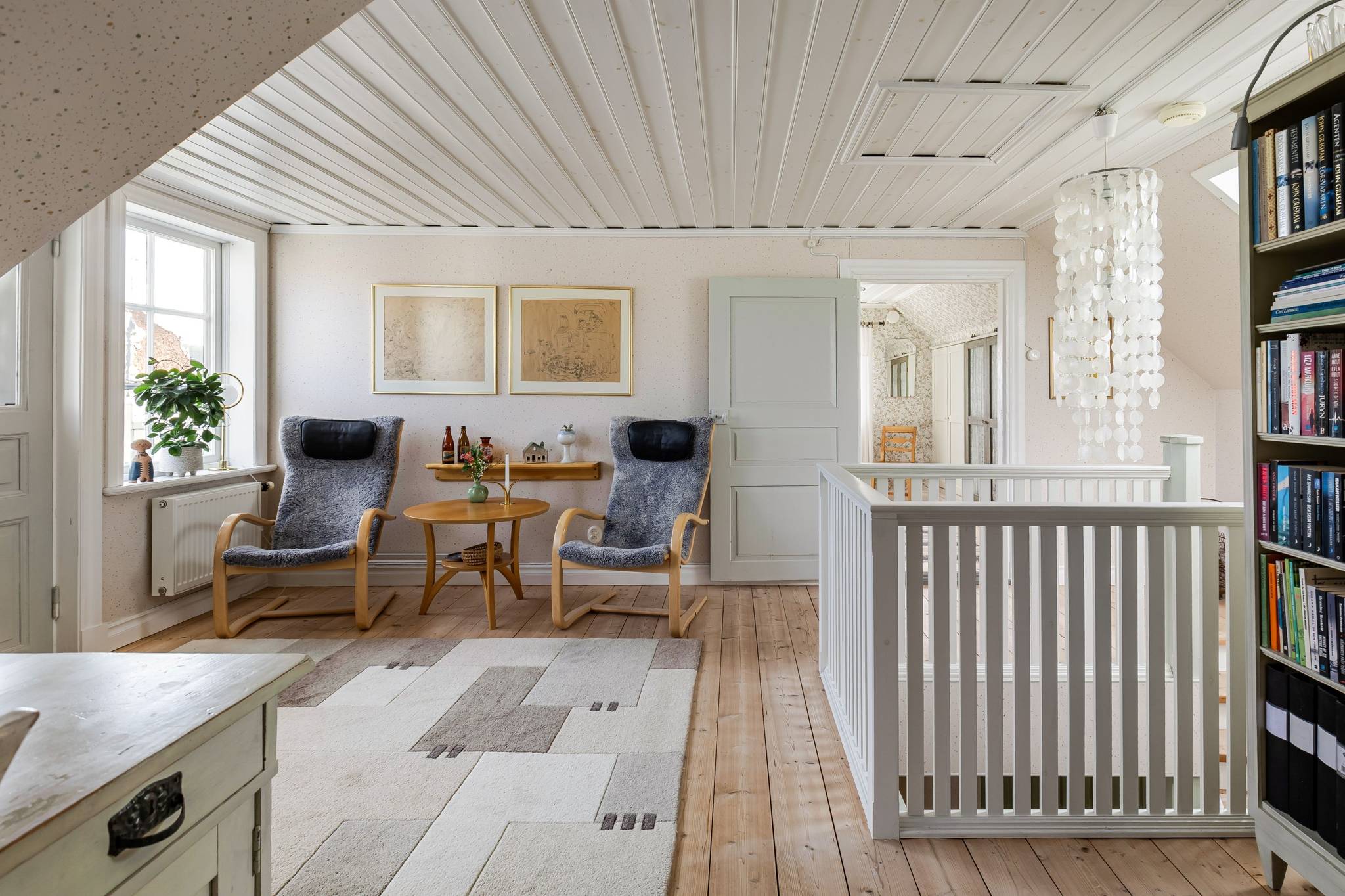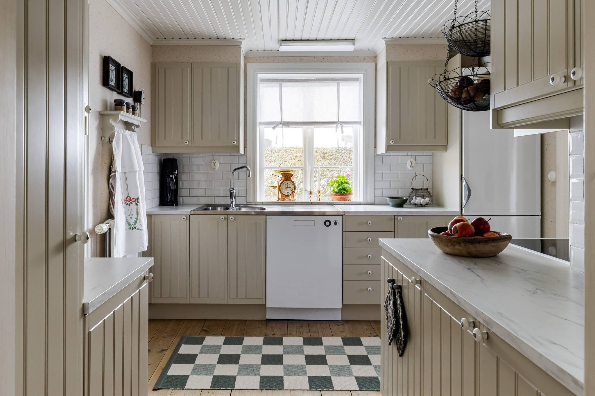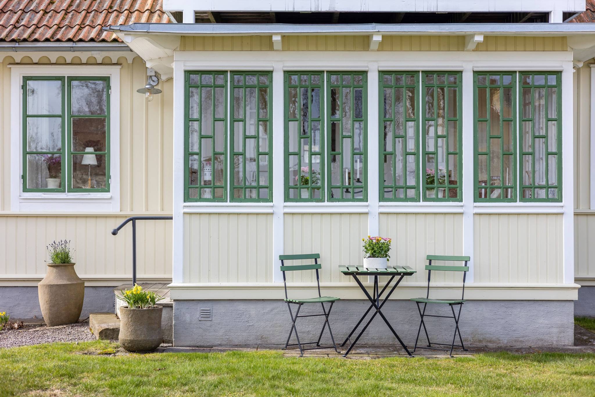 Ett hem där omtanke och hantverk får tala för sig själva. Ett vackert och välskött hus som varsamt tagits om hand under många år med fokus på det genuina, hållbara och hjärtliga. Sedan 2001 har huset steg för steg renoverats med stor respekt för dess ursprung. Här har inget lämnats åt slumpen. Med bakgrund som snickare och byggnadsingenjör har tidigare ägare med säker hand och känsla återskapat detaljer i byggnadsvårdsmässig anda. Fasaden med sin snickarglädje följer traditionen i Bergkvara, och snickerier samt golv är framtagna i samarbete med lokalt sågverk efter äldre förlagor. Redan vid första anblick förstår man att detta är något särskilt. Och känslan förstärks när du kliver in genom trädgården, en varm och inbjudande plats där huset bär spår av omsorg och kärlek. Entréplanet bjuder på ett trivsamt kök med närhet till en mysig matsal där kakelugnen blir hemmets naturliga samlingspunkt. Den återskapade glasverandan ger ett mjukt ljus och en stillsam plats att slå sig ner på. Här finns också ett ombonat vardagsrum, ett sovrum och ett badrum, allt med samma genomgående känsla av hemtrevnad. En trappa upp möts du av ett ljust allrum med plats för både vila och umgänge. Från balkongen skymtar havet och södra Öland i horisonten, en vy som skiftar med årstiderna. Här finns även två sovrum, varav det ena med havsutsikt. Trädgården är en historia för sig, en prunkande rosenträdgård med mjuka, svängda singelgångar som leder dig mellan olika rum och platser. På innergården väntar en skyddad uteplats under segel, där planket skärmar av från havsvindarna. När kvällen blir sval finns det charmiga grillhuset att dra sig tillbaka till, en plats som förlänger sommarens alla stunder. På tomten finns också ett gårdshus om cirka 25 kvm med både verkstad och grillhus, liksom ett fristående uthus med gästrum, redskapsbod och vedförråd. Här finns gott om utrymme för både praktiska behov och egna idéer. Läget är rofyllt med närhet till havet. Badmöjligheter finns i Dalskär, och många i trakten söker sig till Badudden, en uppskattad plats längst ut på udden, bara en kort promenad bort. Det här är inte ett perfekt tillrättalagt hem, det är något bättre. Ett hus som levts i, vårdats och älskats. Ett hem att trivas i, växa i och tycka om, år efter år.72 images
