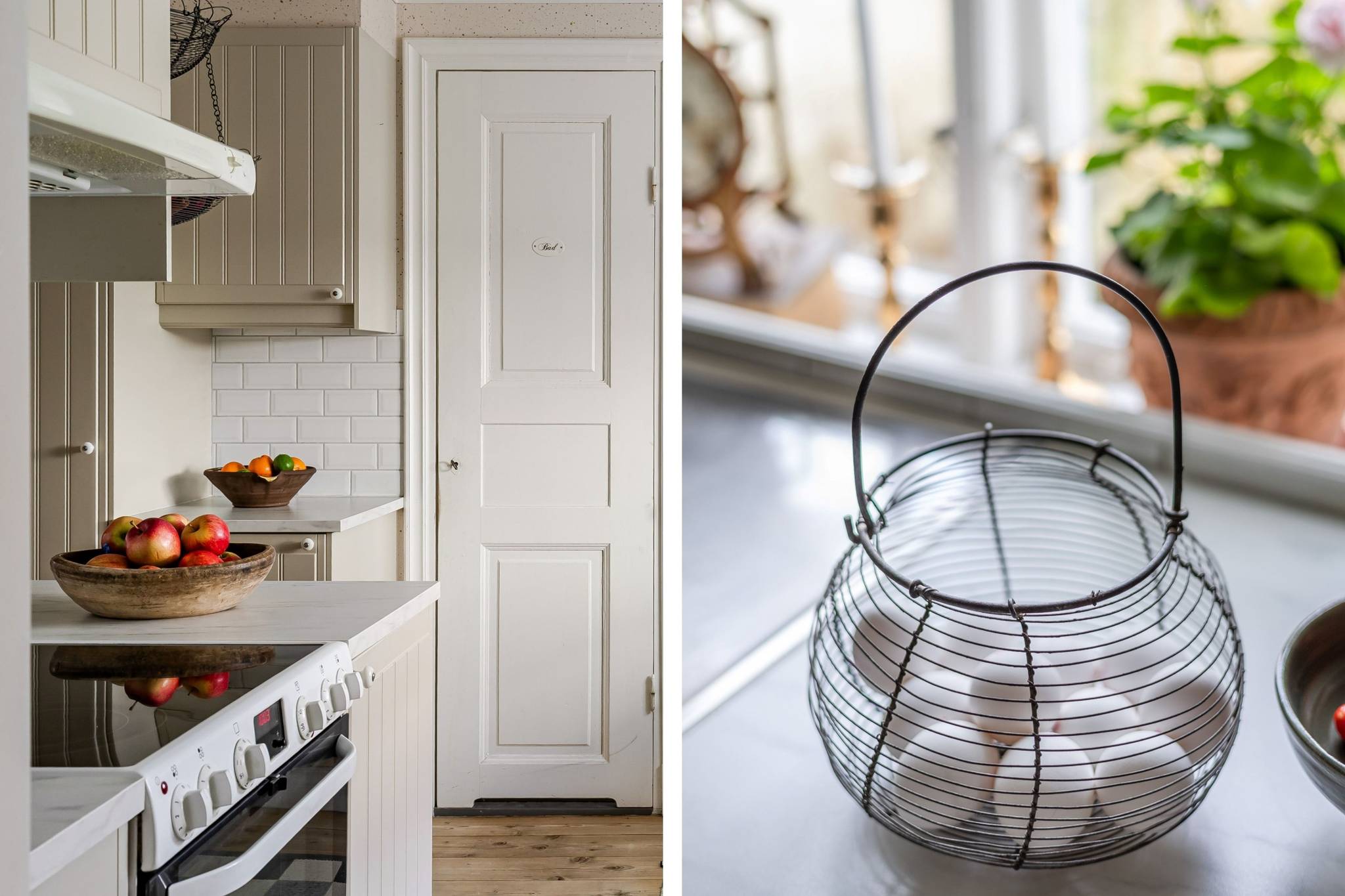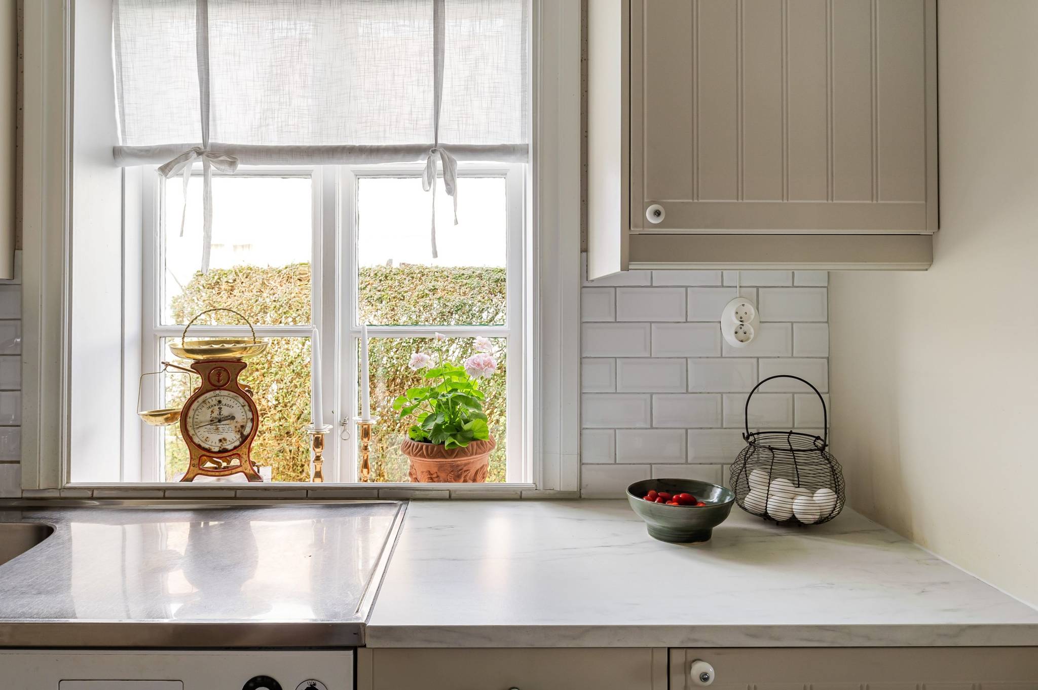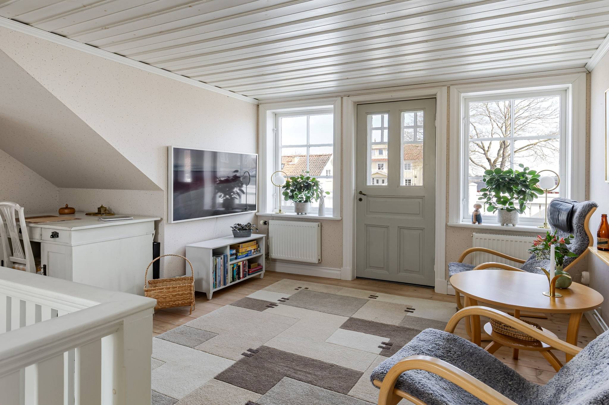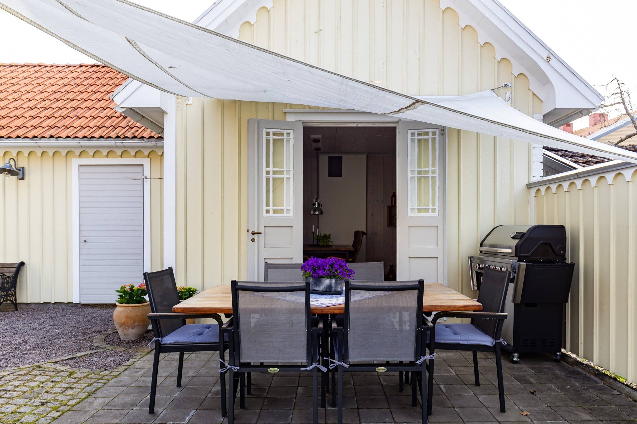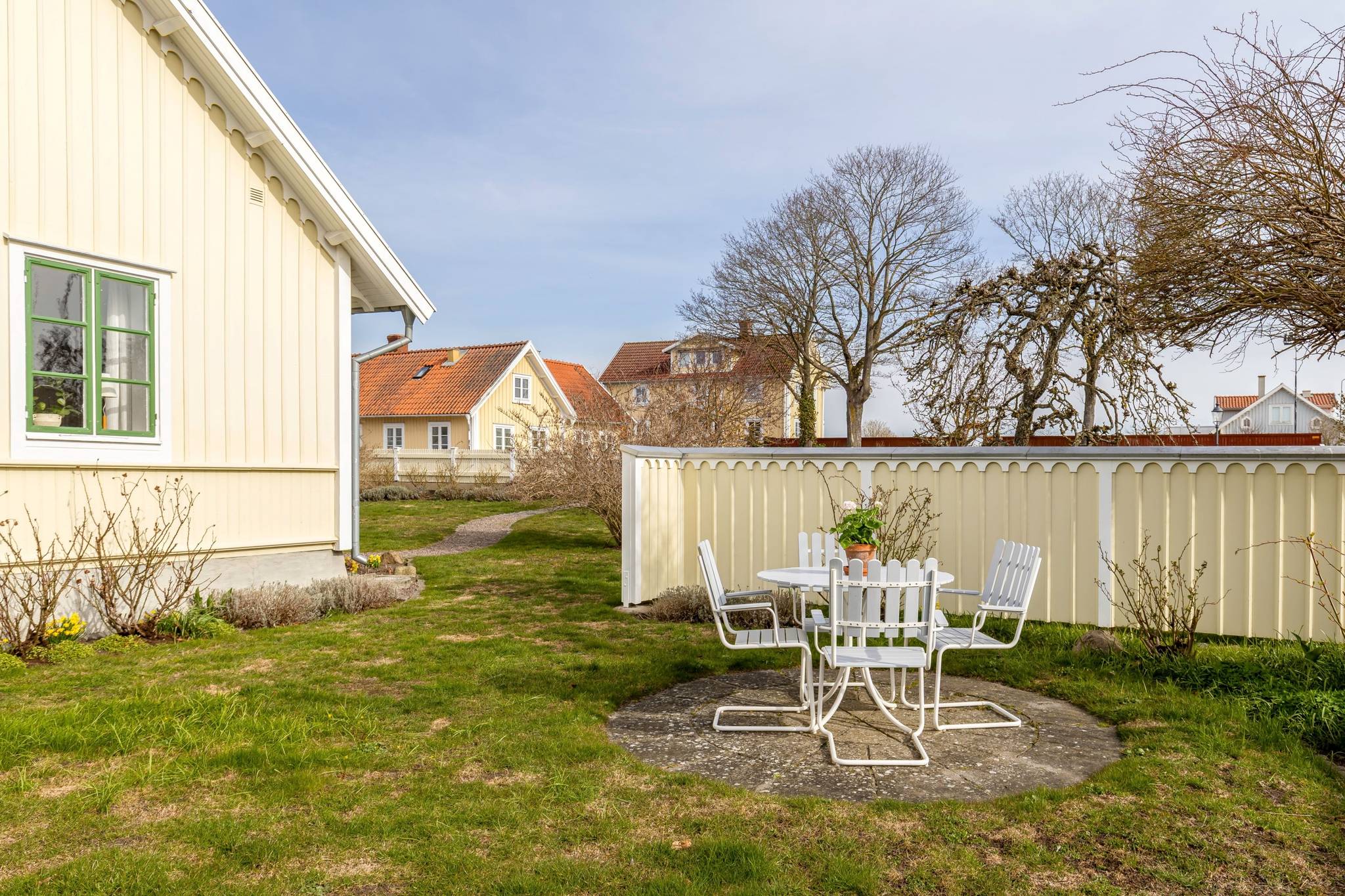 Ett hem där omtanke och hantverk får tala för sig själva. Ett vackert och välskött hus som varsamt tagits om hand under många år med fokus på det genuina, hållbara och hjärtliga. Sedan 2001 har huset steg för steg renoverats med stor respekt för dess ursprung. Här har inget lämnats åt slumpen. Med bakgrund som snickare och byggnadsingenjör har tidigare ägare med säker hand och känsla återskapat detaljer i byggnadsvårdsmässig anda. Fasaden med sin snickarglädje följer traditionen i Bergkvara, och snickerier samt golv är framtagna i samarbete med lokalt sågverk efter äldre förlagor. Redan vid första anblick förstår man att detta är något särskilt. Och känslan förstärks när du kliver in genom trädgården, en varm och inbjudande plats där huset bär spår av omsorg och kärlek. Entréplanet bjuder på ett trivsamt kök med närhet till en mysig matsal där kakelugnen blir hemmets naturliga samlingspunkt. Den återskapade glasverandan ger ett mjukt ljus och en stillsam plats att slå sig ner på. Här finns också ett ombonat vardagsrum, ett sovrum och ett badrum, allt med samma genomgående känsla av hemtrevnad. En trappa upp möts du av ett ljust allrum med plats för både vila och umgänge. Från balkongen skymtar havet och södra Öland i horisonten, en vy som skiftar med årstiderna. Här finns även två sovrum, varav det ena med havsutsikt. Trädgården är en historia för sig, en prunkande rosenträdgård med mjuka, svängda singelgångar som leder dig mellan olika rum och platser. På innergården väntar en skyddad uteplats under segel, där planket skärmar av från havsvindarna. När kvällen blir sval finns det charmiga grillhuset att dra sig tillbaka till, en plats som förlänger sommarens alla stunder. På tomten finns också ett gårdshus om cirka 25 kvm med både verkstad och grillhus, liksom ett fristående uthus med gästrum, redskapsbod och vedförråd. Här finns gott om utrymme för både praktiska behov och egna idéer. Läget är rofyllt med närhet till havet. Badmöjligheter finns i Dalskär, och många i trakten söker sig till Badudden, en uppskattad plats längst ut på udden, bara en kort promenad bort. Det här är inte ett perfekt tillrättalagt hem, det är något bättre. Ett hus som levts i, vårdats och älskats. Ett hem att trivas i, växa i och tycka om, år efter år.72 images