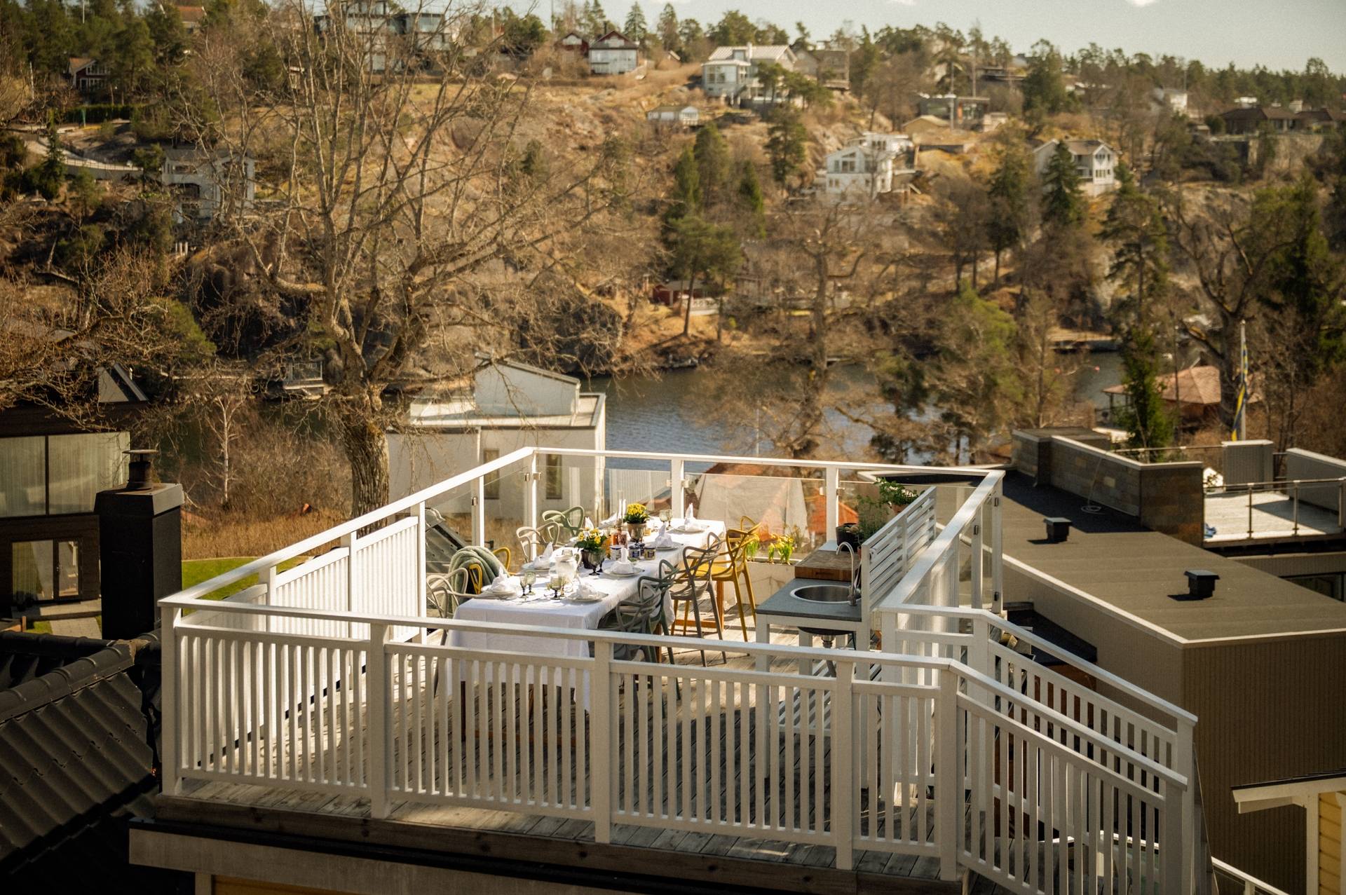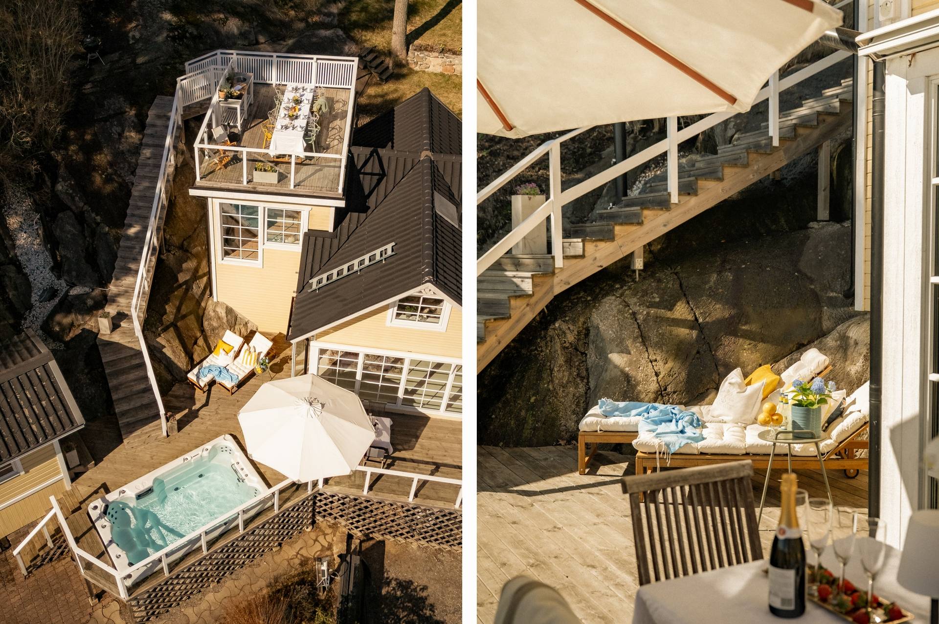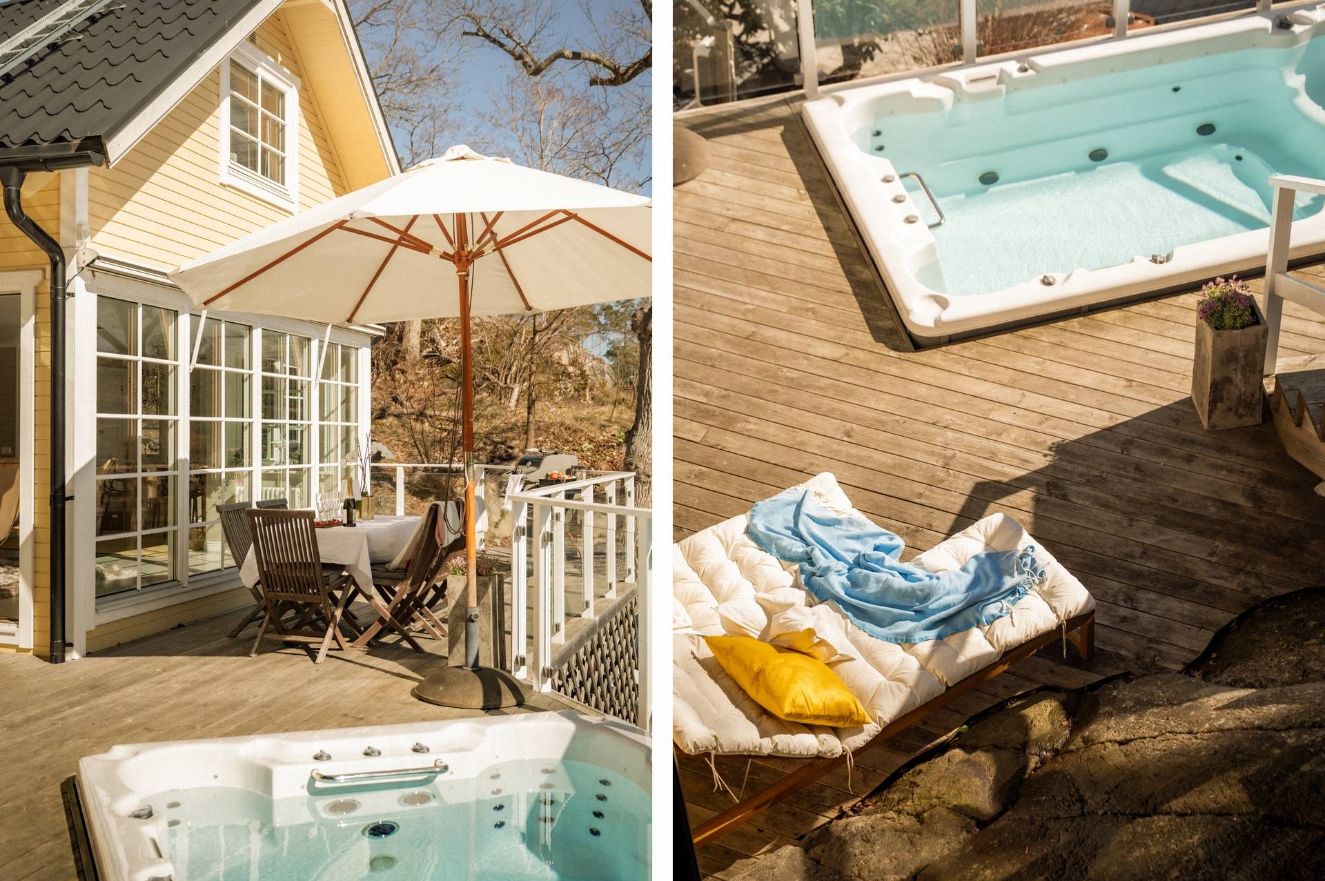 Med stort nöje kan vi nu presentera en möjlighet som sällan kommer åter, nämligen att bli nästa nöjda ägare av denna charmiga villa som stoltserar med ett fantastiskt vackert och rofyllt läge. Utmärkande för denna fastighet är bland annat av den storslagna utsikten över hav och natur, ett utmärkt solläge och en egen båtplats endast 100 meter från huset. Här bjuds du in till en påtaglig skärgårdskänsla, samtidigt når du centrala Stockholm på 20 minuter med bil eller knappt 30 minuter med buss. För dig som värdesätter frilufts- och båtliv kan läget knappast bli bättre! Huset erbjuder en totalarea om 109 kvm fördelat på 4 rum och kök, badrum, gästtoalett samt vinkällare. Det socialt utformade entréplanet erbjuder ett luftigt och spatiöst vardagsrum med braskamin, där ljuset flödar genom de stora fönstren. Härifrån når du ut på den stora altanen i söderläge med bland annat Swimspa (jacuzzi) och utedusch i direkt anslutning. Via altanen når du även en isolerad gäststuga om cirka 9 kvm och via trappan upp på husets tak når du den enastående terrassen som bjuder på sol från morgon till kväll. Härifrån blickar du vilsamt ut över Skurusundets glittrande vatten och njuter av ljumma sommarkvällar med nära och kära. På takterrassen finns ett utekök, till vilket både el och vatten finns installerat. Husets övre våningsplan erbjuder tre ordentliga sovrum med tillhörande förvaringsutrymmen. Från Master bedroom finns en utgång till den lummiga trädgården på husets baksida. Läget i Skuru är mycket bra, med närhet till såväl service som kommunikationer. Den närmaste busshållplatsen Lindholmsplan ligger endast 200 meter från huset och härifrån kan du ta buss 409 till Slussen på 29 minuter respektive buss 449 till Glasbruksgatan på 25 minuter. På kort promenad- eller cykelavstånd når du flertalet förskolor och skolor. Nacka erbjuder dessutom ett rikt föreningsliv, vilket enkelt öppnar upp för många möjliga fritidsaktiviteter för barn och ungdomar. Ett komplett serviceutbud når du i närliggande Ektorps centrum och Nacka Forum. Den vackra naturen omger bostadsområdet och bjuder ut dig på vackra promenadstråk, bland annat utmed vattnet. En bit bort når du Nyckelvikens vidsträckta naturreservat ut sig med sin kuperade skogsterräng. Här bjuds ni ut på härliga promenader eller löpturer med magnifika vyer över Stockholms inlopp. Sammantaget är detta en fantastisk plats att få kalla sitt framtida hem. Varmt välkommen att kontakta ansvarig mäklare för mer information!51 images