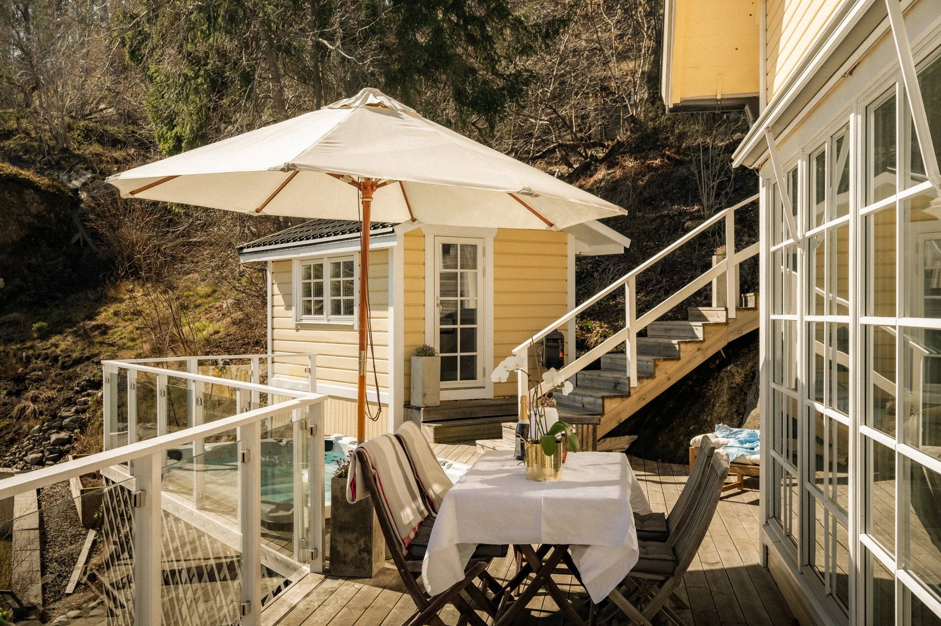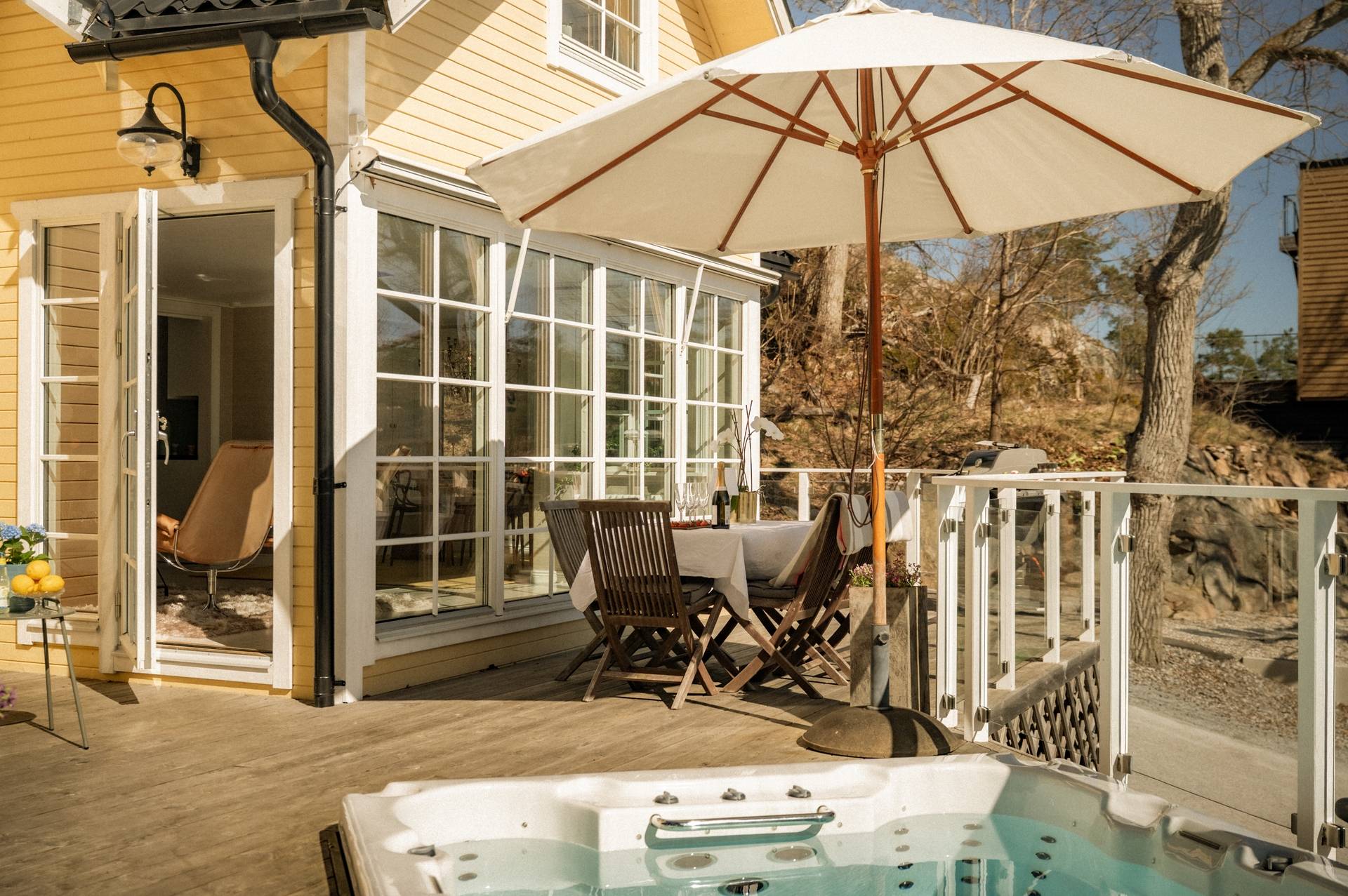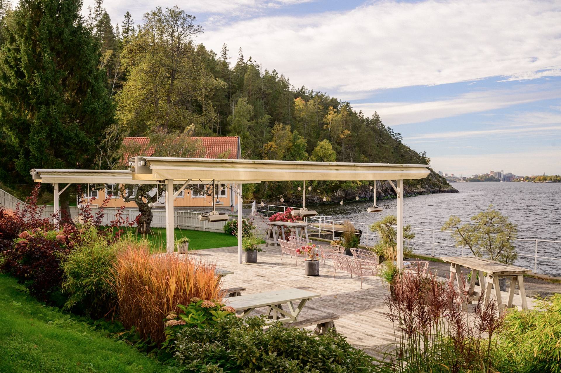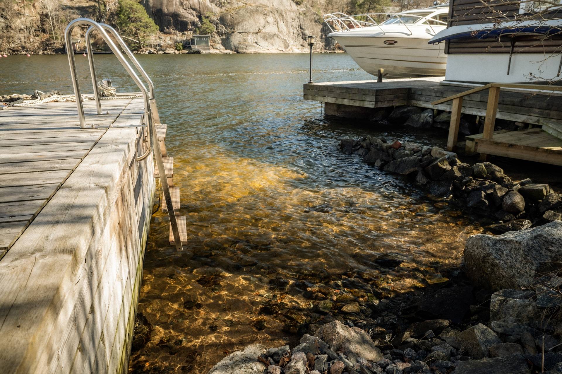 Med stort nöje kan vi nu presentera en möjlighet som sällan kommer åter, nämligen att bli nästa nöjda ägare av denna charmiga villa som stoltserar med ett fantastiskt vackert och rofyllt läge. Utmärkande för denna fastighet är bland annat av den storslagna utsikten över hav och natur, ett utmärkt solläge och en egen båtplats endast 100 meter från huset. Här bjuds du in till en påtaglig skärgårdskänsla, samtidigt når du centrala Stockholm på 20 minuter med bil eller knappt 30 minuter med buss. För dig som värdesätter frilufts- och båtliv kan läget knappast bli bättre! Huset erbjuder en totalarea om 109 kvm fördelat på 4 rum och kök, badrum, gästtoalett samt vinkällare. Det socialt utformade entréplanet erbjuder ett luftigt och spatiöst vardagsrum med braskamin, där ljuset flödar genom de stora fönstren. Härifrån når du ut på den stora altanen i söderläge med bland annat Swimspa (jacuzzi) och utedusch i direkt anslutning. Via altanen når du även en isolerad gäststuga om cirka 9 kvm och via trappan upp på husets tak når du den enastående terrassen som bjuder på sol från morgon till kväll. Härifrån blickar du vilsamt ut över Skurusundets glittrande vatten och njuter av ljumma sommarkvällar med nära och kära. På takterrassen finns ett utekök, till vilket både el och vatten finns installerat. Husets övre våningsplan erbjuder tre ordentliga sovrum med tillhörande förvaringsutrymmen. Från Master bedroom finns en utgång till den lummiga trädgården på husets baksida. Läget i Skuru är mycket bra, med närhet till såväl service som kommunikationer. Den närmaste busshållplatsen Lindholmsplan ligger endast 200 meter från huset och härifrån kan du ta buss 409 till Slussen på 29 minuter respektive buss 449 till Glasbruksgatan på 25 minuter. På kort promenad- eller cykelavstånd når du flertalet förskolor och skolor. Nacka erbjuder dessutom ett rikt föreningsliv, vilket enkelt öppnar upp för många möjliga fritidsaktiviteter för barn och ungdomar. Ett komplett serviceutbud når du i närliggande Ektorps centrum och Nacka Forum. Den vackra naturen omger bostadsområdet och bjuder ut dig på vackra promenadstråk, bland annat utmed vattnet. En bit bort når du Nyckelvikens vidsträckta naturreservat ut sig med sin kuperade skogsterräng. Här bjuds ni ut på härliga promenader eller löpturer med magnifika vyer över Stockholms inlopp. Sammantaget är detta en fantastisk plats att få kalla sitt framtida hem. Varmt välkommen att kontakta ansvarig mäklare för mer information!51 images