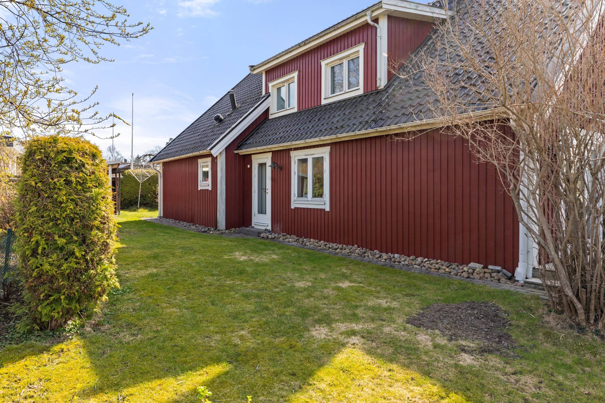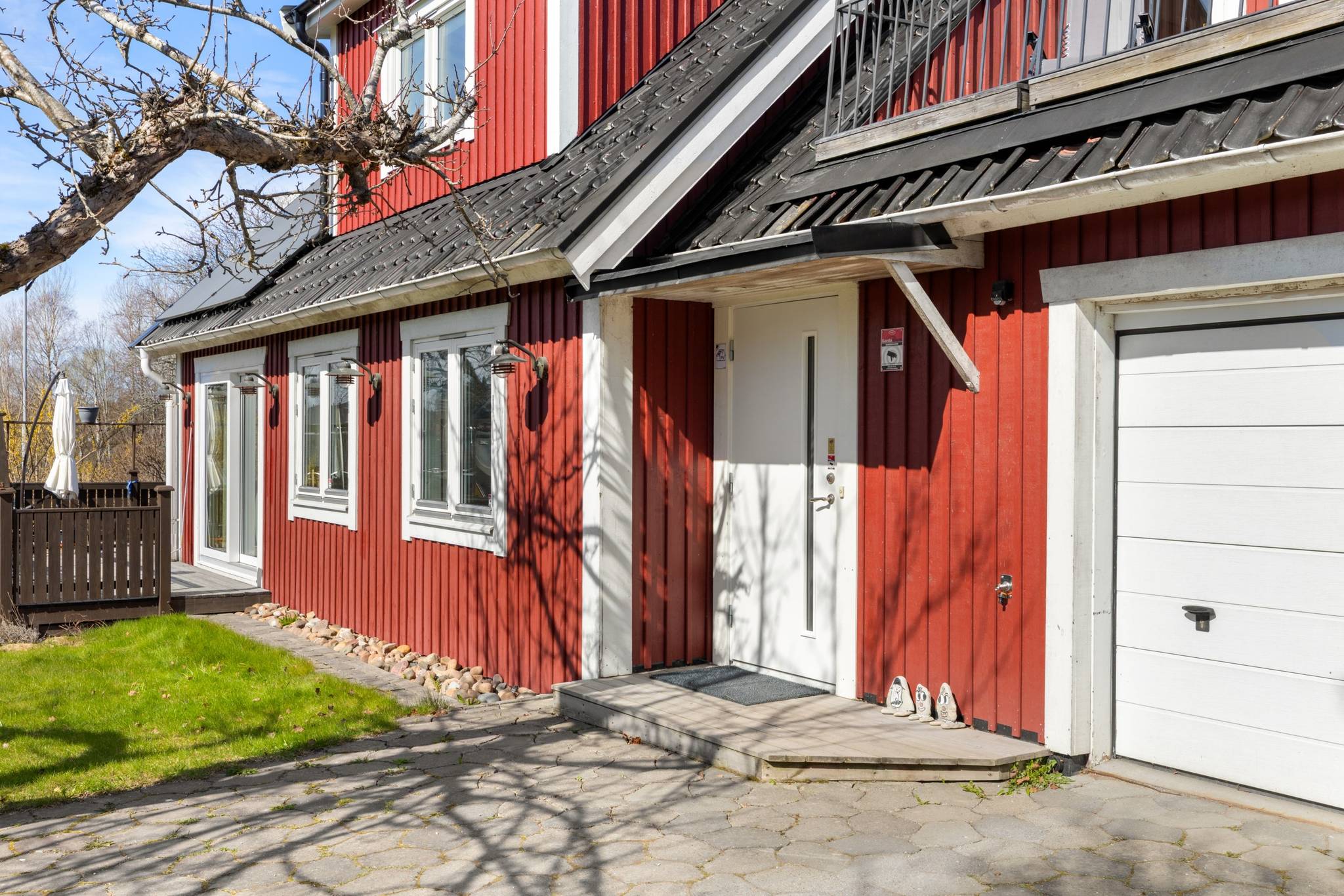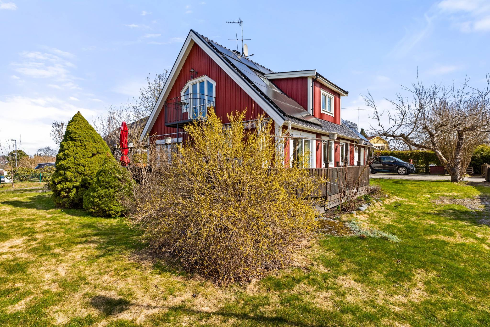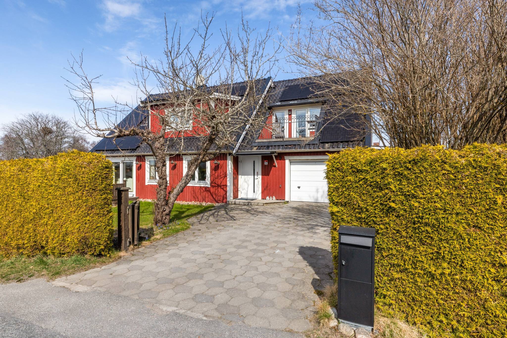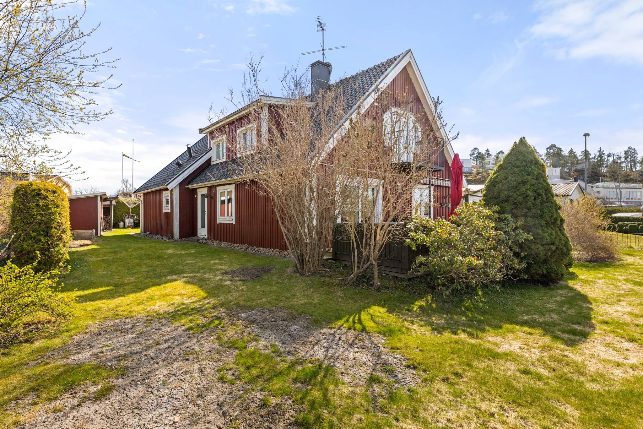 Välkommen till Kullvägen 1 i omtyckta Sofieberg – ett trivsamt och välutrustat hem på en solig gaveltomt med härlig trädgård, altan och sjöglimt mot Drevviken från övervåningen. Här bor du i ett lugnt och familjevänligt villaområde med naturen nära, samtidigt som vardagen flyter smidigt med busshållplats på bekvämt avstånd och Sofiebergsskolan (F–3) inom området. Promenadstråk och grönområden ligger precis runt knuten, och Drevviken bjuder in till svalkande bad under sommarens varma dagar och skridsko- eller skidåkning när vintern lägger sig. Fastigheten erbjuder en modern och energieffektiv helhet med bergvärme som grund, kompletterat av solceller med batterilagring om 10 kWh för ökad egenanvändning av producerad el. Här finns dessutom mekanisk till- och frånluft, öppen fiber, laddbox för elbil samt både garage och carport som gör parkeringen enkel oavsett säsong. Praktiska extrafunktioner som vedförråd och vind ger ytterligare utrymme och förvaring, och de genomtänkta lösningarna gör detta till ett hem som kombinerar komfort med smart ekonomi. Entréplanet välkomnar med hall och gäst-WC, och öppnar sedan upp mot ett generöst vardagsrum med kamin och utgång till altanen – en självklar samlingsplats som ger en varm och inbjudande känsla. Intill finns matplats med ytterligare utgång till altanen, vilket skapar ett härligt flöde mellan inne och ute och gör det enkelt att njuta av trädgården under sommarhalvåret. Köket ligger i anslutning till matplatsen och erbjuder goda arbetsytor för både vardag och helg. På entréplanet finns även klädkammare samt en praktisk del med tvättstuga, pannrum och en avdelning med dusch och bastu – en uppskattad vardagslyx som gör det extra enkelt att koppla av efter en lång dag eller en promenad vid sjön. På övre plan finns badrum och fyra sovrum. Ett av sovrummen är extra rymligt och har även en kamin, vilket gör det lika lämpligt som ett stort master bedroom som ett allrum eller hemmakontor – och för den som behöver fler rum finns möjlighet att dela av och skapa två sovrum. Från övervåningen fångas dessutom en fin sjöglimt som påminner om det sjönära läget och förstärker känslan av att bo med naturen runt hörnet. Kullvägen 1 erbjuder en sällsynt fin kombination av läge, funktion och trivsel – ett hem med generösa ytor, trädgårdstomt, flera eldstäder och en genomtänkt energilösning, i ett tryggt område nära både skolor, kommunikationer och Drevvikens vatten. Genom att anmäla intresse eller boka visning får du tillgång till den digitala tjänsten Boresan Köpare. Efter anmälan skickas en länk via SMS, där du loggar in med BankID. Där hittar du all relevant information om köpprocessen samt viktiga dokument som besiktningsprotokoll och energideklaration. Du kan även läsa objektsbeskrivningen (digispekt) och se eventuella uppdateringar om visningstider. Kontakta ansvarig mäklare vid frågor.69 images